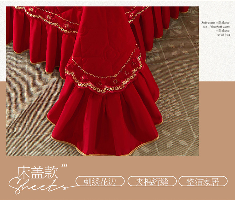 (总)宜凡家纺 2025新款婴儿绒压花全夹棉床裙四件套,韵雅-中国红,韵雅-黑天鹅