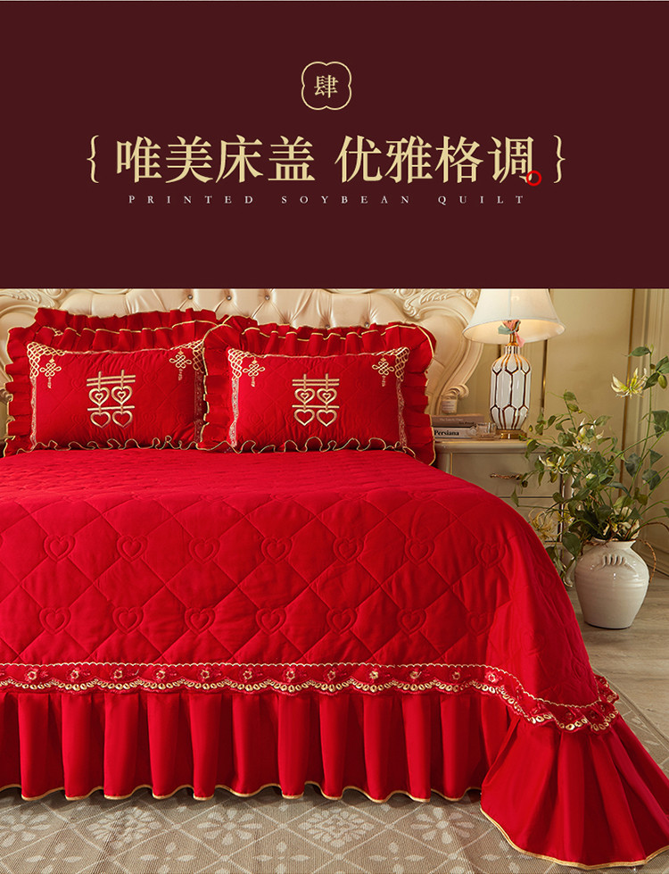 宜凡 2022新款绣花婚庆全棉夹棉床盖款四件套 佳偶天成