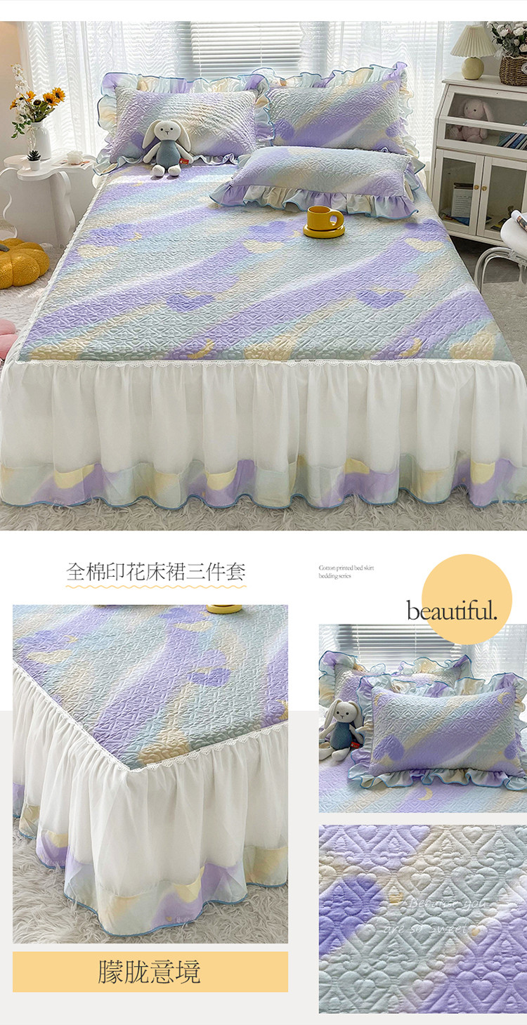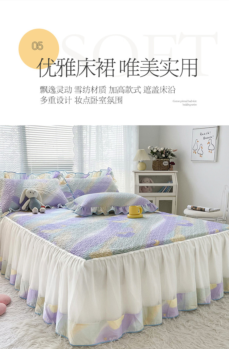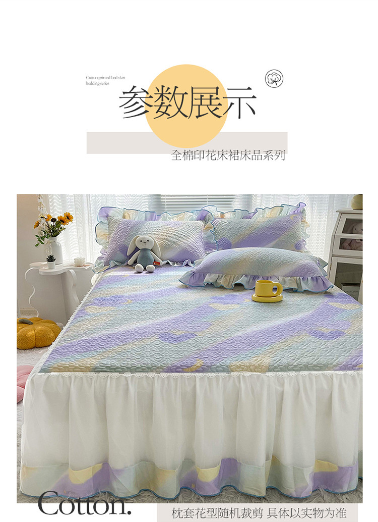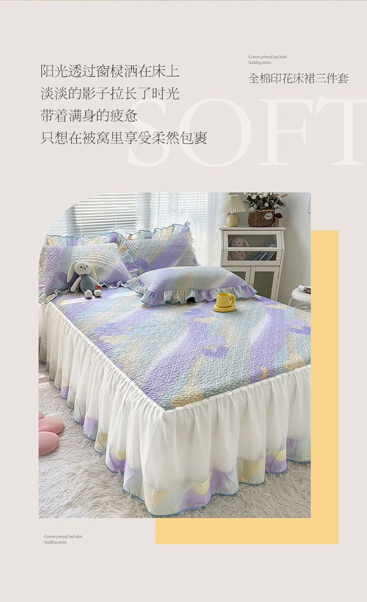 当前位置: 91家纺网 > 商品网购 > 床品套件 > 三件套 > 宜凡 2022新款全棉印花夹棉双层裙边床裙款三件套 朦胧意境