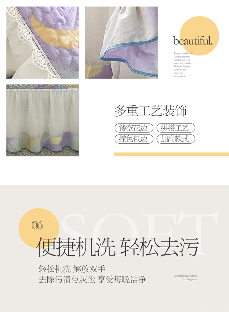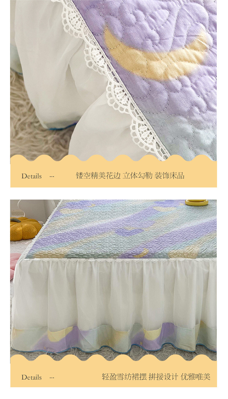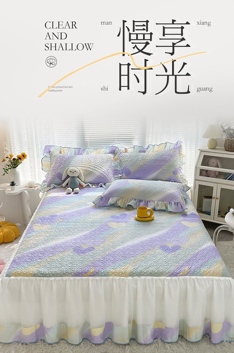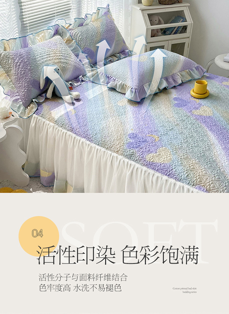 当前位置: 91家纺网 > 商品网购 > 床品套件 > 三件套 > 宜凡 2022新款全棉印花夹棉双层裙边床裙款三件套 朦胧意境