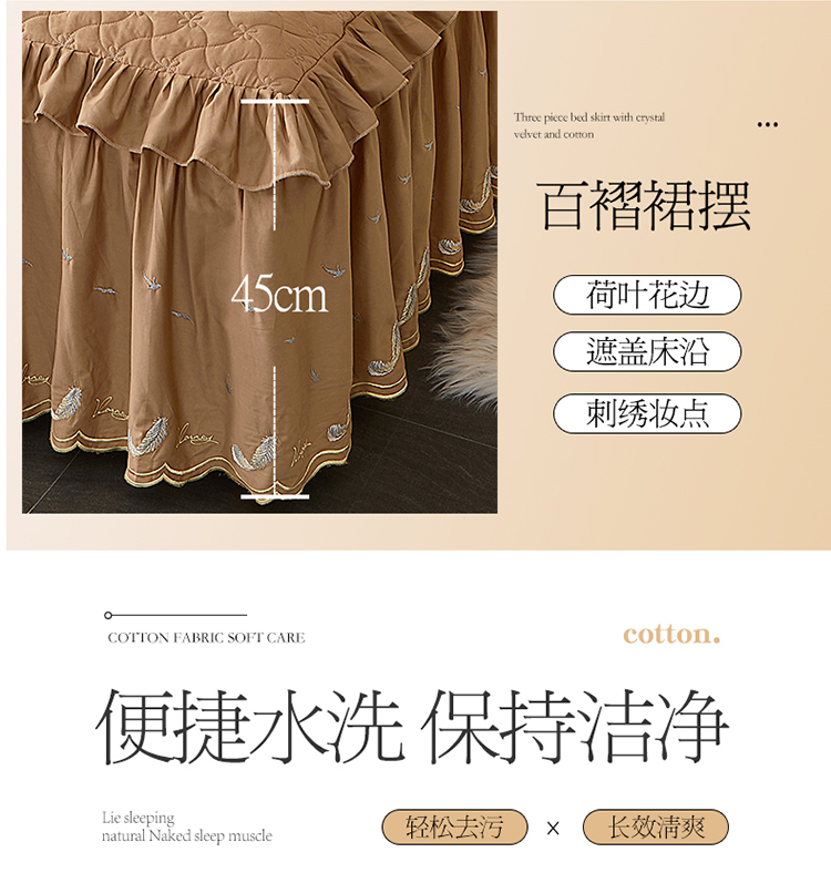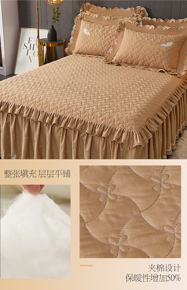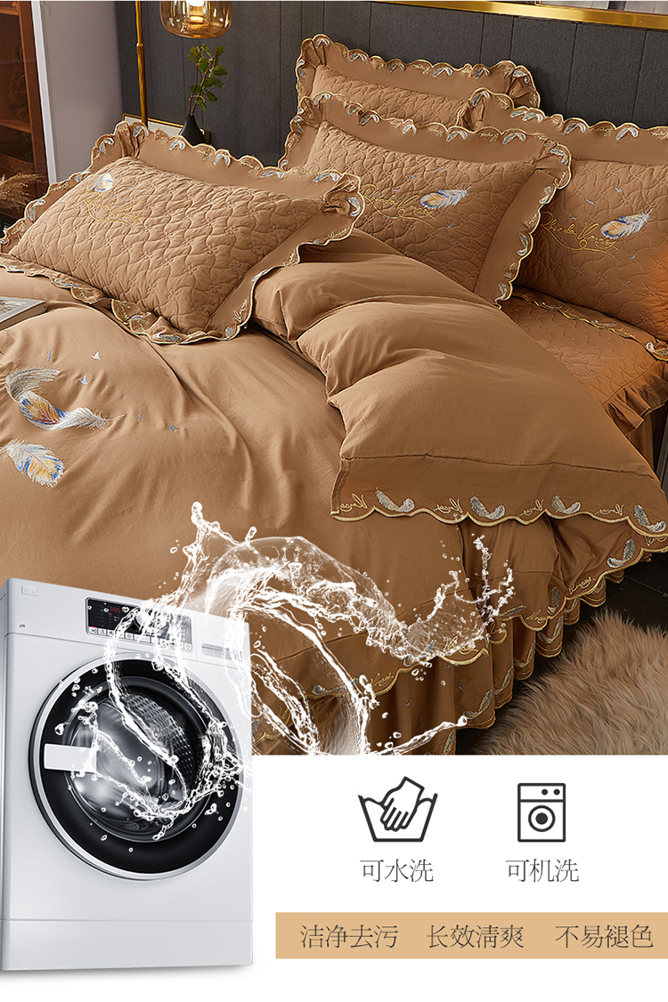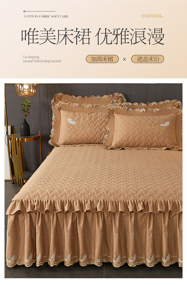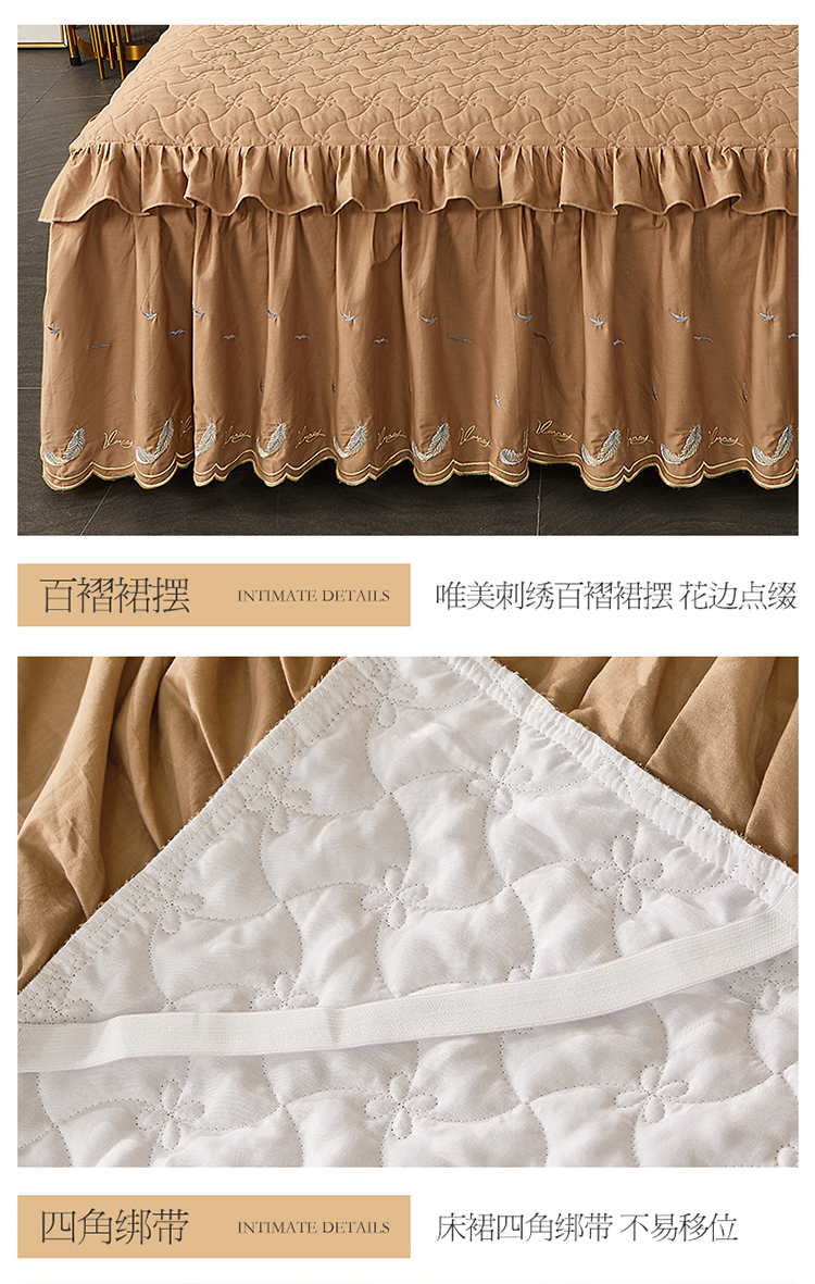 当前位置: 91家纺网 > 商品网购 > 床品套件 > 四件套 > 全棉普通四件套 > 宜凡 2022新款全棉刺绣夹棉床裙款四件套-芳羽 芳羽咖啡