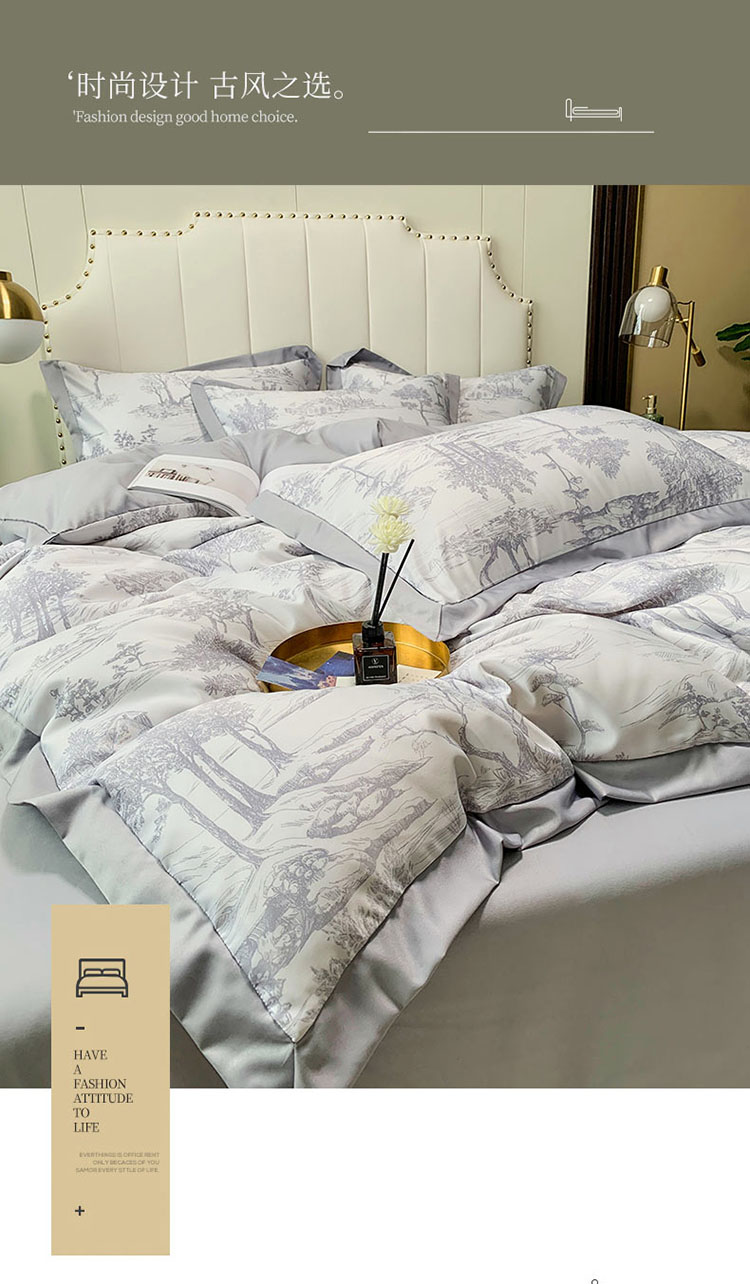 ab家纺 2022新款水洗真丝四件套 江南-紫灰