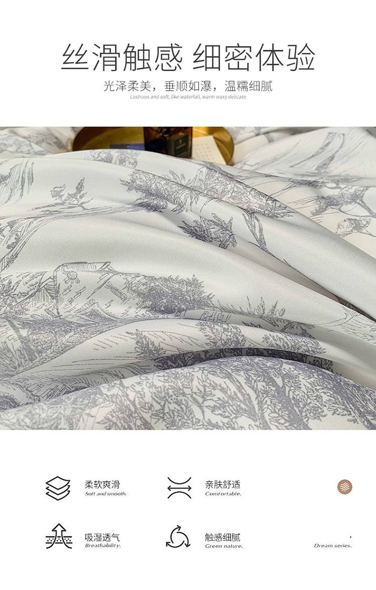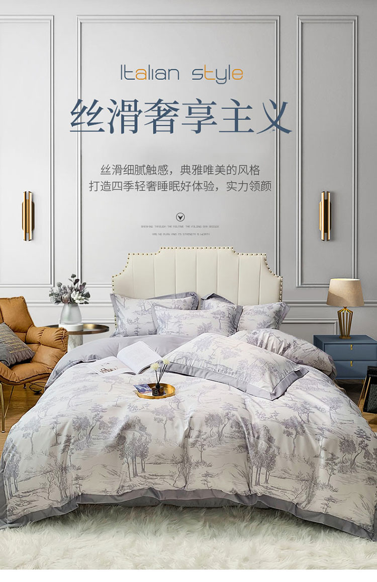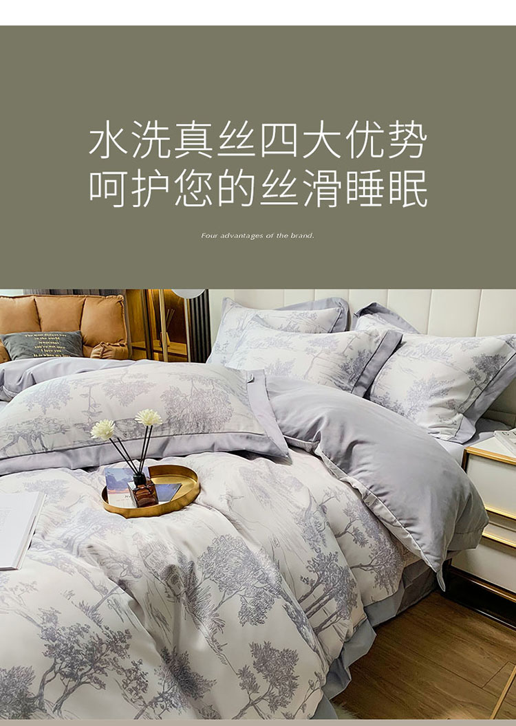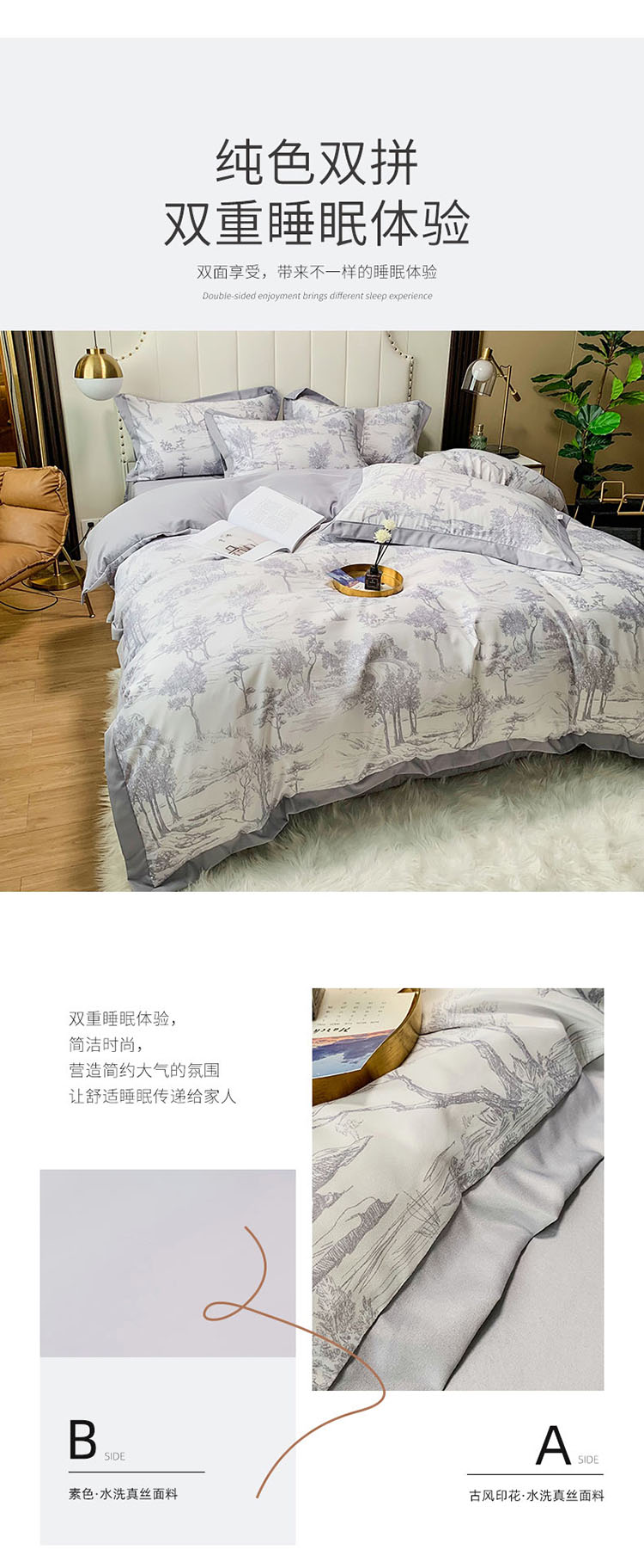 商品名称:ab家纺 2022新款水洗真丝四件套 江南-紫灰