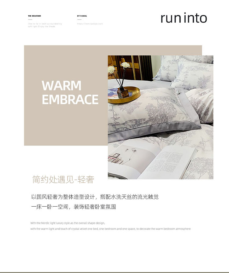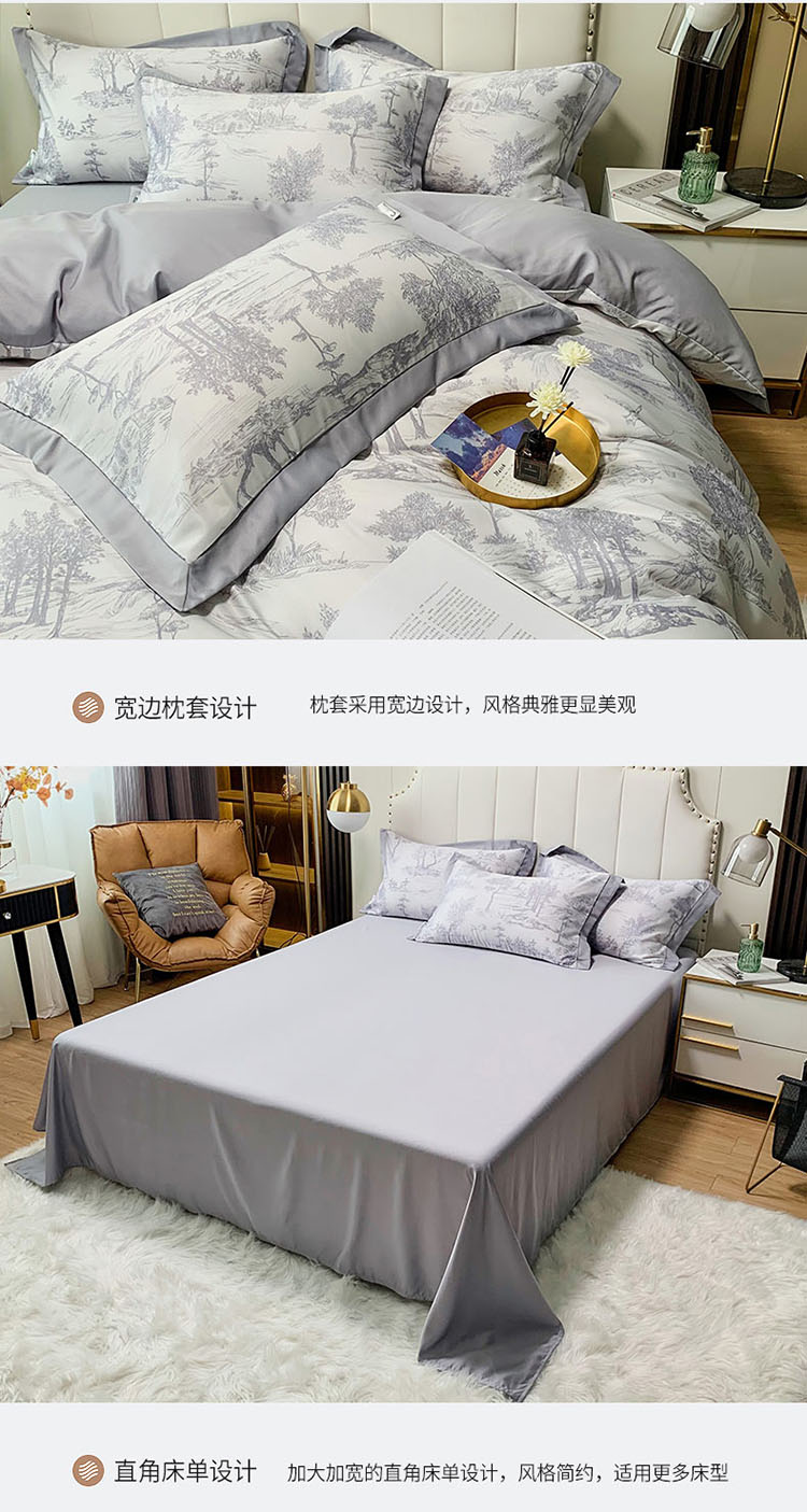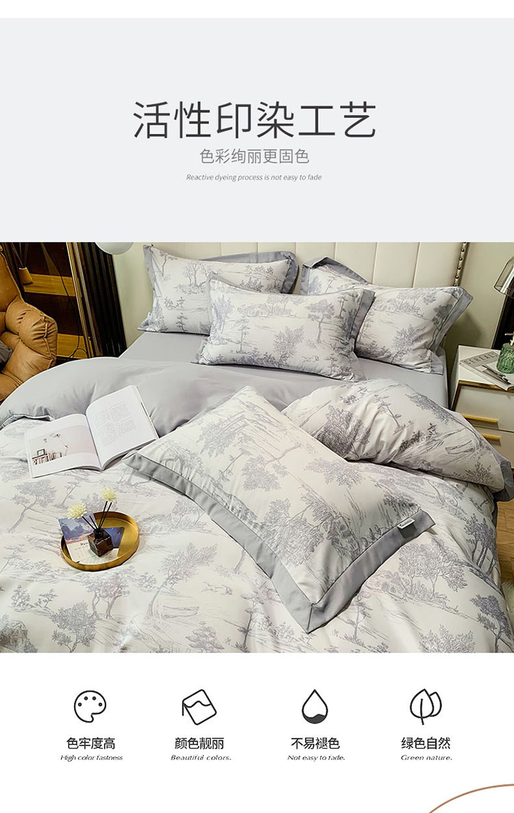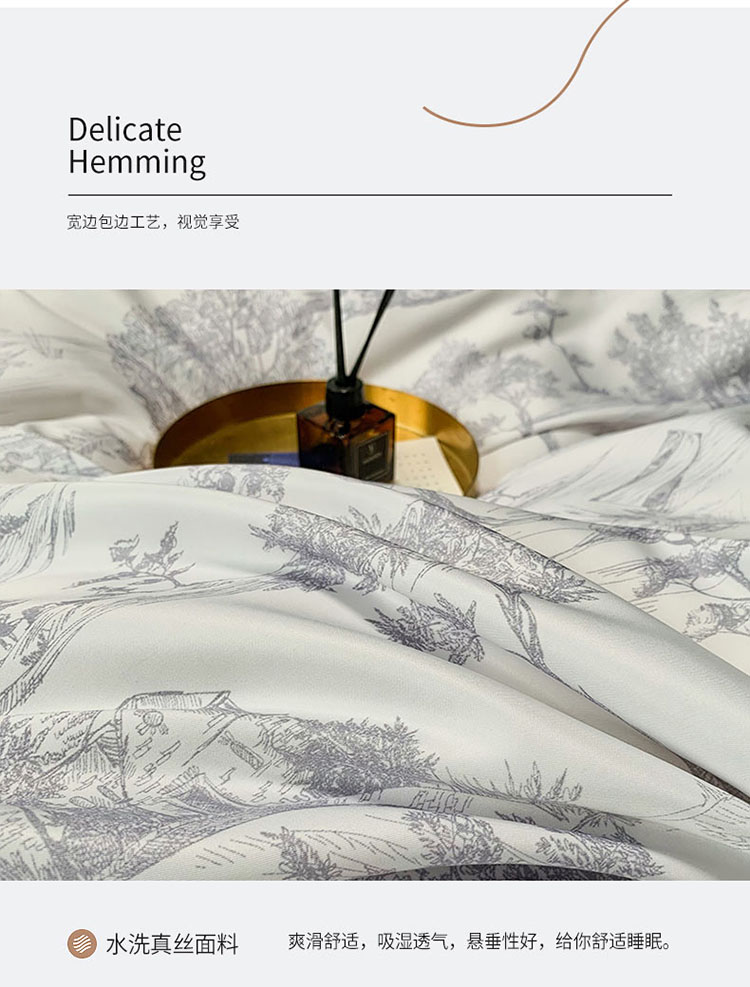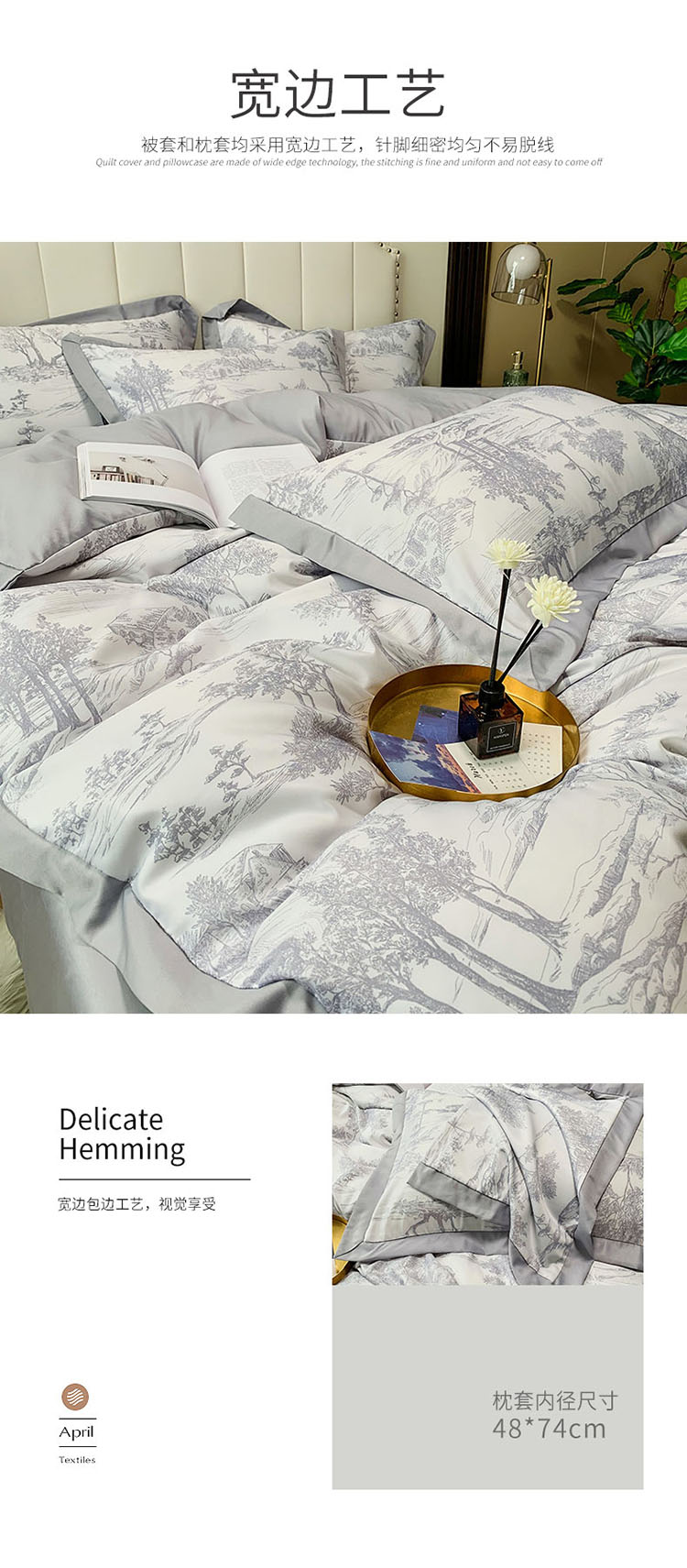 商品名称:ab家纺 2022新款水洗真丝四件套 江南-紫灰