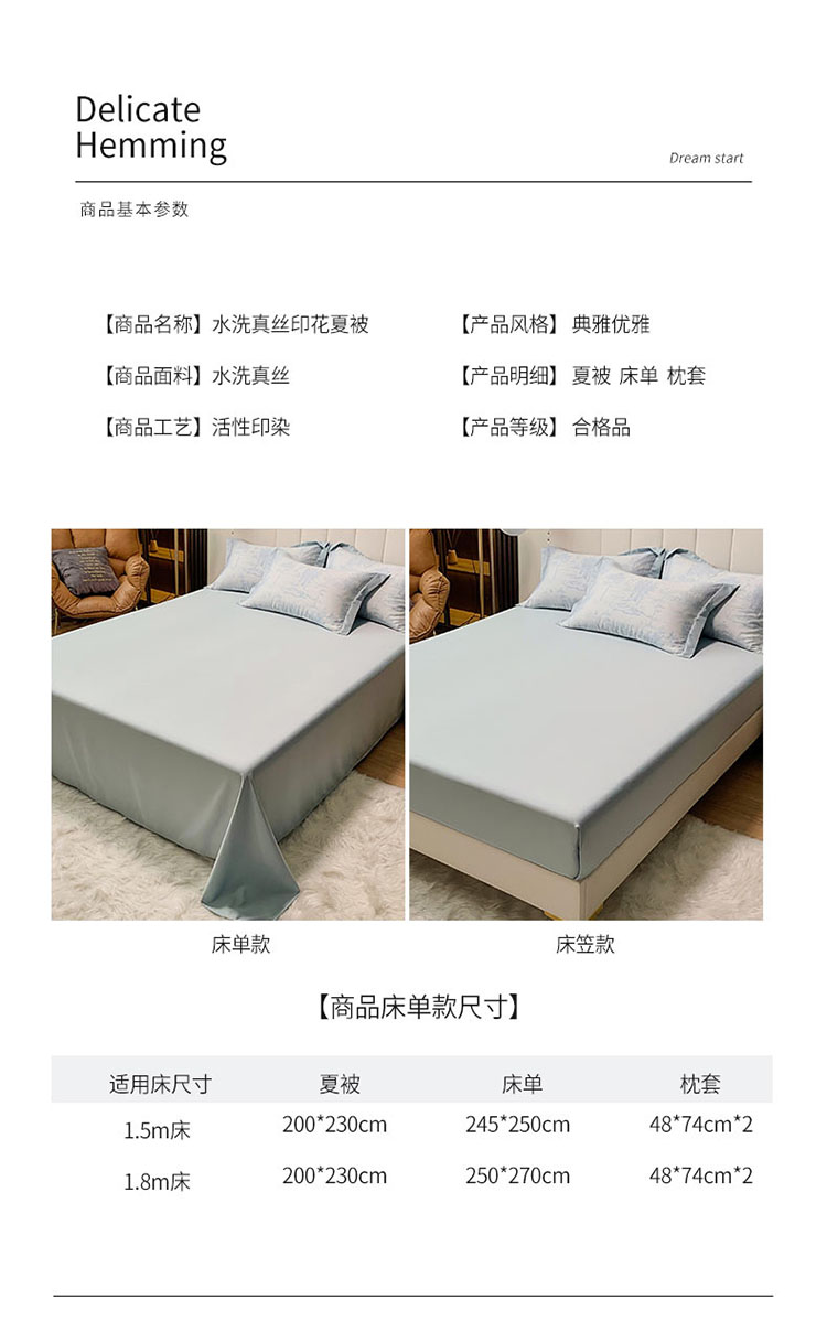商品名称:ab家纺 2023新款水洗真丝夏被 江南-水绿