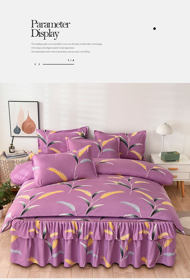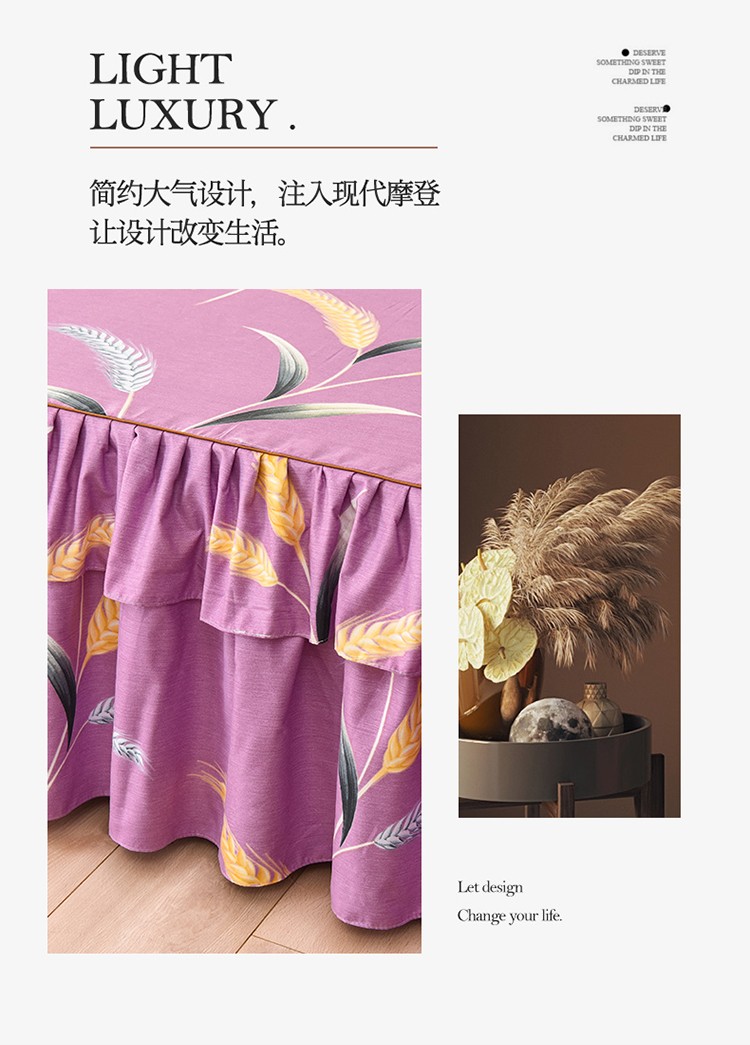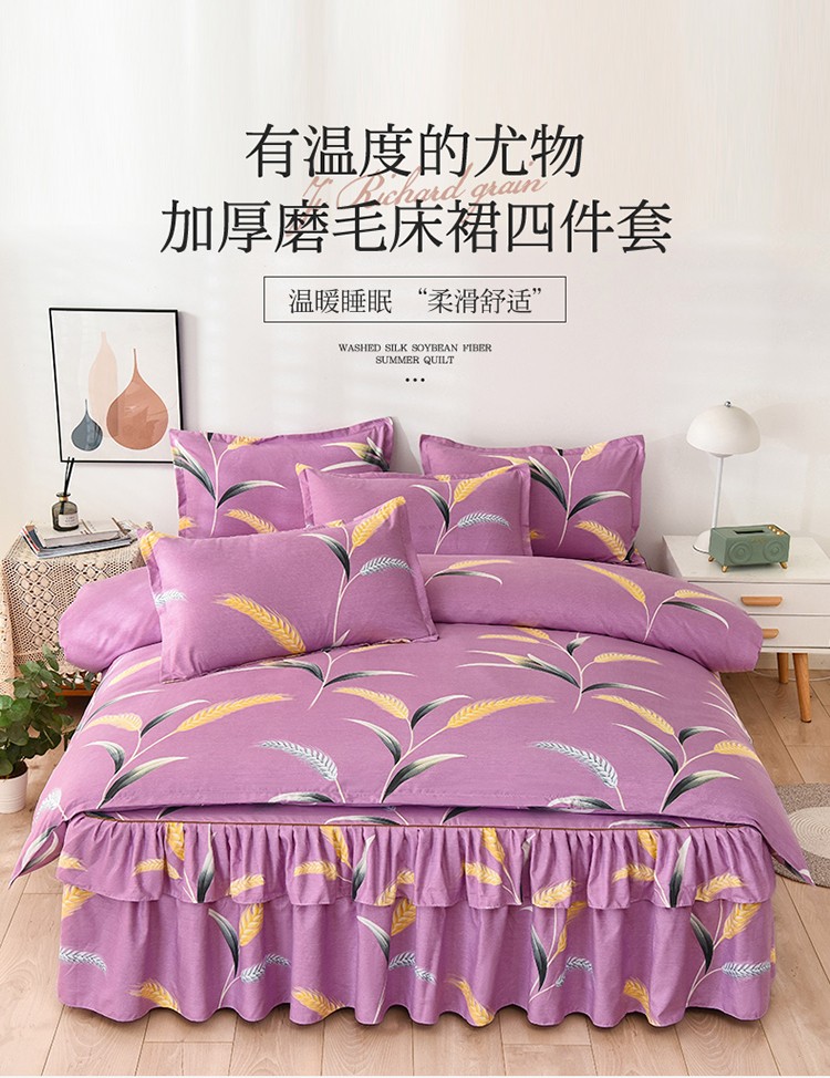 代芙 2022新款加厚磨毛双边床裙四件套 叶语绵绵,叶语绵绵