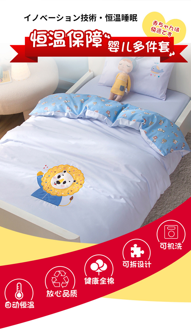 当前位置: 91家纺网 > 商品网购 > 婴童用品 > 婴童三件套 > 喜多兔 2022新款小小梦幼儿园三件套 小小梦狮子宝贝
