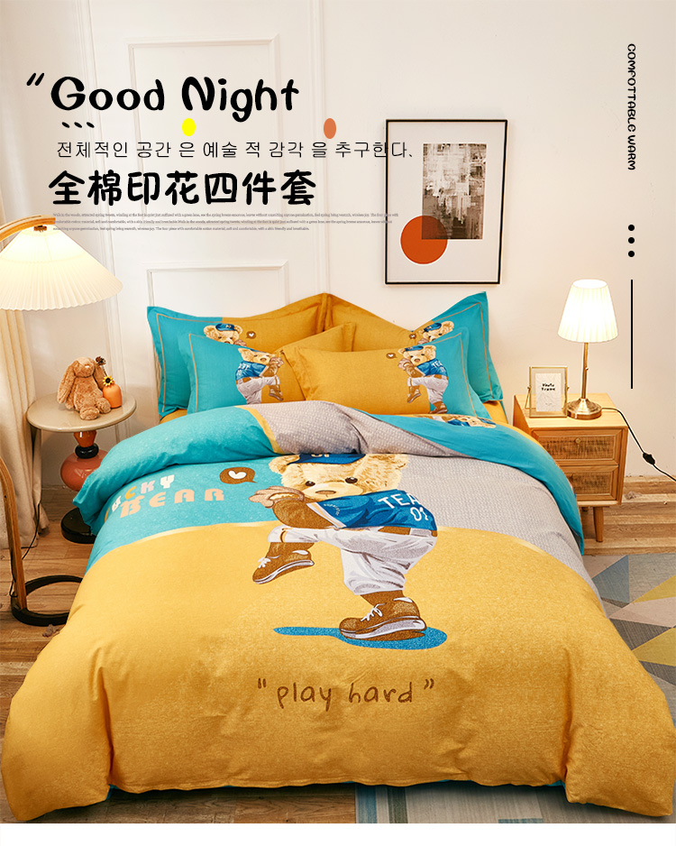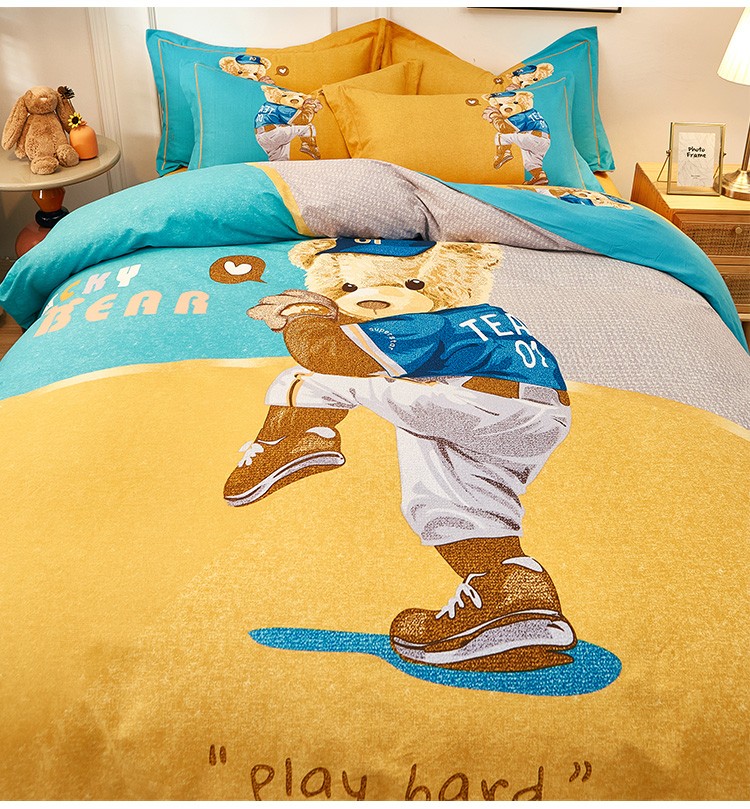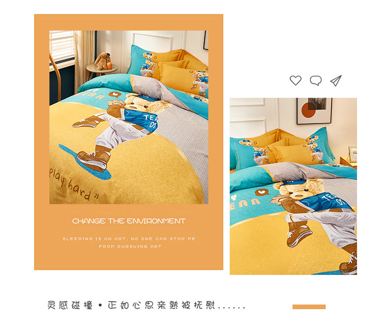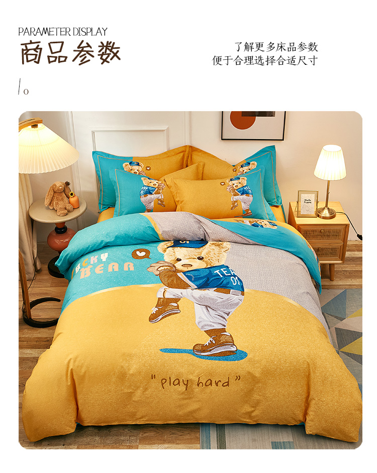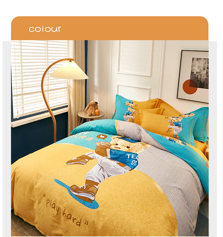 (总)雲归梦2022年新款加厚全棉大版四件套第二批-格条卡通,艾洛依-咖,巴特罗-粉,潮酷熊-咖,幻城-黄,几何空间-灰,杰罗-桔,卡尔玛-黄,兰卡斯-兰,茉伯妮-兰,莫妮卡-粉,趣萌熊-黄,森旅小鹿,天空之城,甜丫丫-桔,潮酷熊蓝