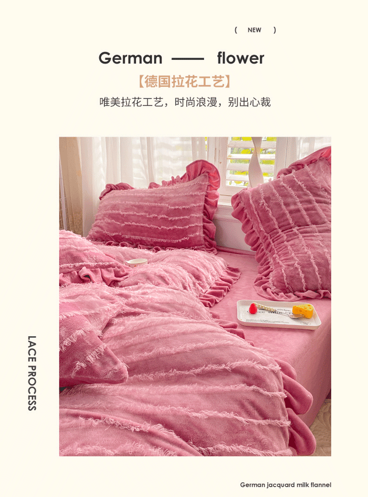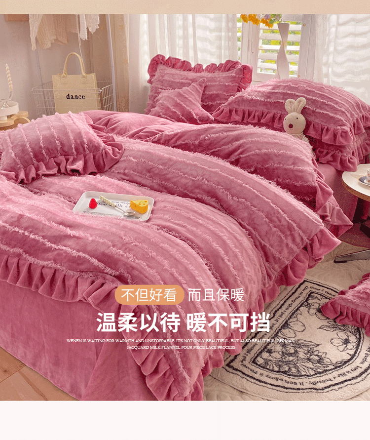 欧冠家纺 2022新款 高端牛奶绒提花四件套 豆沙红