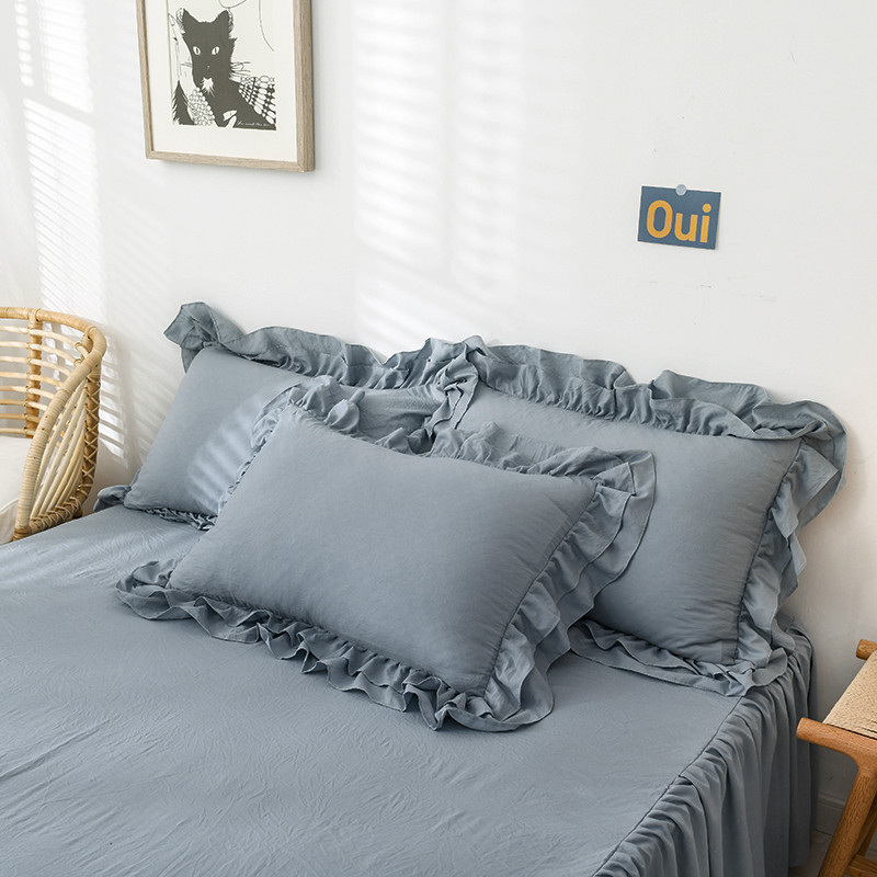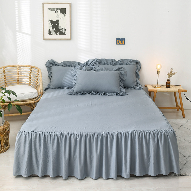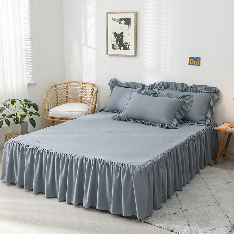 2023新款水洗棉磨毛韩式单层床裙 灰色