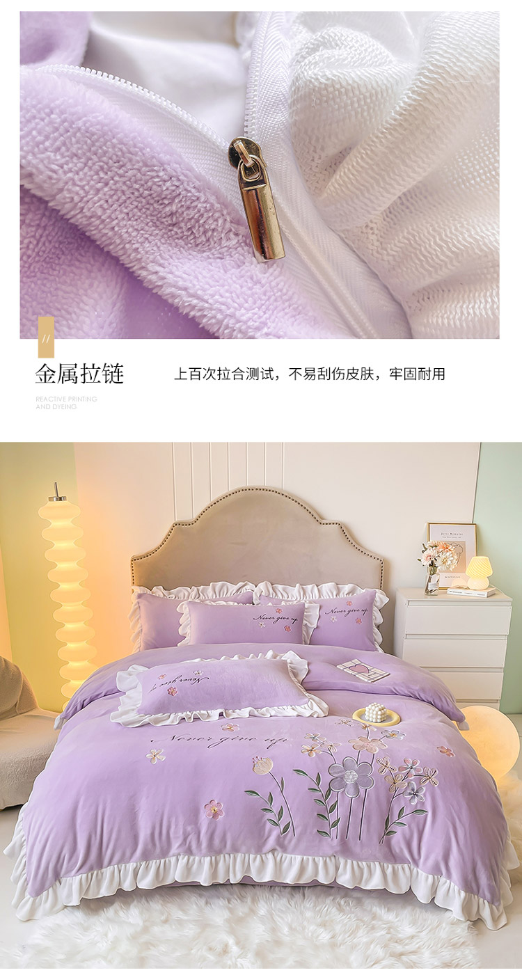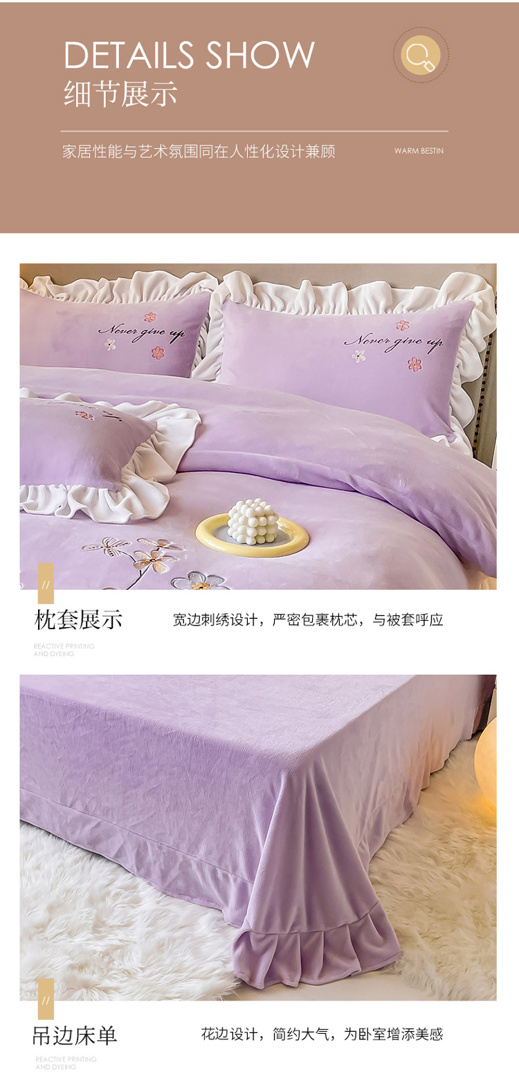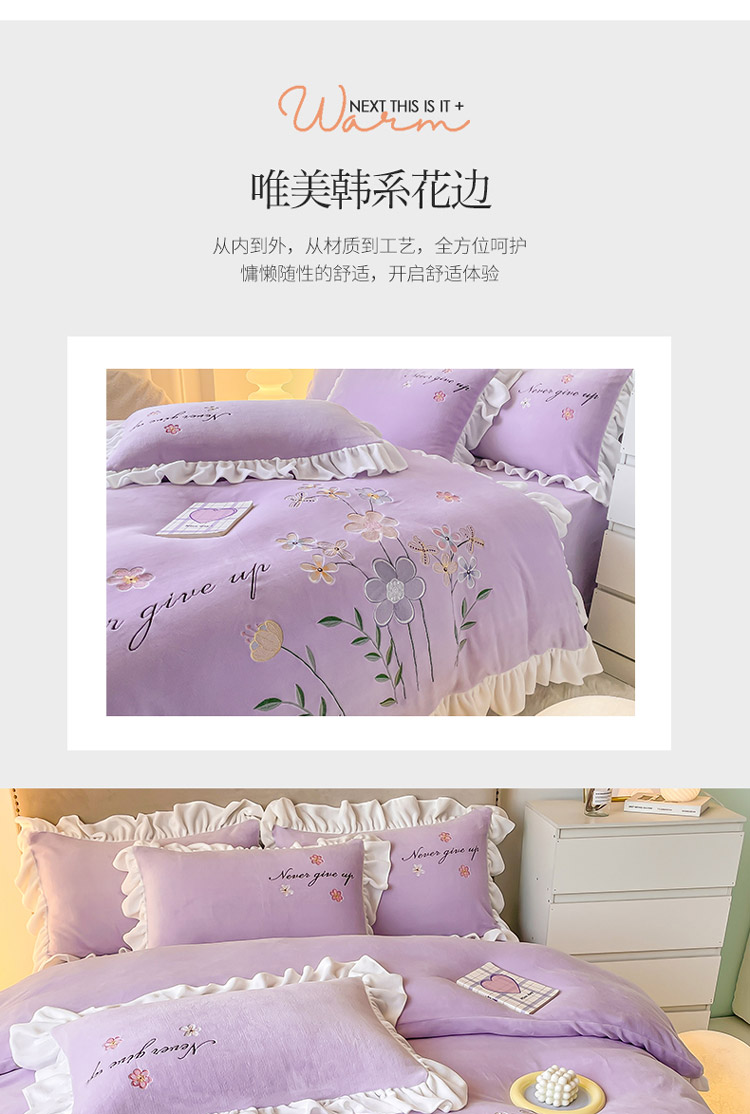 凯美2022新款牛奶绒四件套花镜系列 浅紫