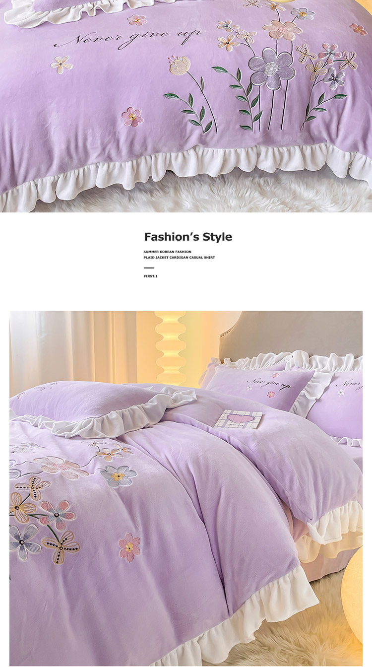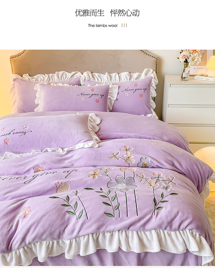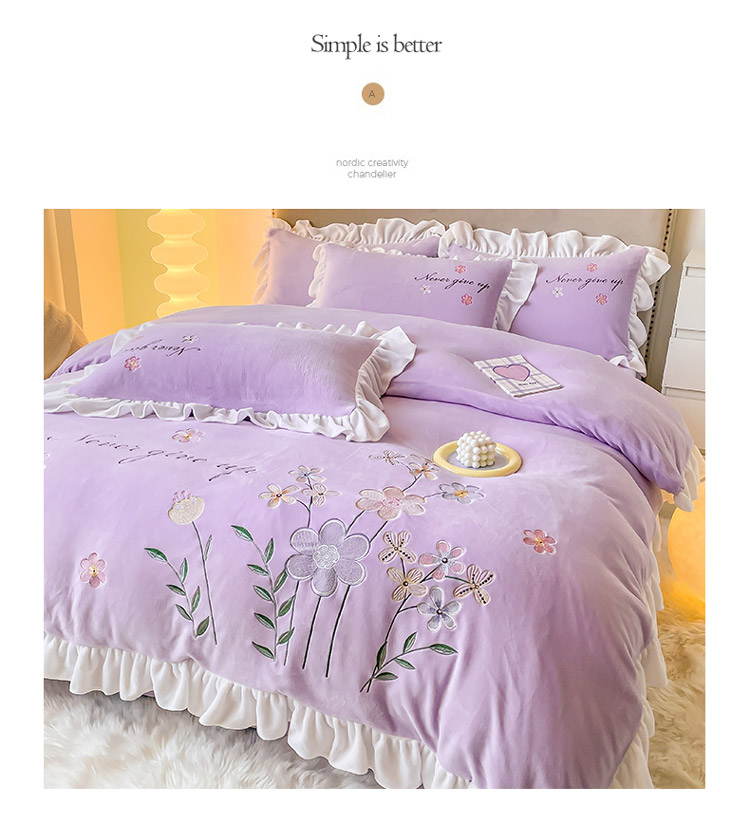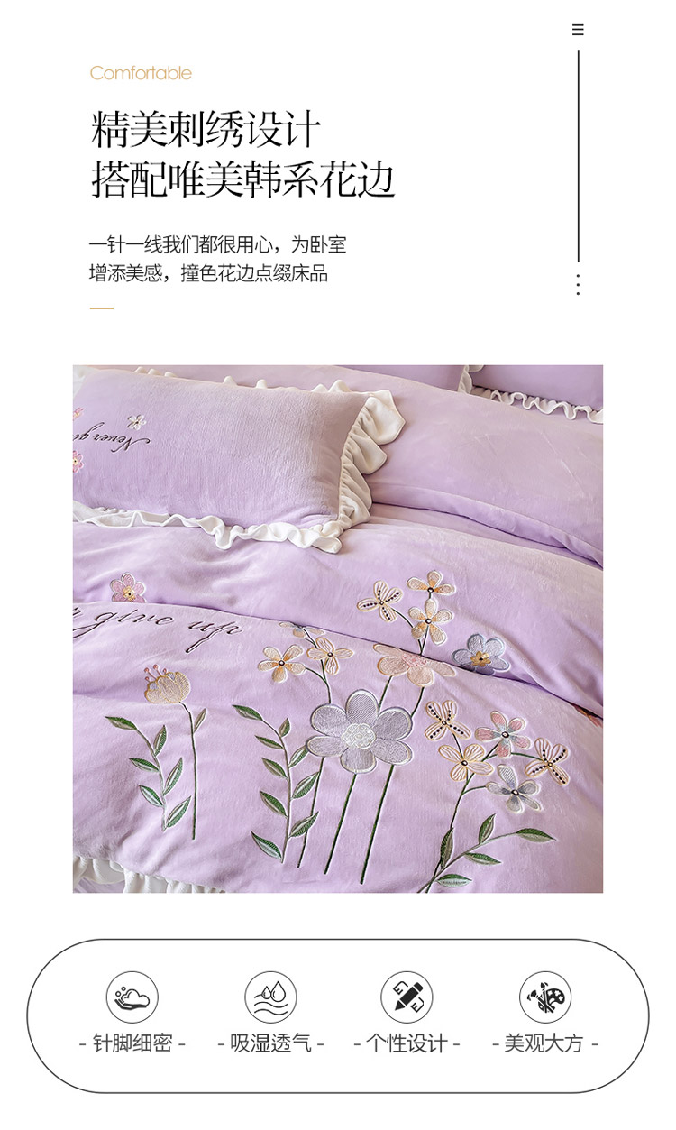 凯美2022新款牛奶绒四件套花镜系列 浅紫
