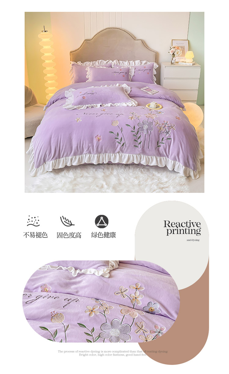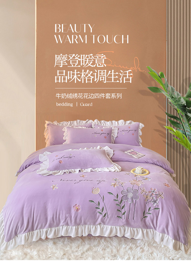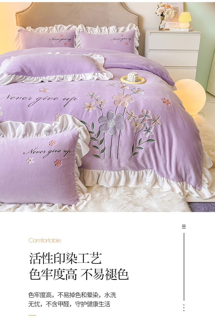 (总)凯美家居 2025新款A类牛奶绒蕾丝刺绣四件套-锦上添花,锦上添花-浅绿,锦上添花-粉玉,锦上添花-奶白,锦上添花-浅黄,锦上添花-浅蓝,锦上添花-浅紫