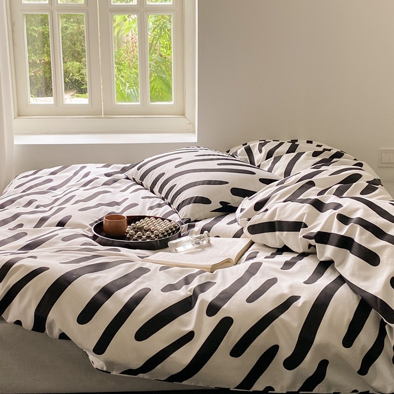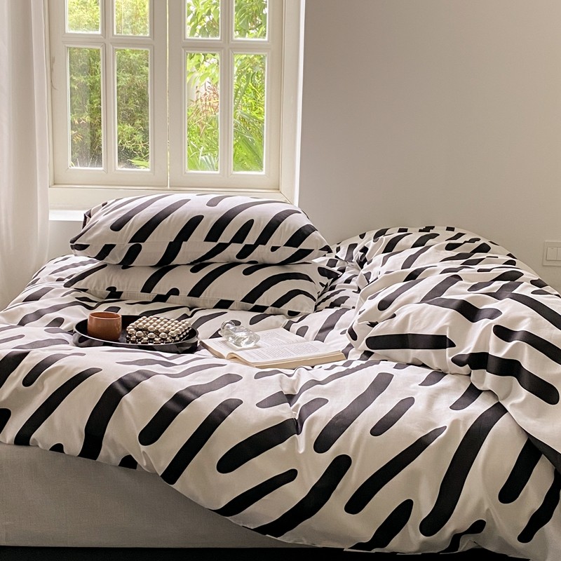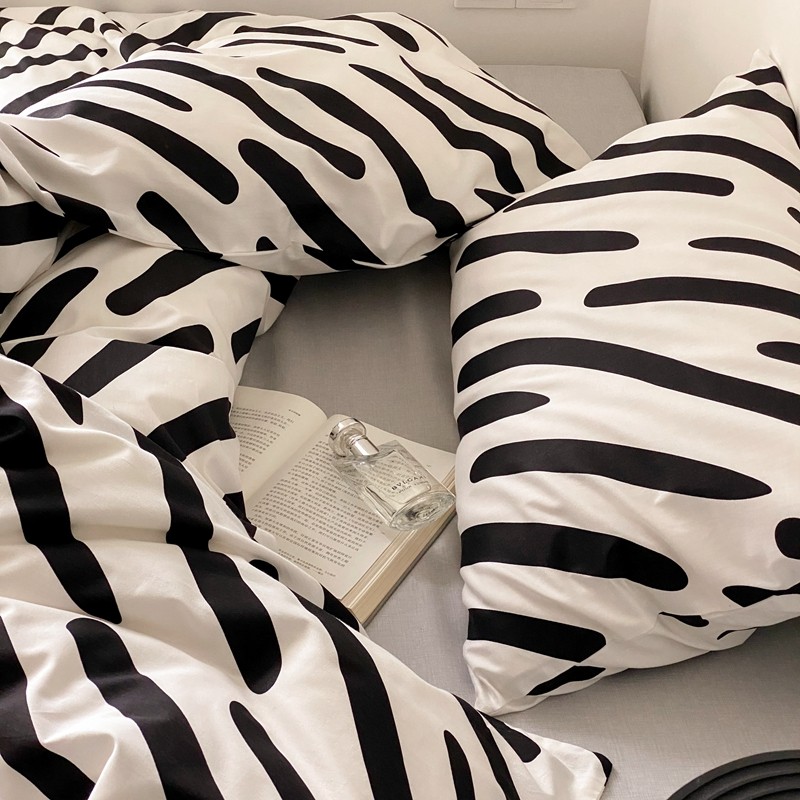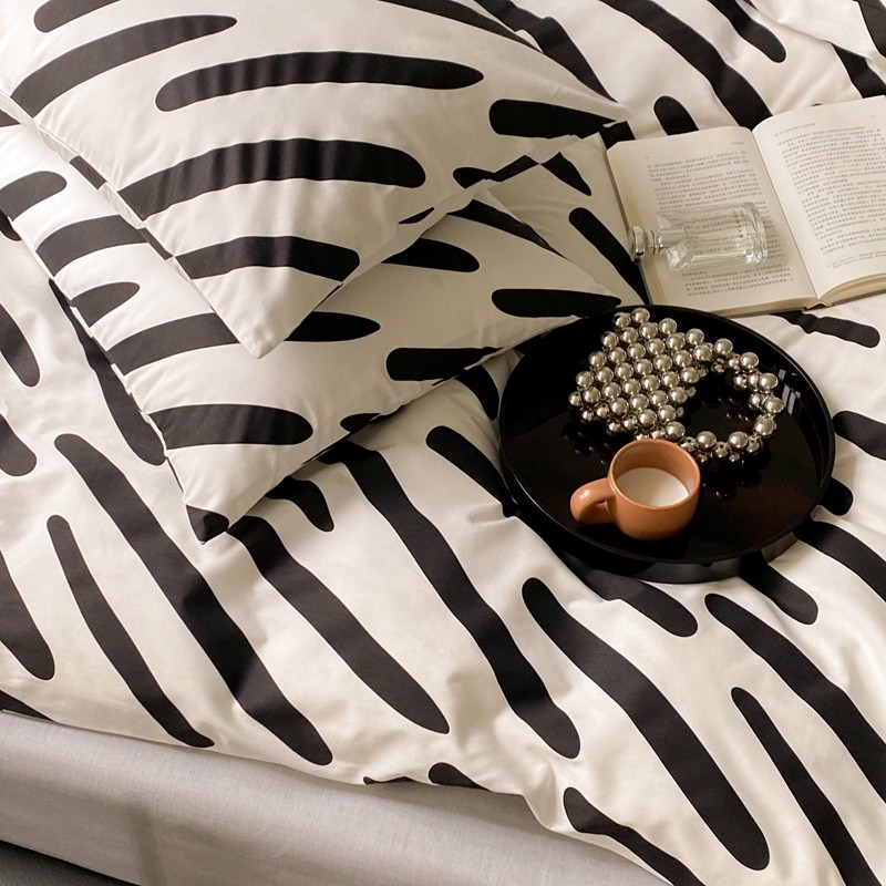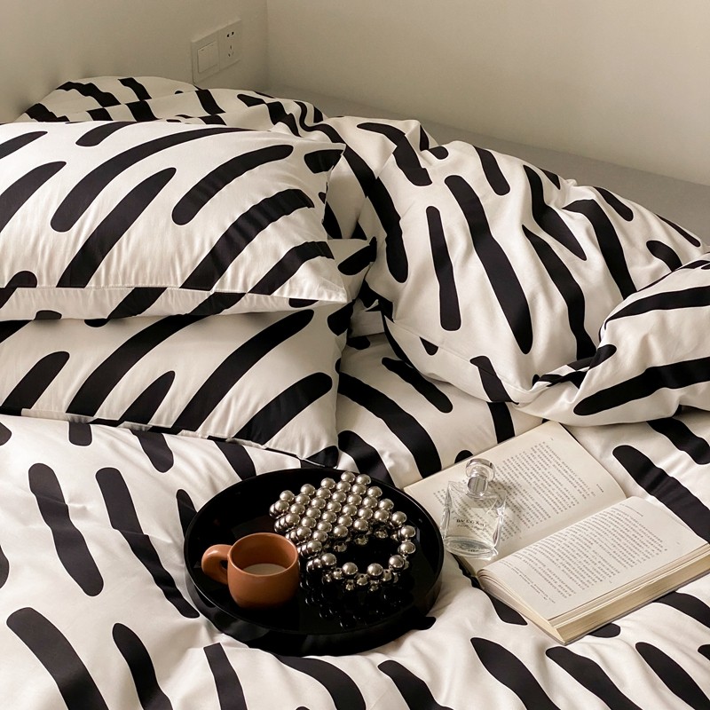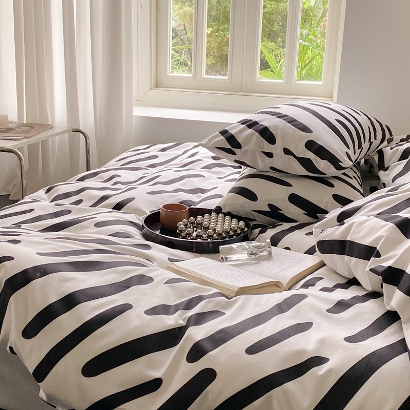 昔可 2022新款全棉四件套新款影棚图 黑白斑马条