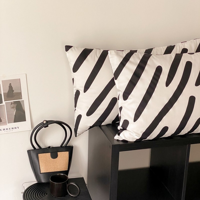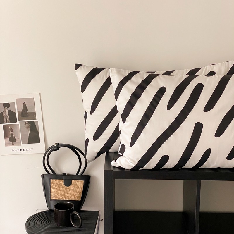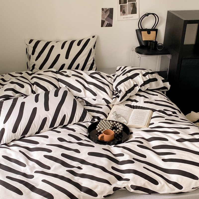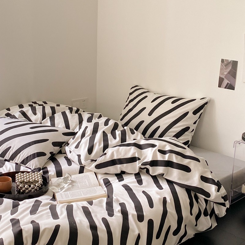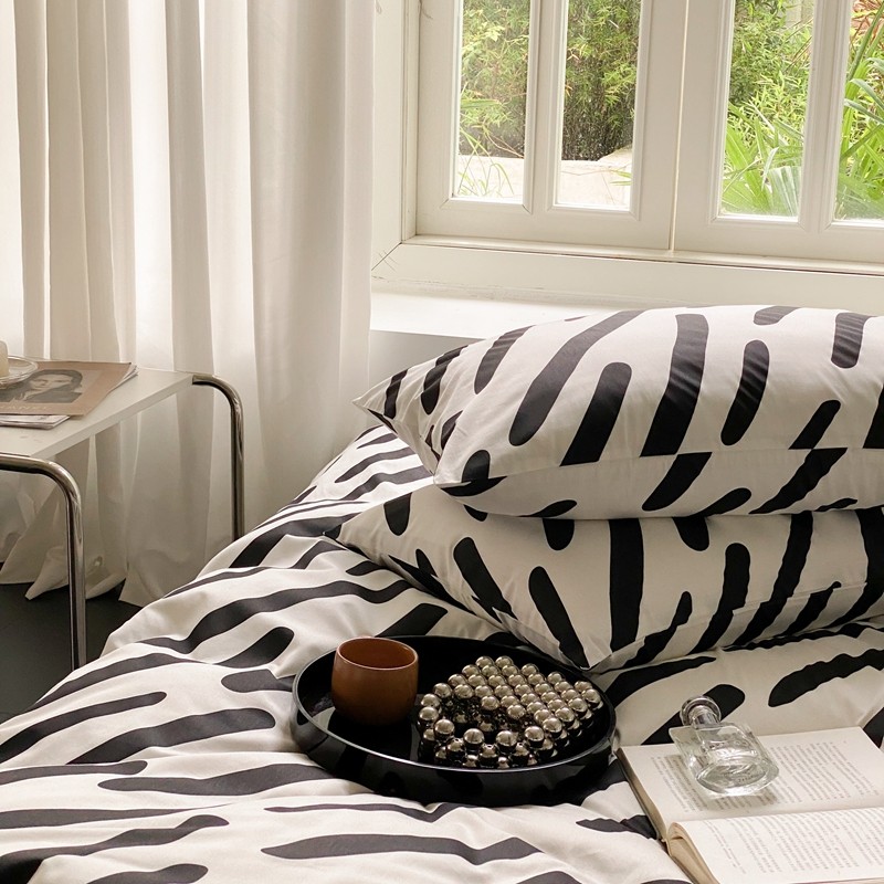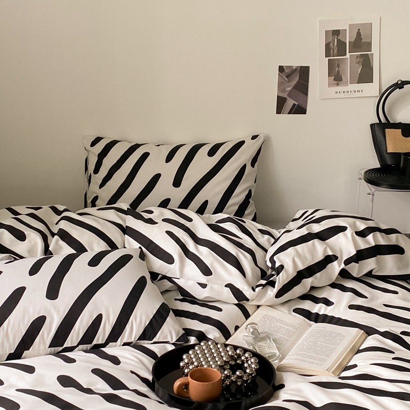 昔可 2022新款全棉四件套新款影棚图 黑白斑马条