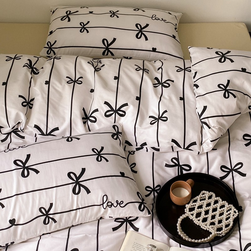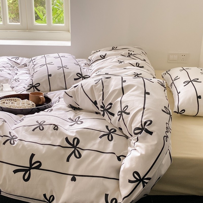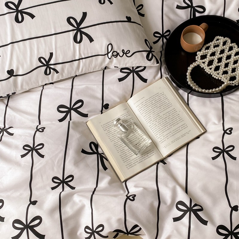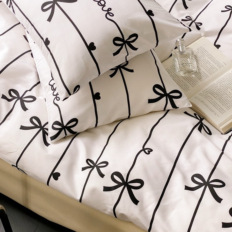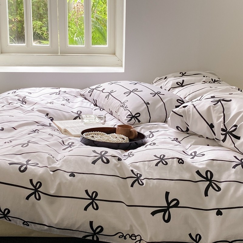 昔可 2022新款全棉四件套新款影棚图 丝带蝴蝶结