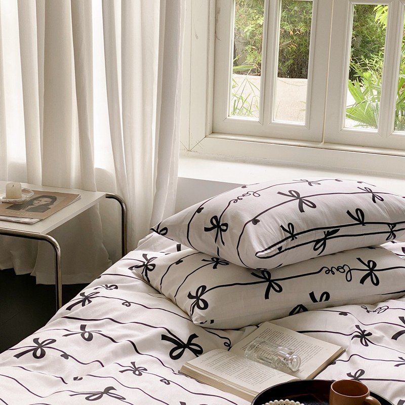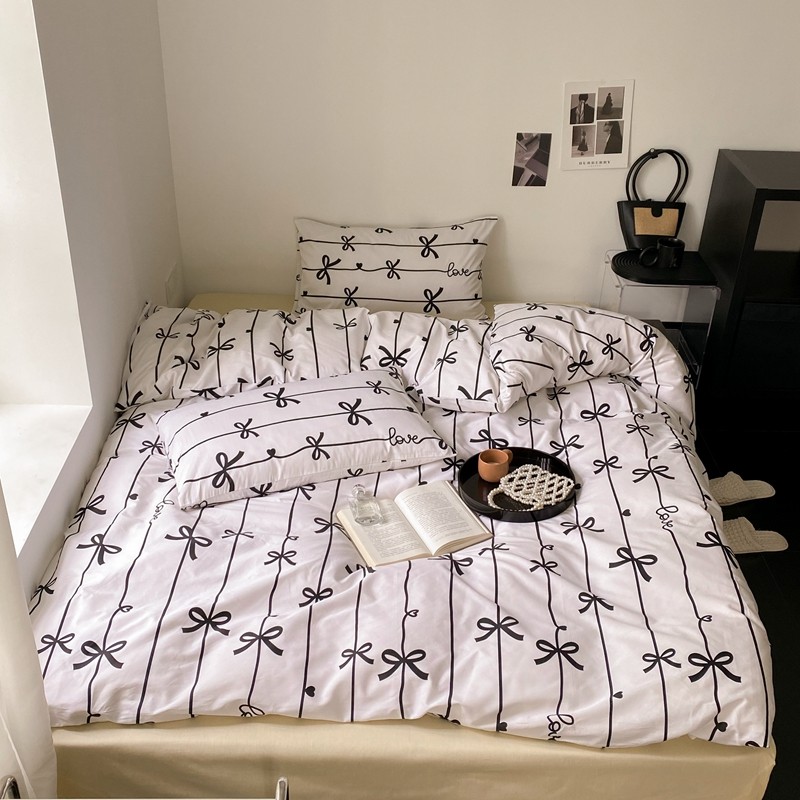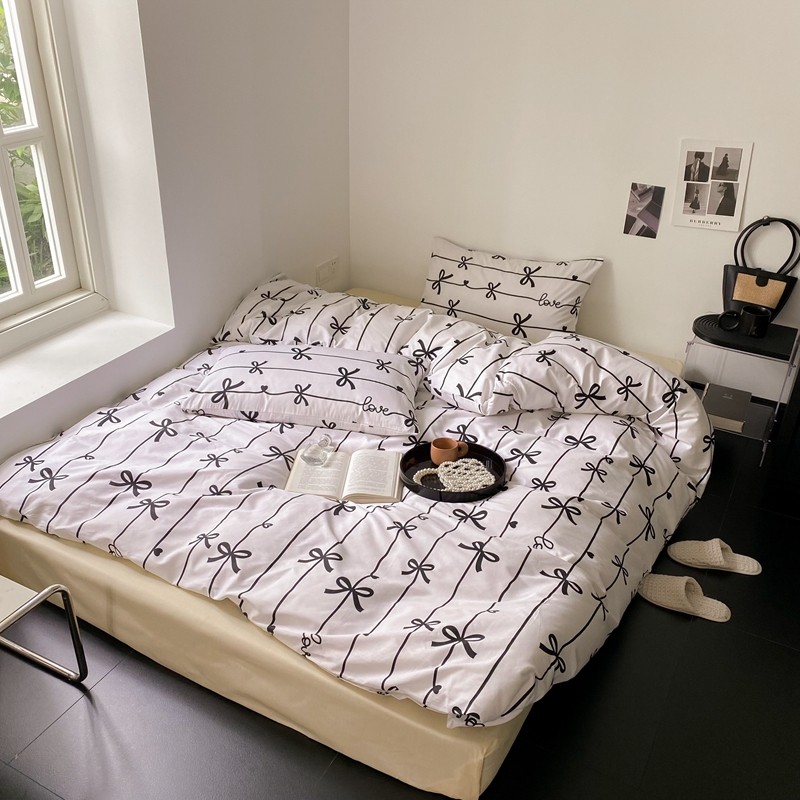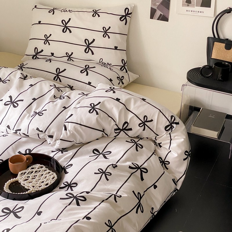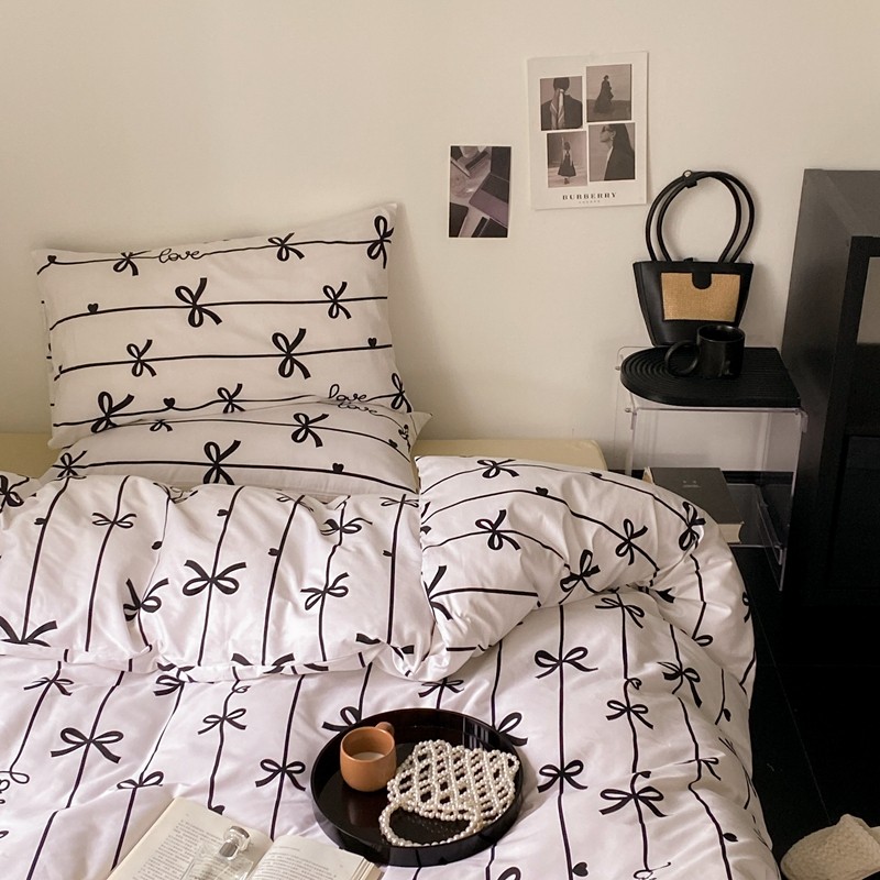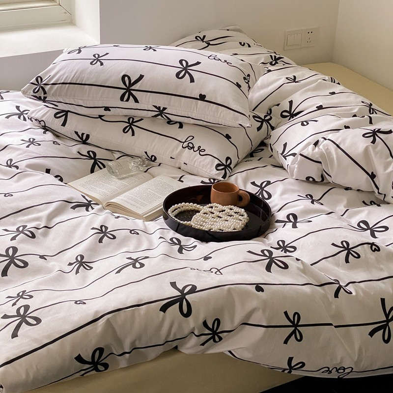 昔可 2022新款全棉四件套新款影棚图 丝带蝴蝶结