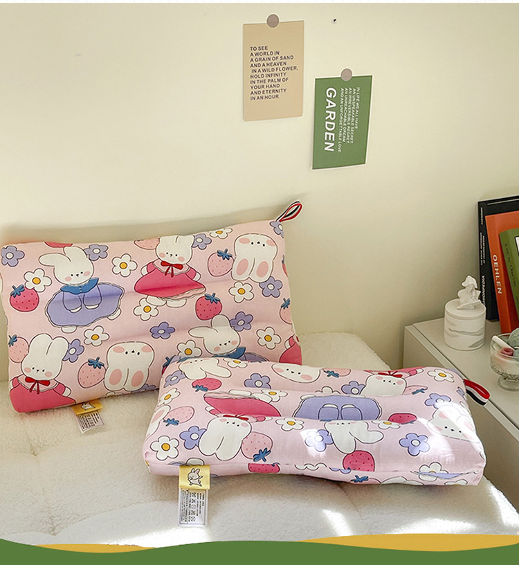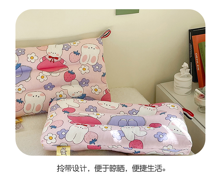 宝晶枕芯 2022新款全棉儿童枕头可水洗儿童枕 草莓兔