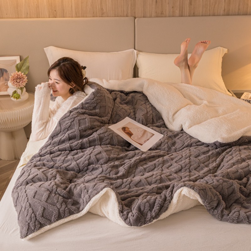 (总)简爱 2025新款法莱绒羊羔绒多功能被套毯,藏青,豆沙,鹅黄,湖蓝,酒红,咖啡,浅绿,深灰,驼色,夕阳红,银灰,玉色