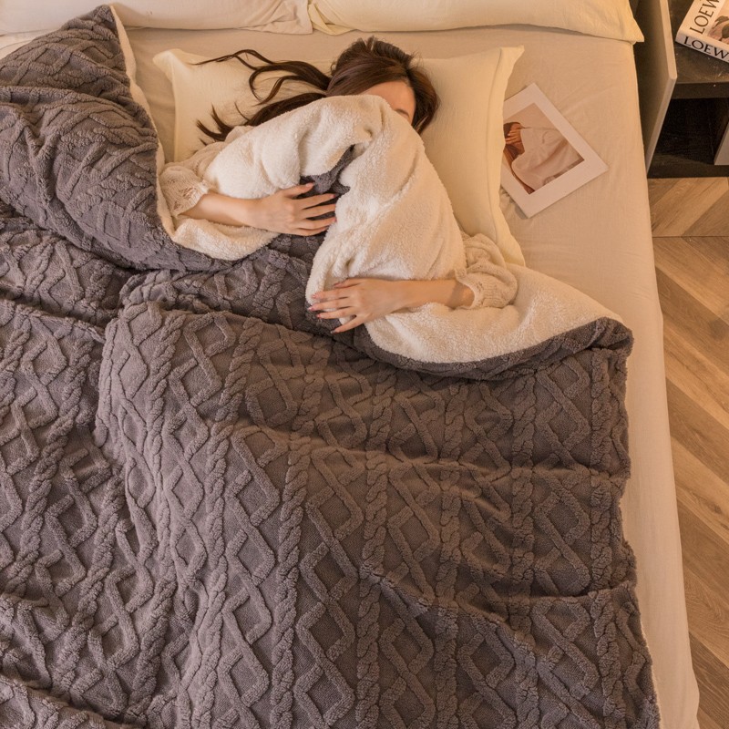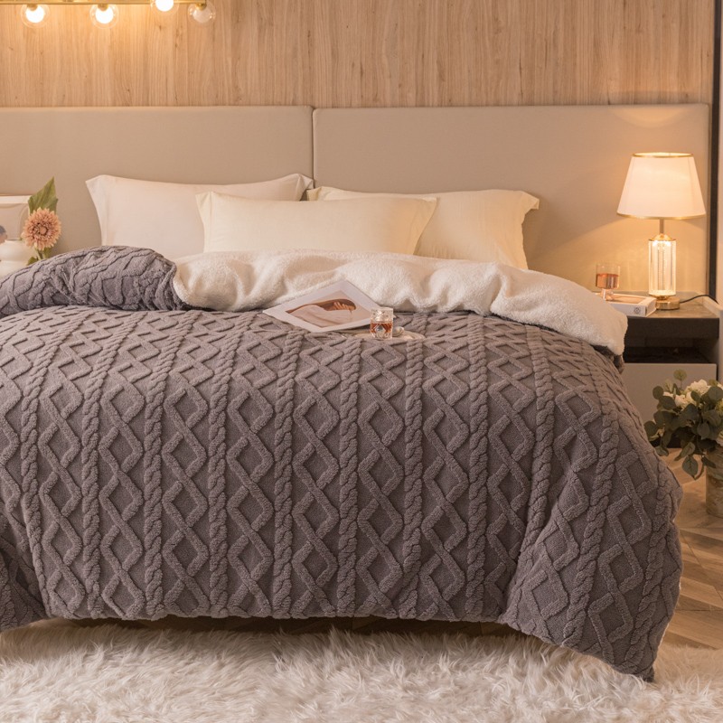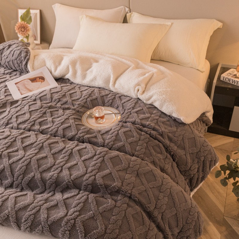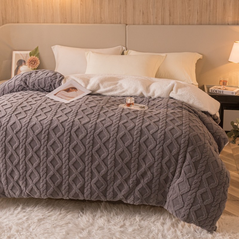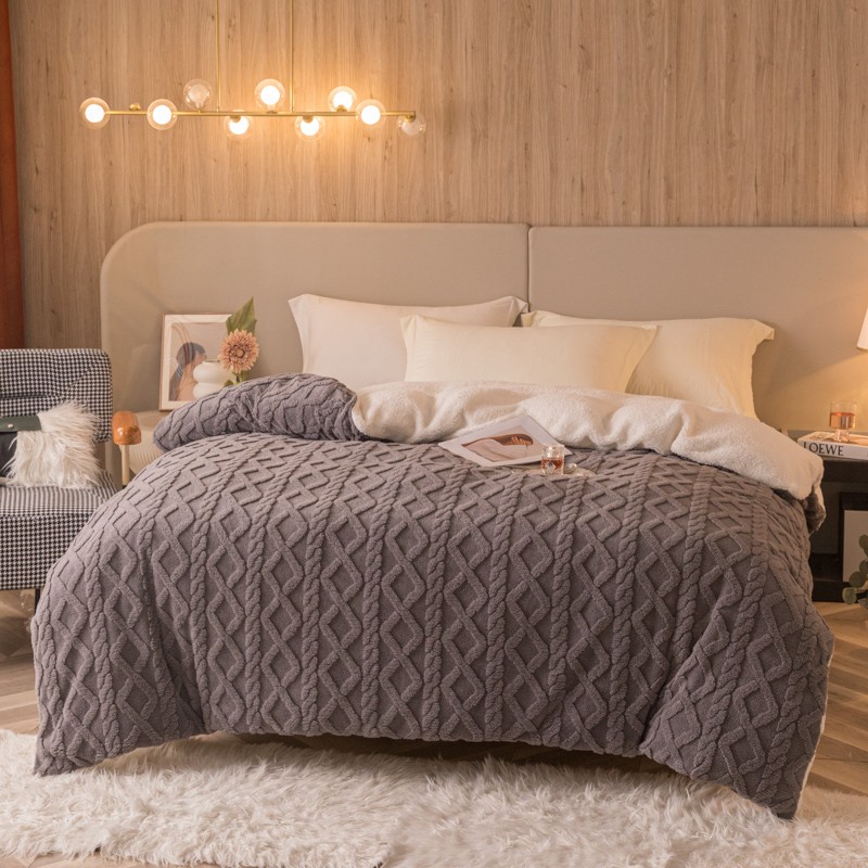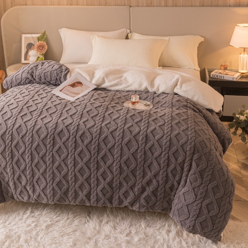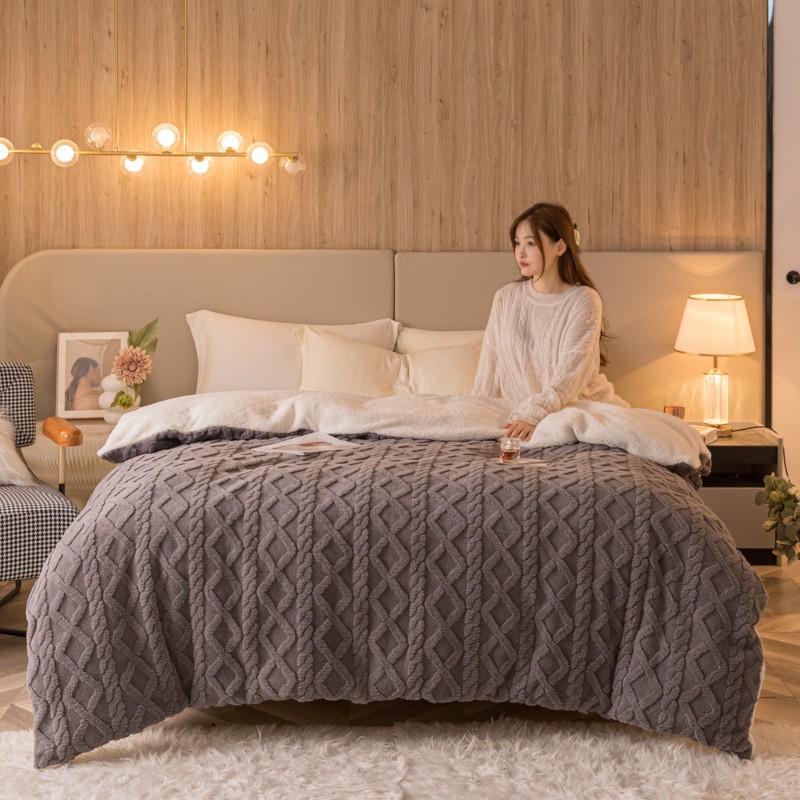 商品名称:简爱-2025舒棉绒羊羔绒单被套多功能毯 菱形茉格-儒雅灰