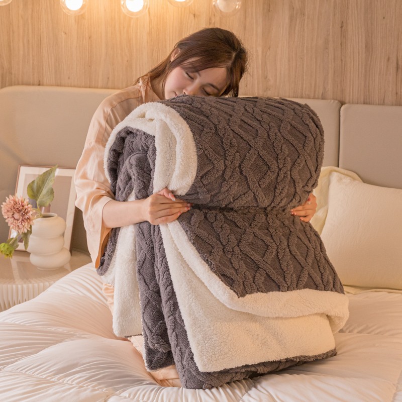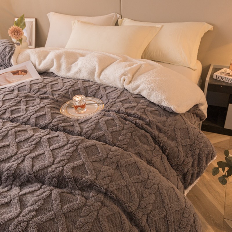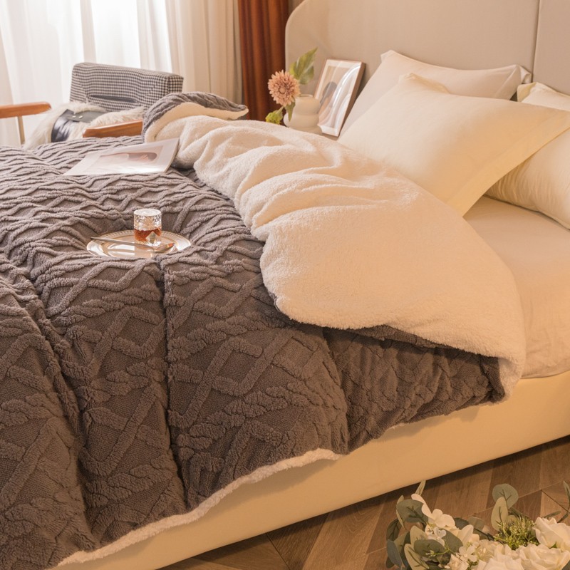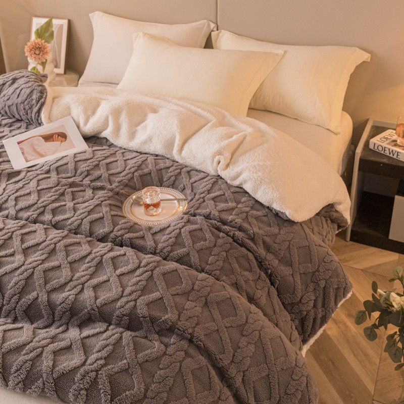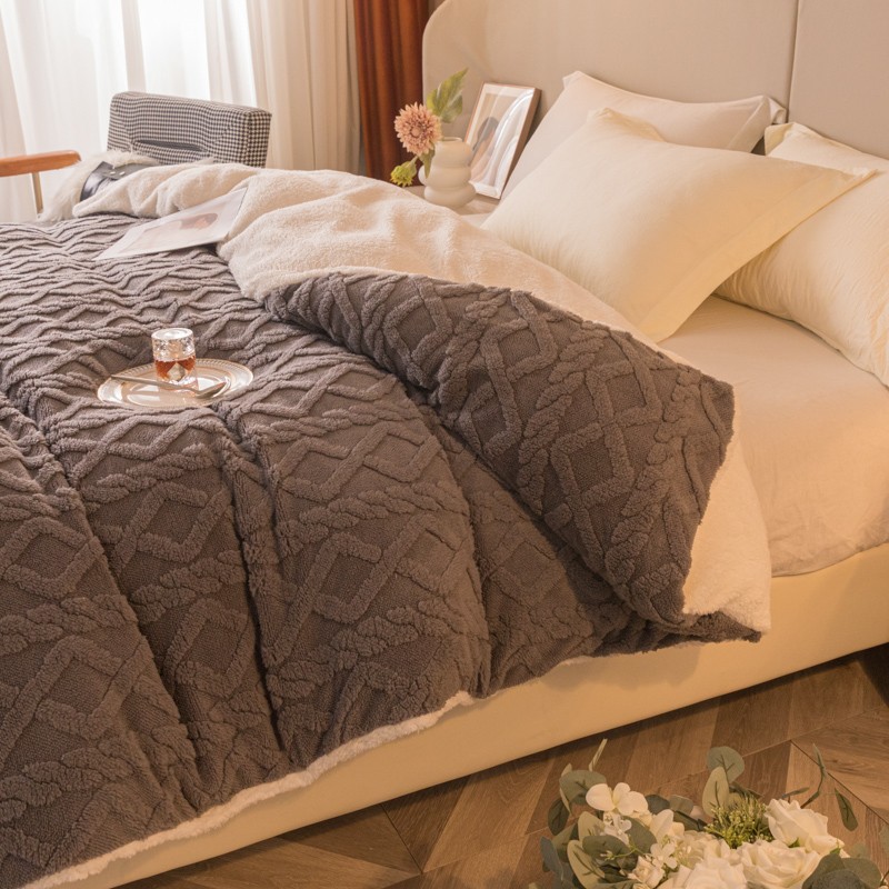 简爱-2025舒棉绒羊羔绒单被套多功能毯 菱形茉格-儒雅灰