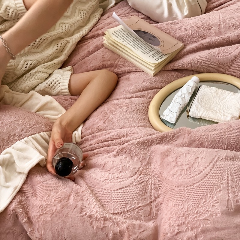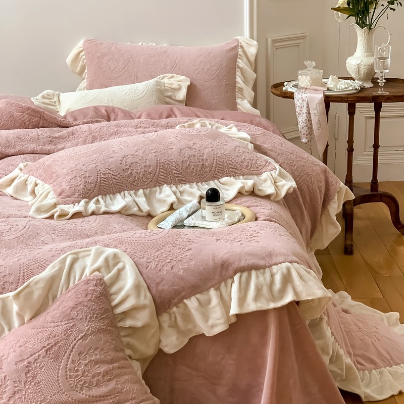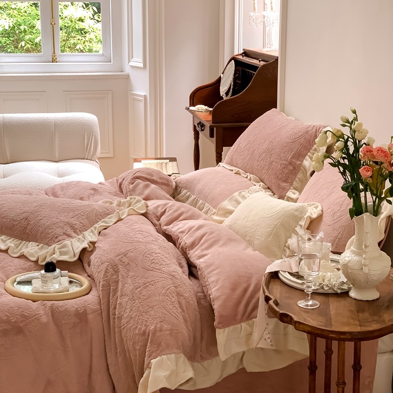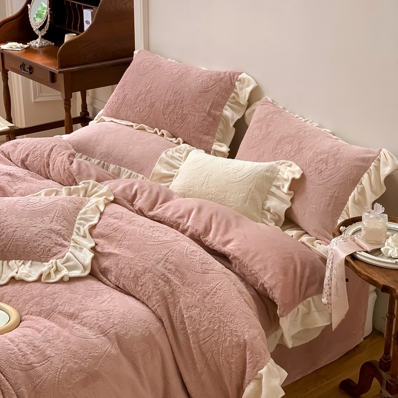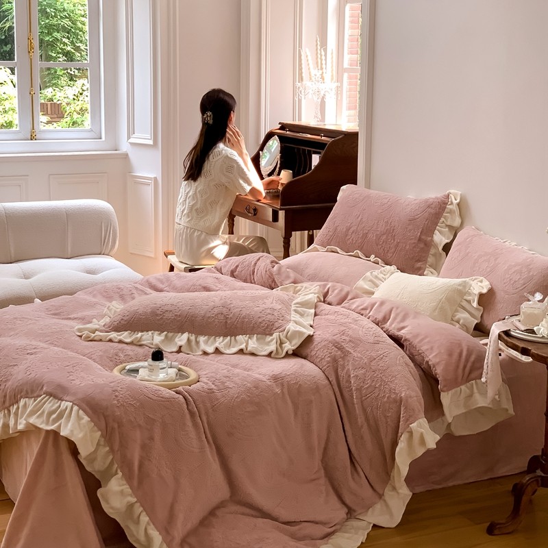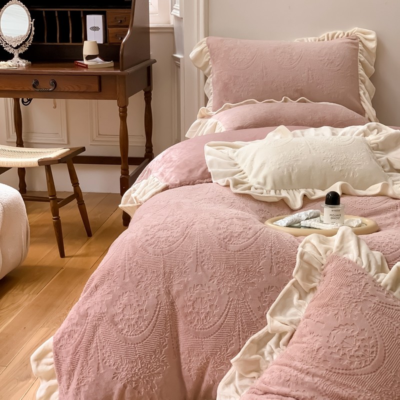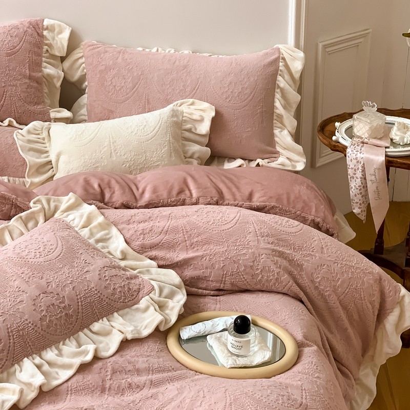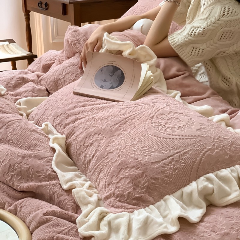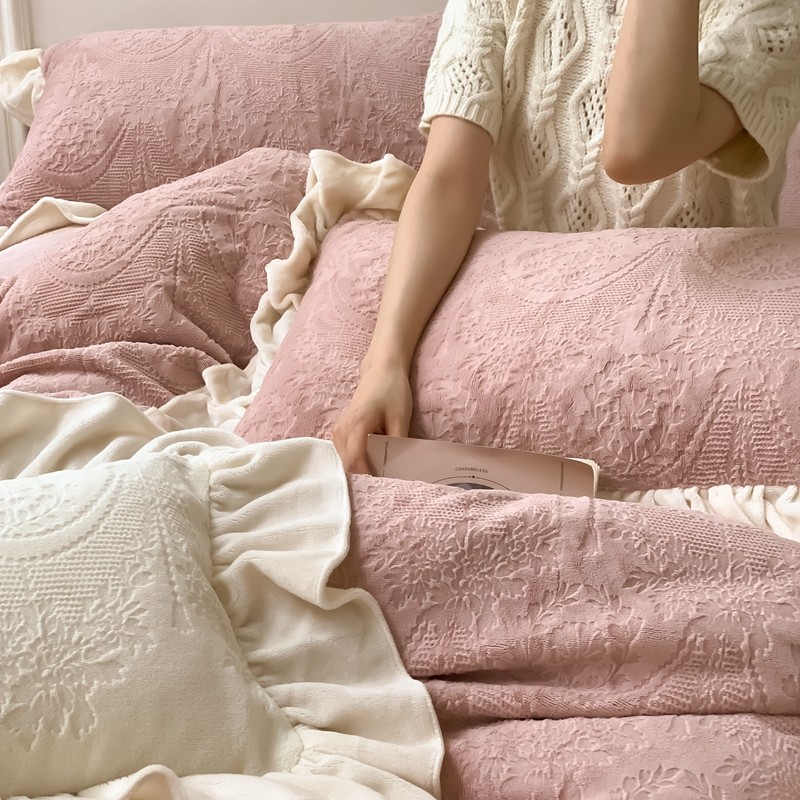 商品名称:馨蕊2022新款秋冬轻奢煦暖绒系列四件套-克拉 克拉-蔷薇粉