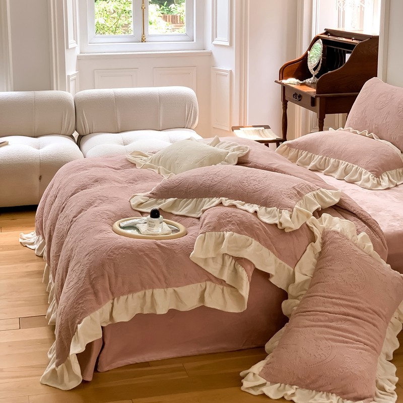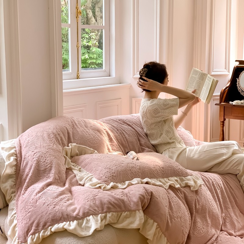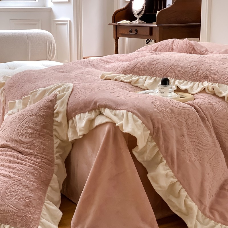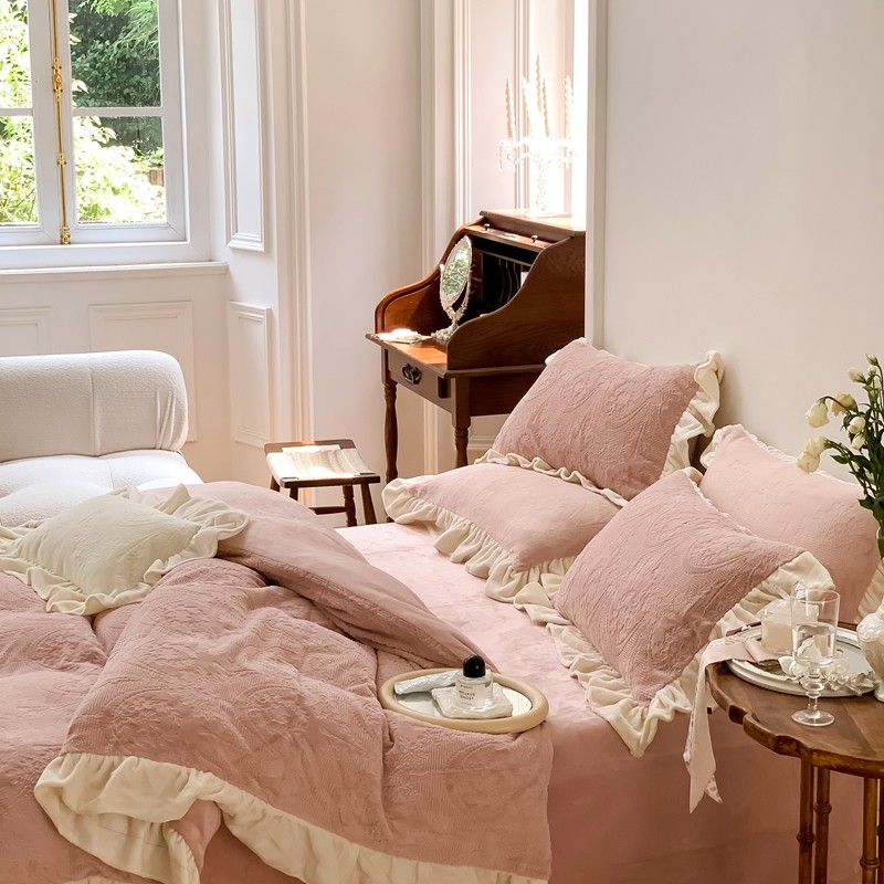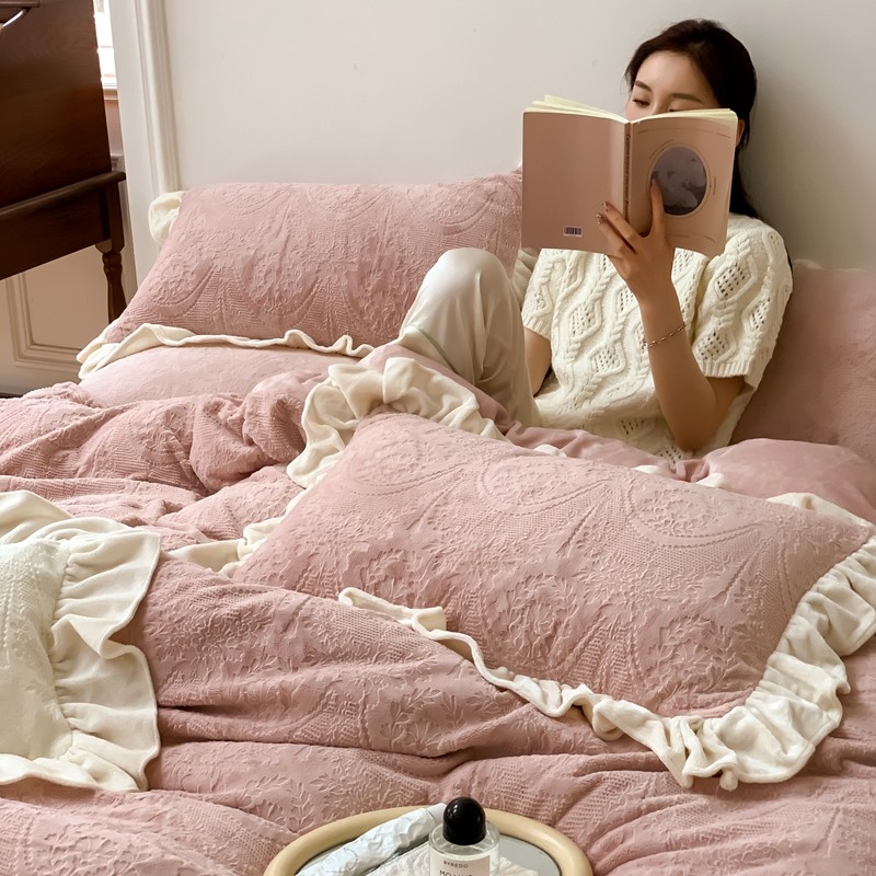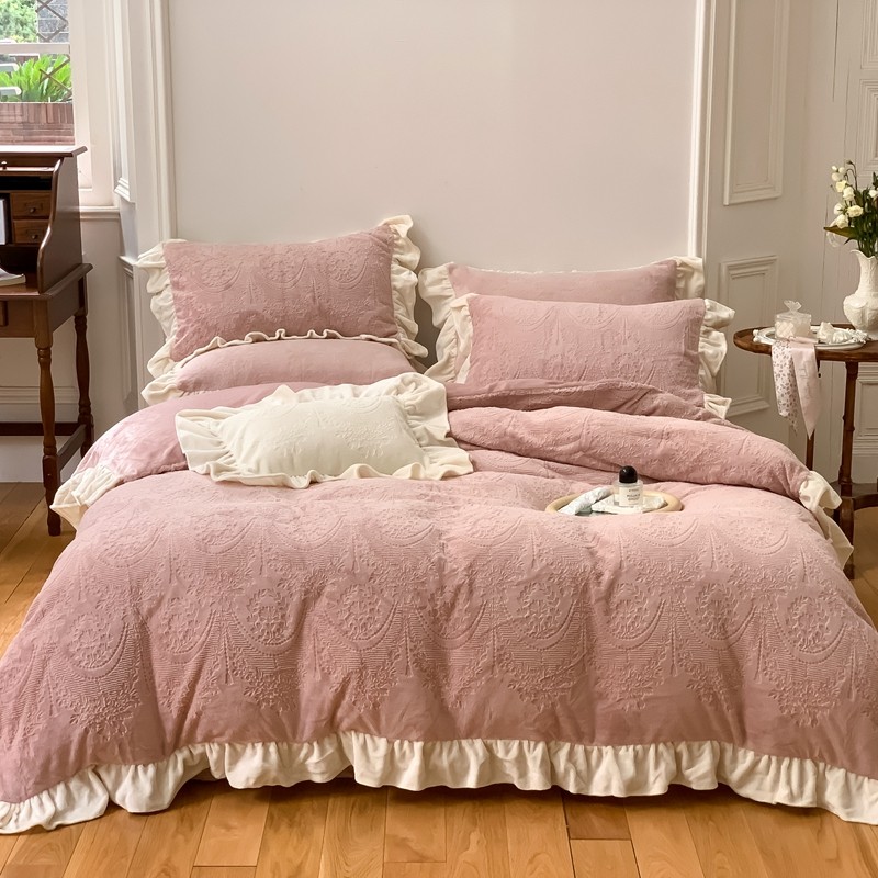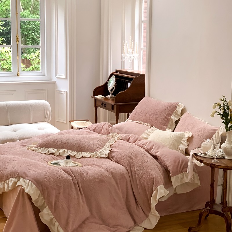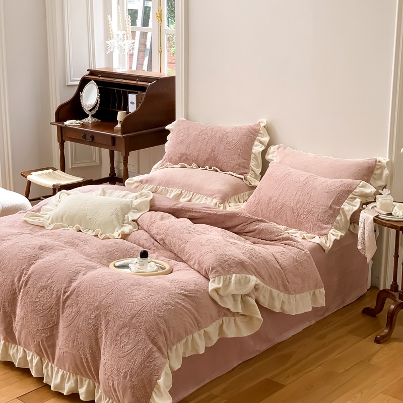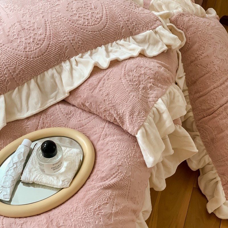商品名称:馨蕊2022新款秋冬轻奢煦暖绒系列四件套-克拉 克拉-蔷薇粉