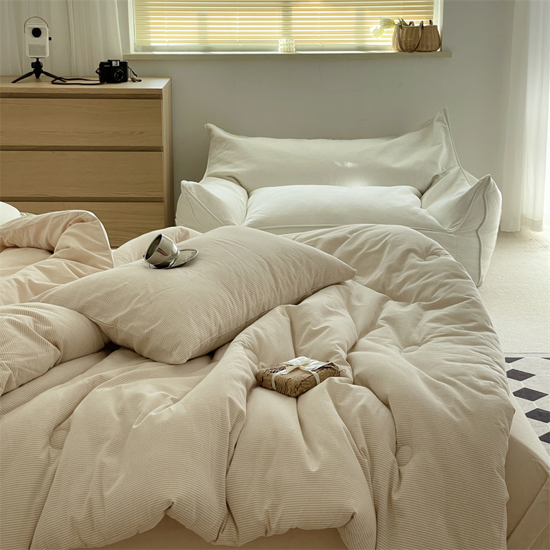 (总)梦享生活 2021新款华夫格水洗棉四件套,白色,粉色,黄色,卡其,浅灰,天蓝