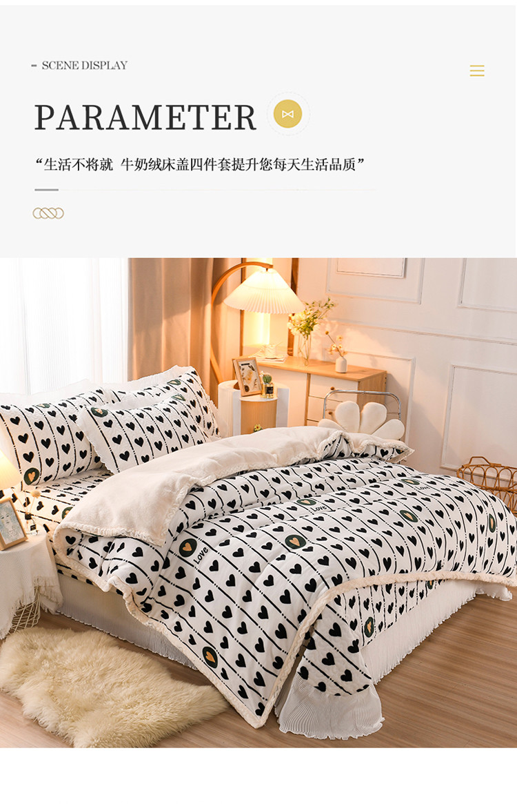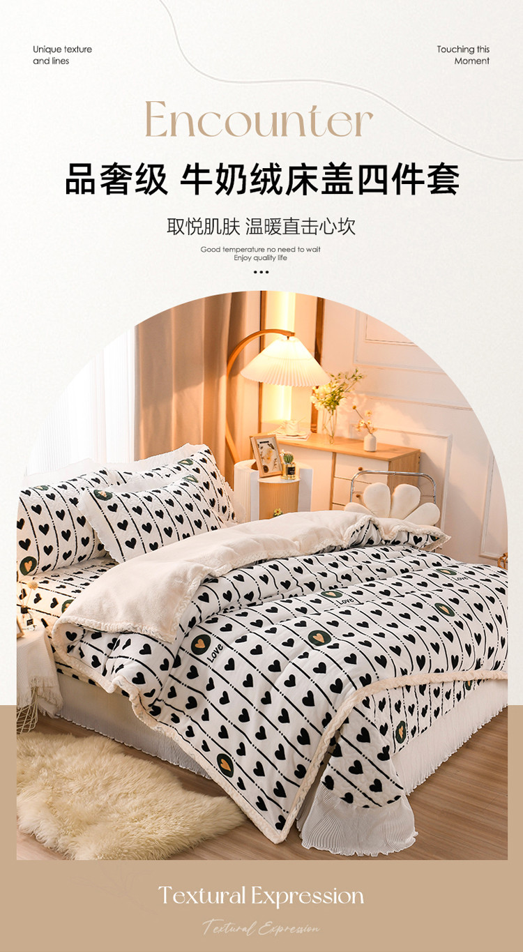 商品名称:迷仙巢 2022新款牛奶绒床盖款四件套 心心相印