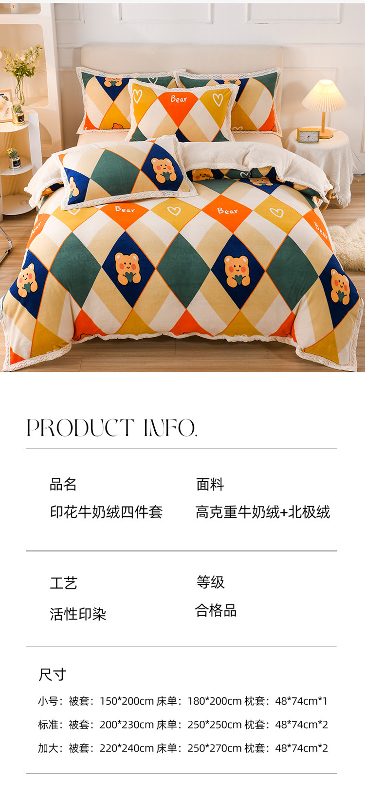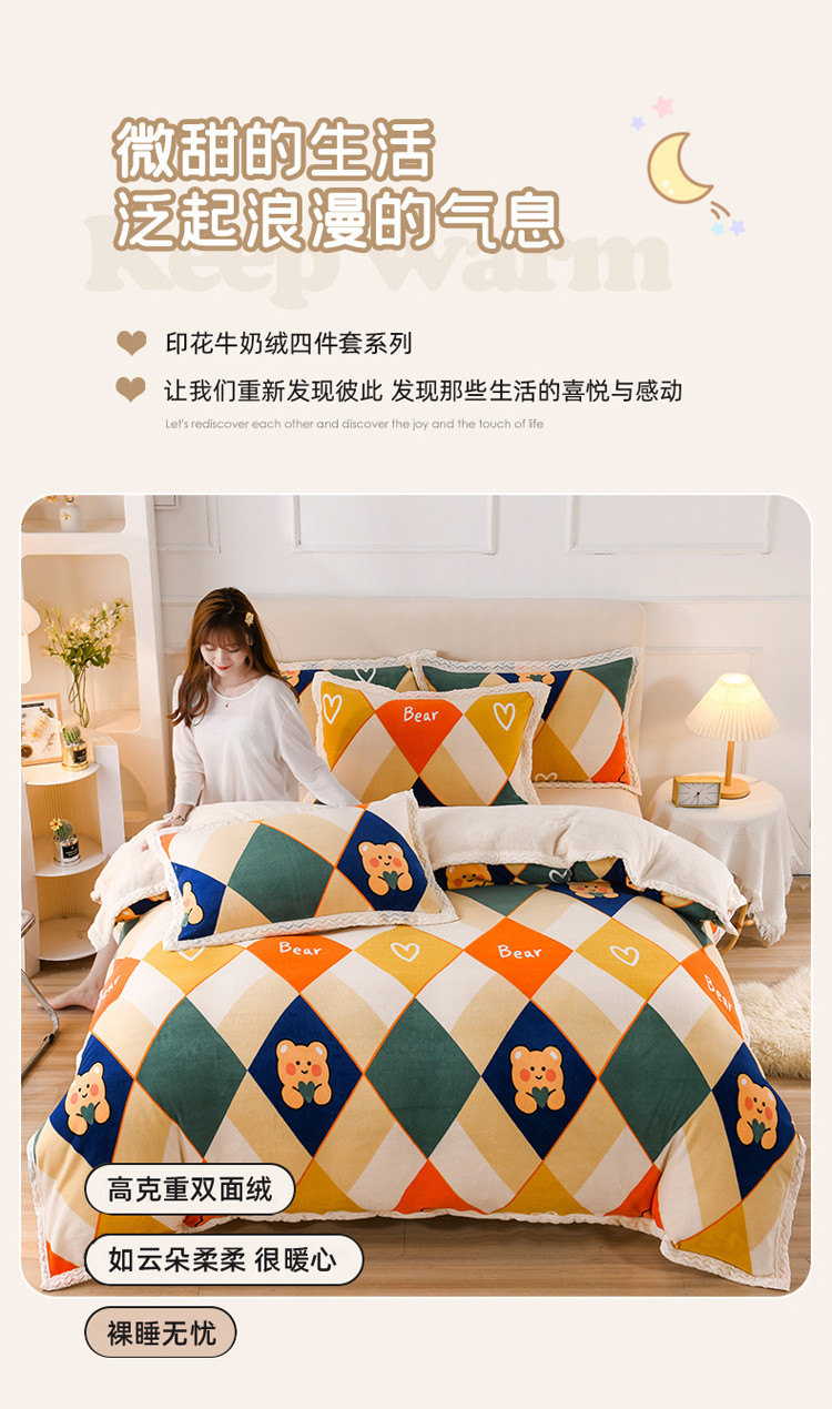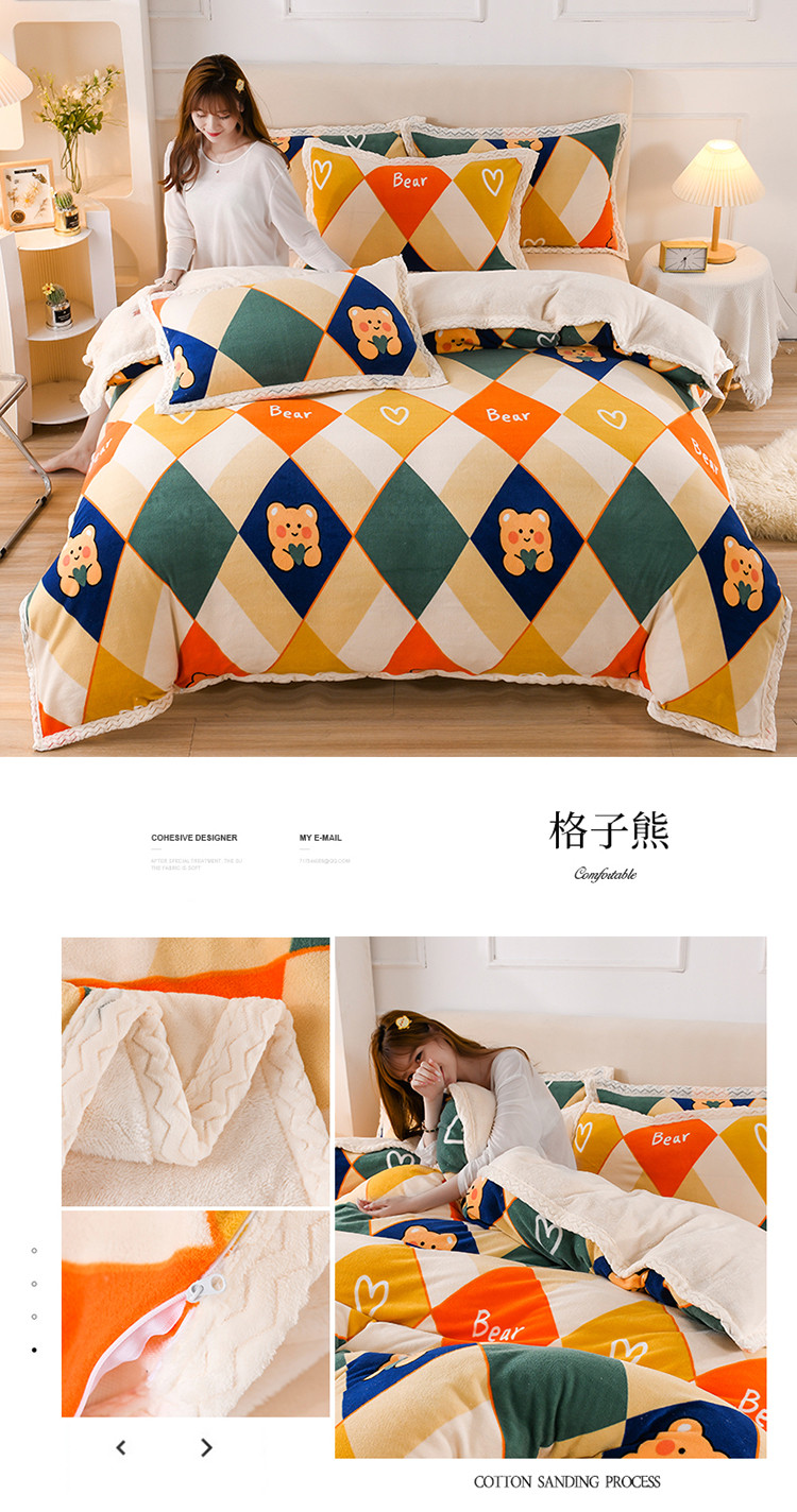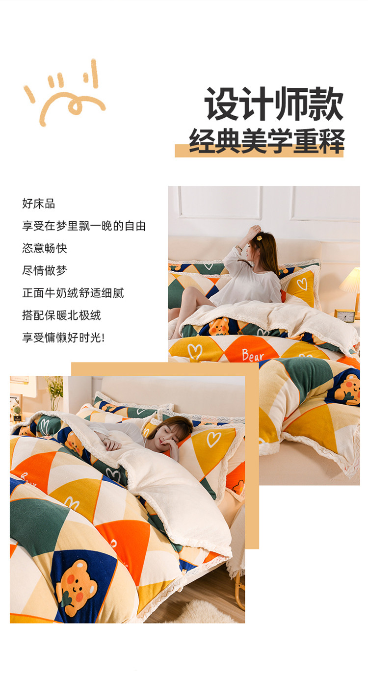 当前位置: 91家纺网 > 商品网购 > 床品套件 > 四件套 > 牛奶绒四件套 > 迷仙巢 2022新款牛奶绒拼北极绒贝贝绒包边四件套 格子熊