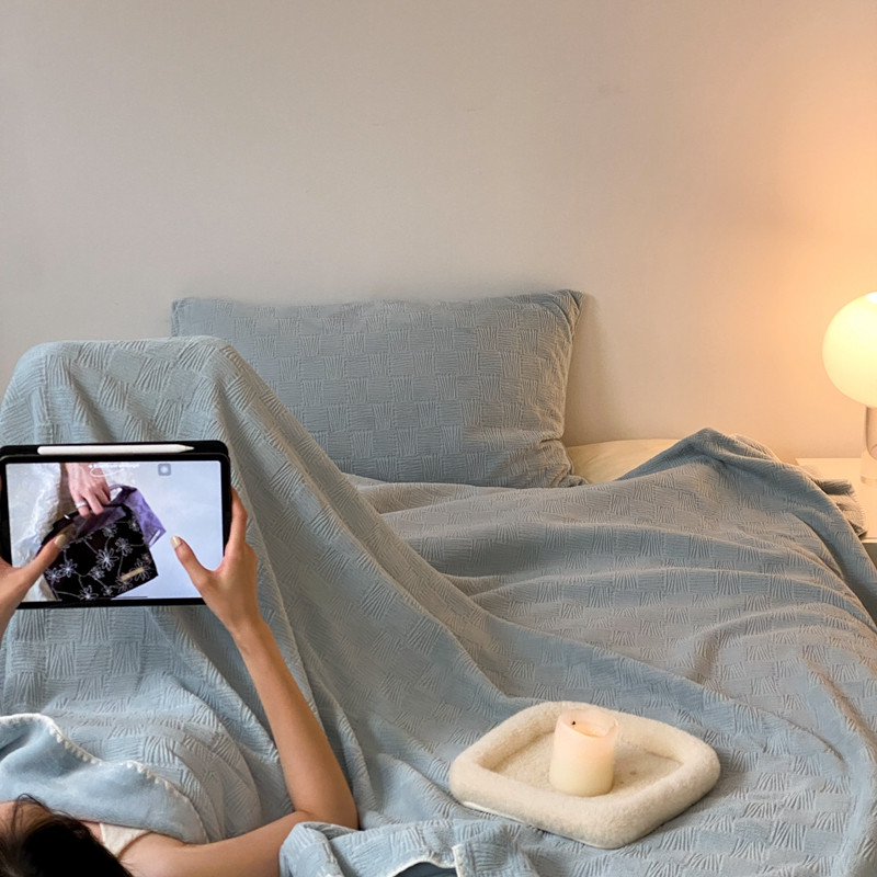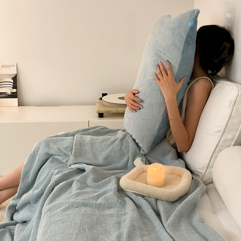 桃喜 2022新款牛奶绒提花毛毯 静谧蓝