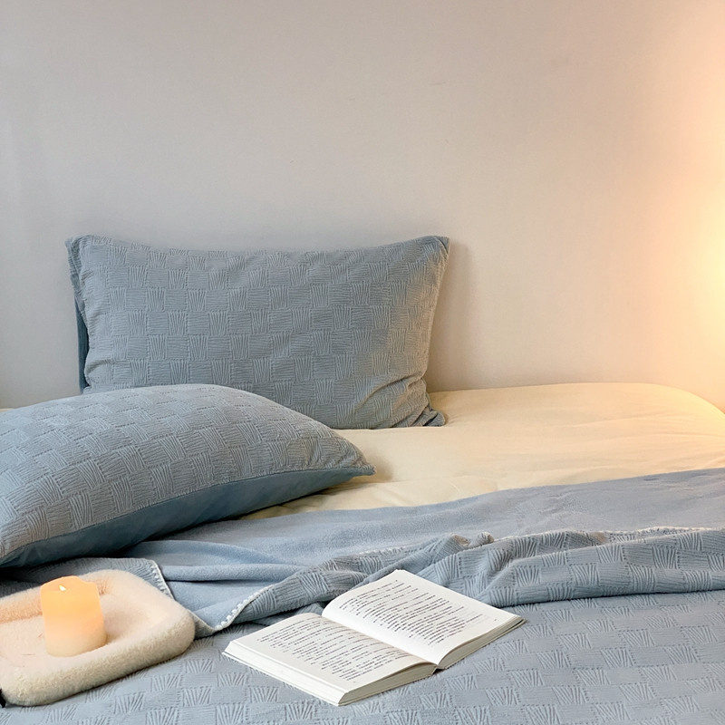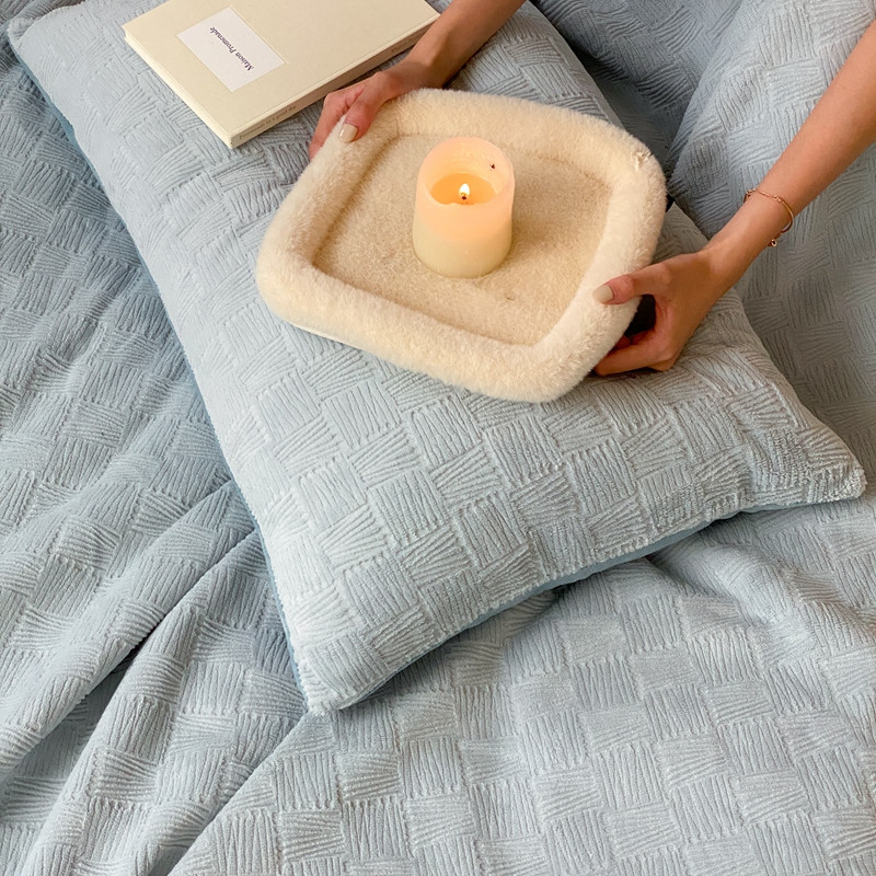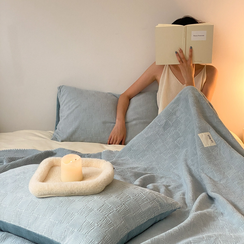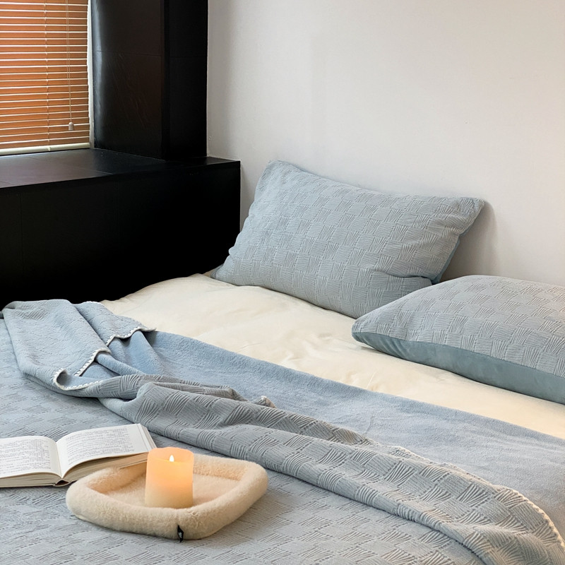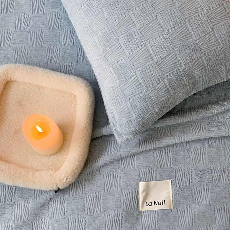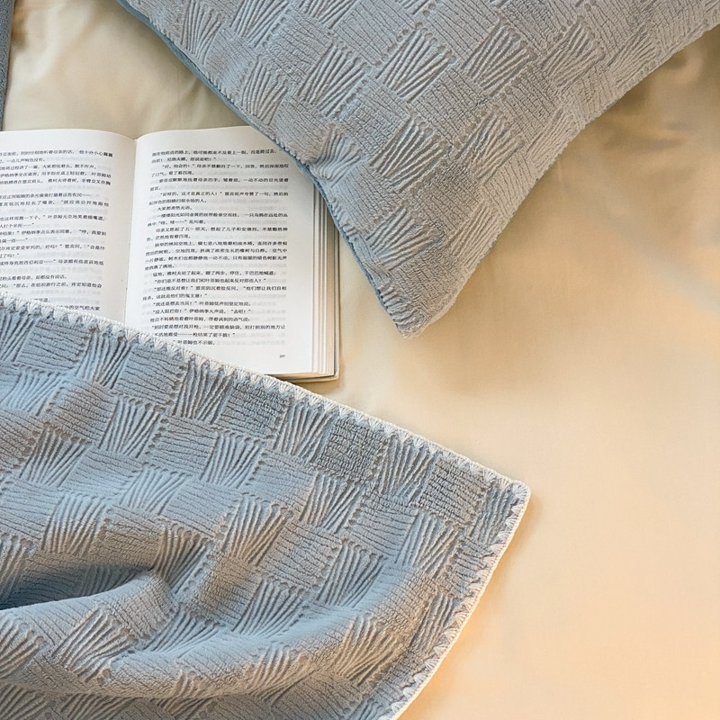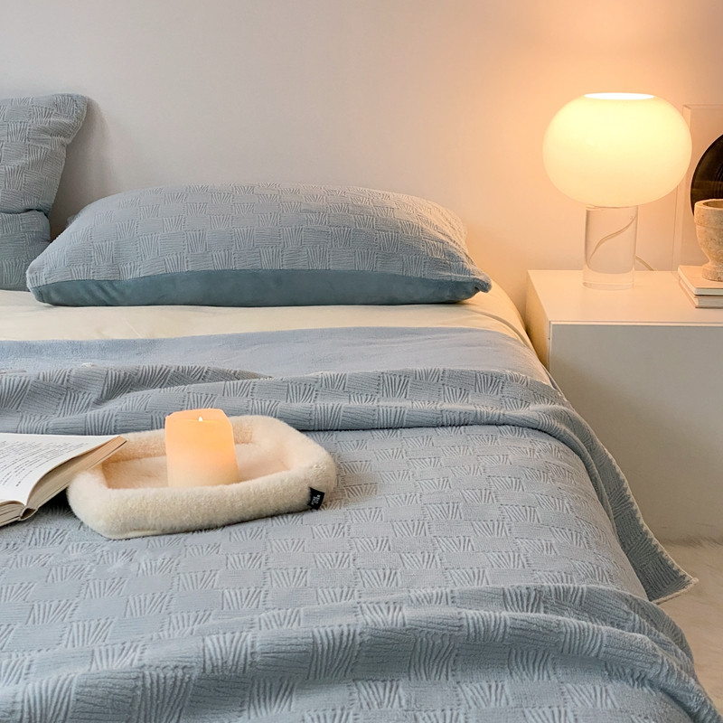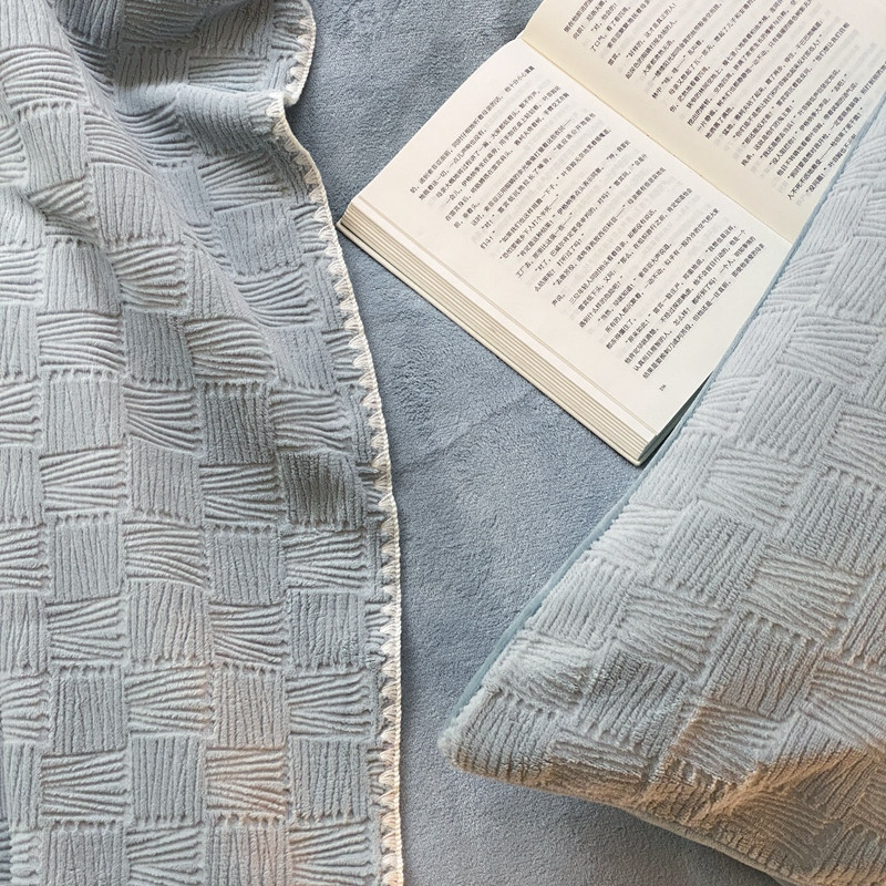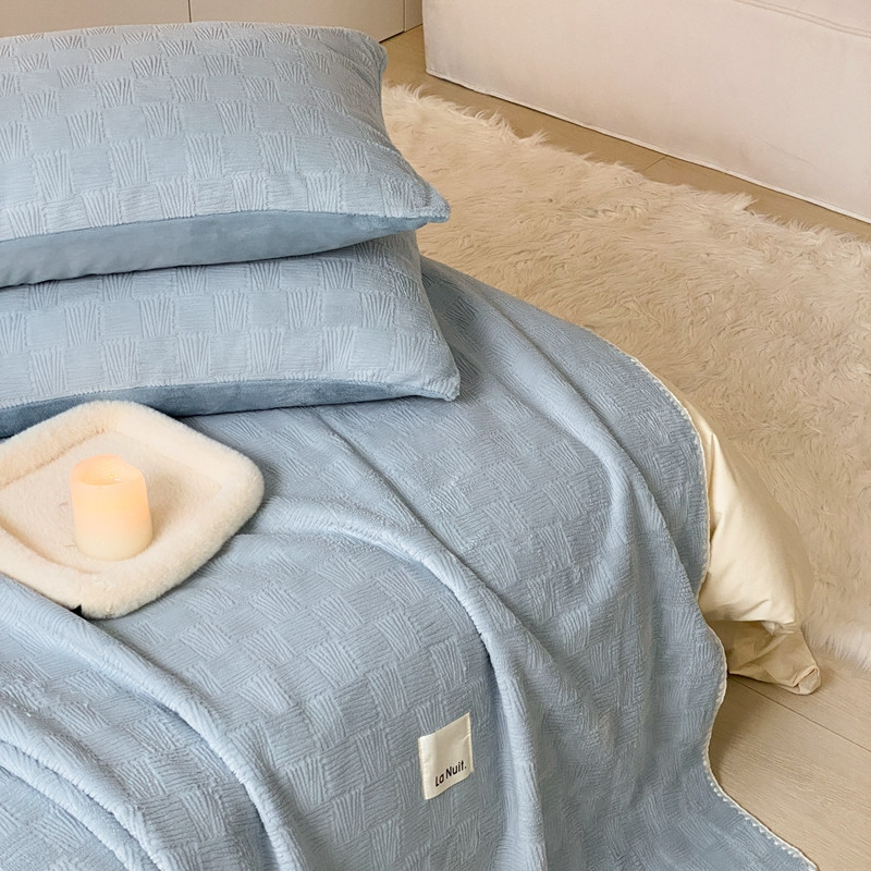 商品名称:桃喜 2022新款牛奶绒提花毛毯 静谧蓝