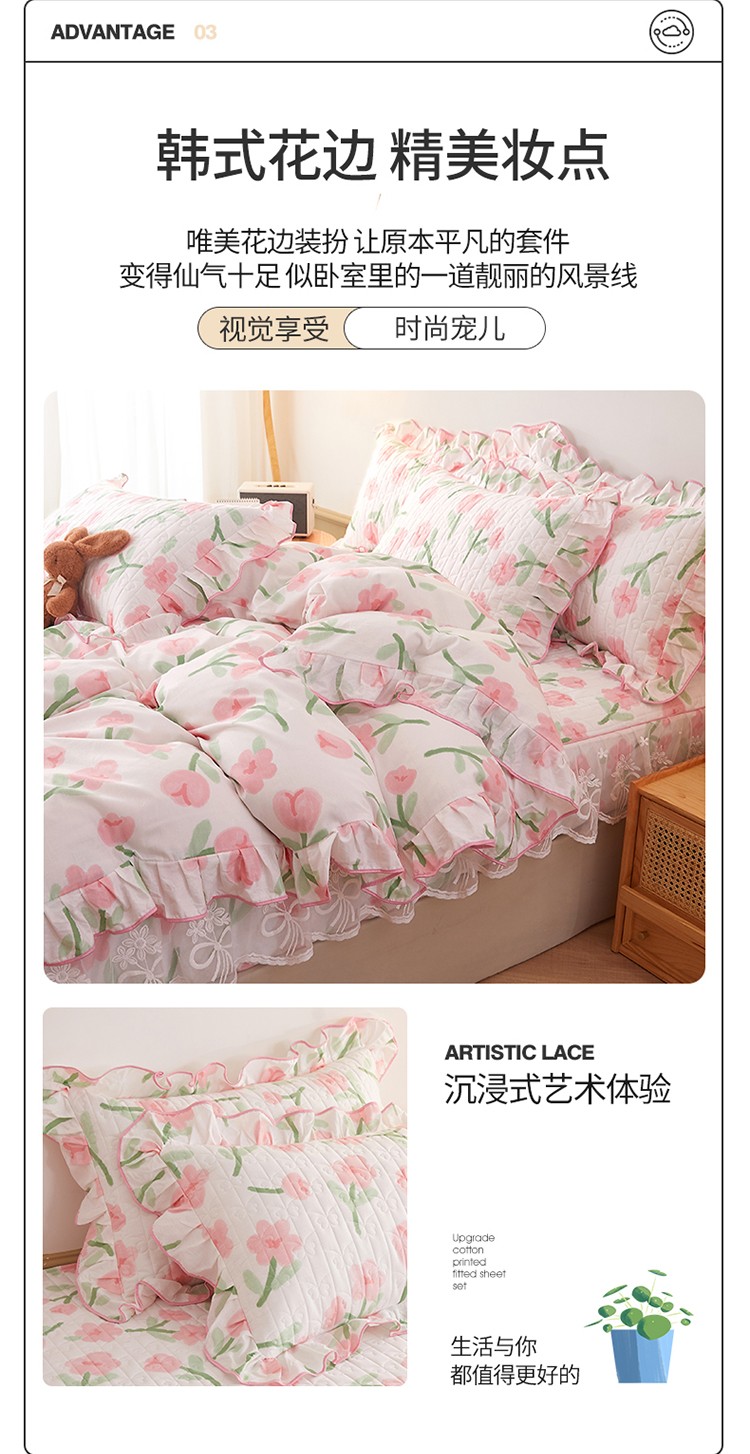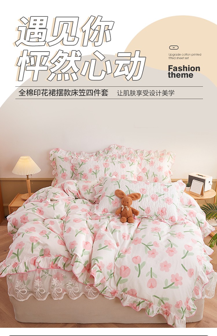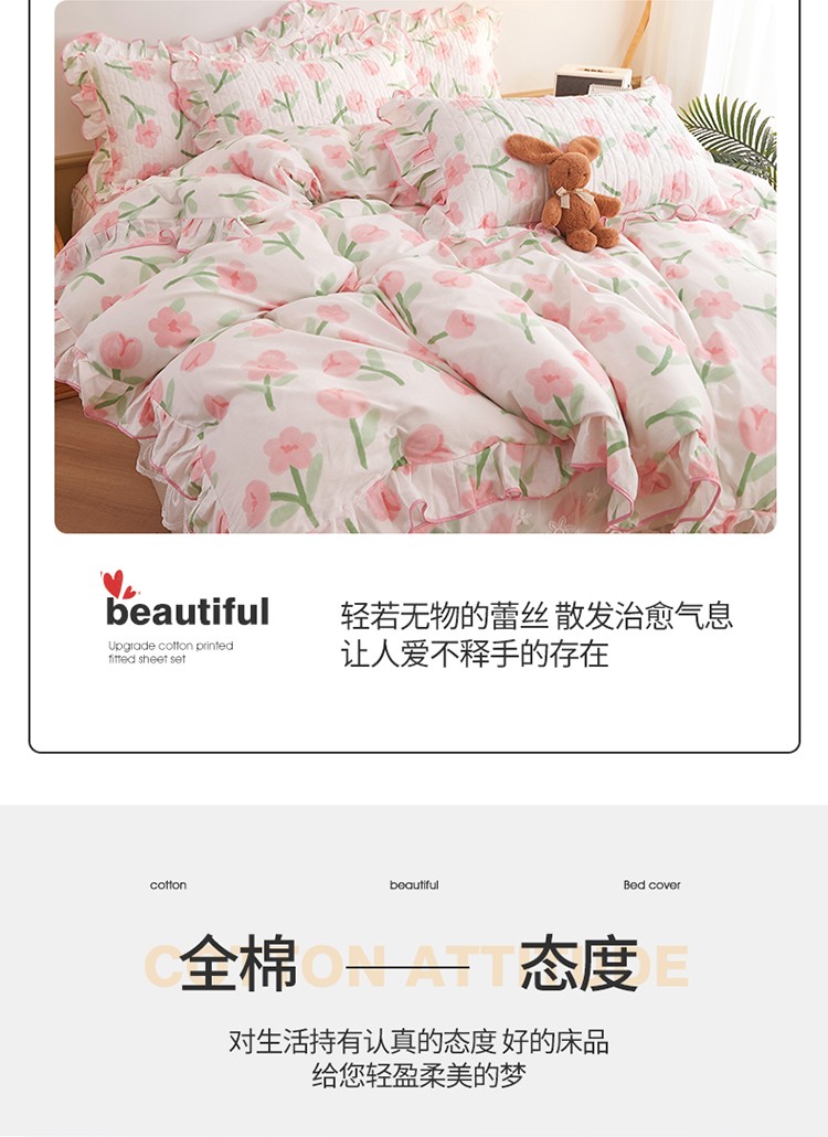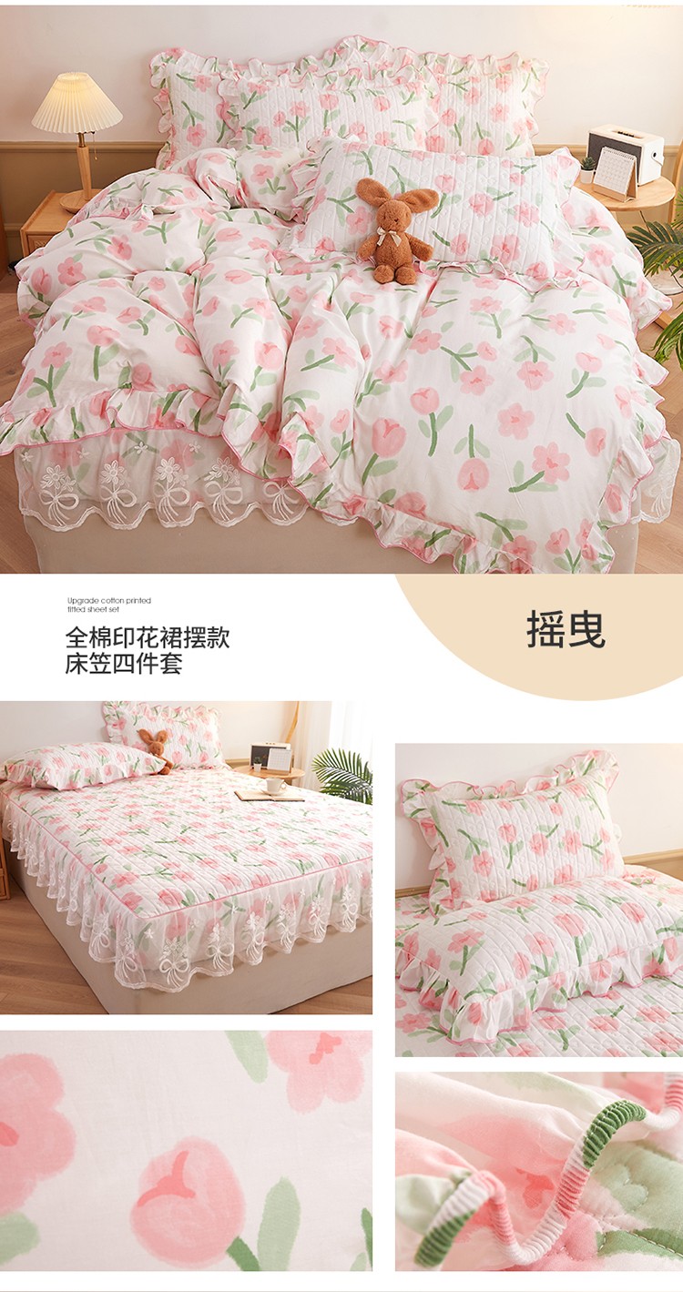 当前位置: 91家纺网 > 商品网购 > 床品套件 > 四件套 > 全棉普通四件套 > 宜凡 2023新款四季款夹棉小清新床笠四件套 摇曳