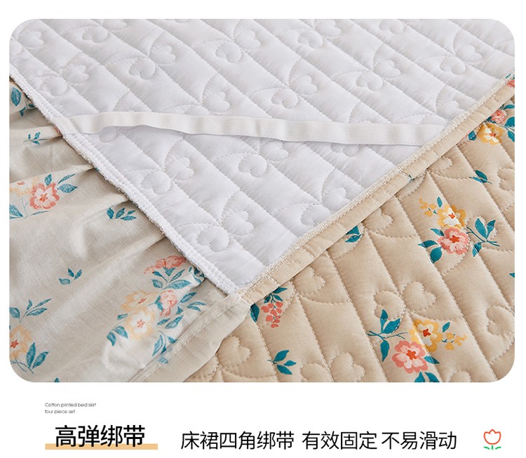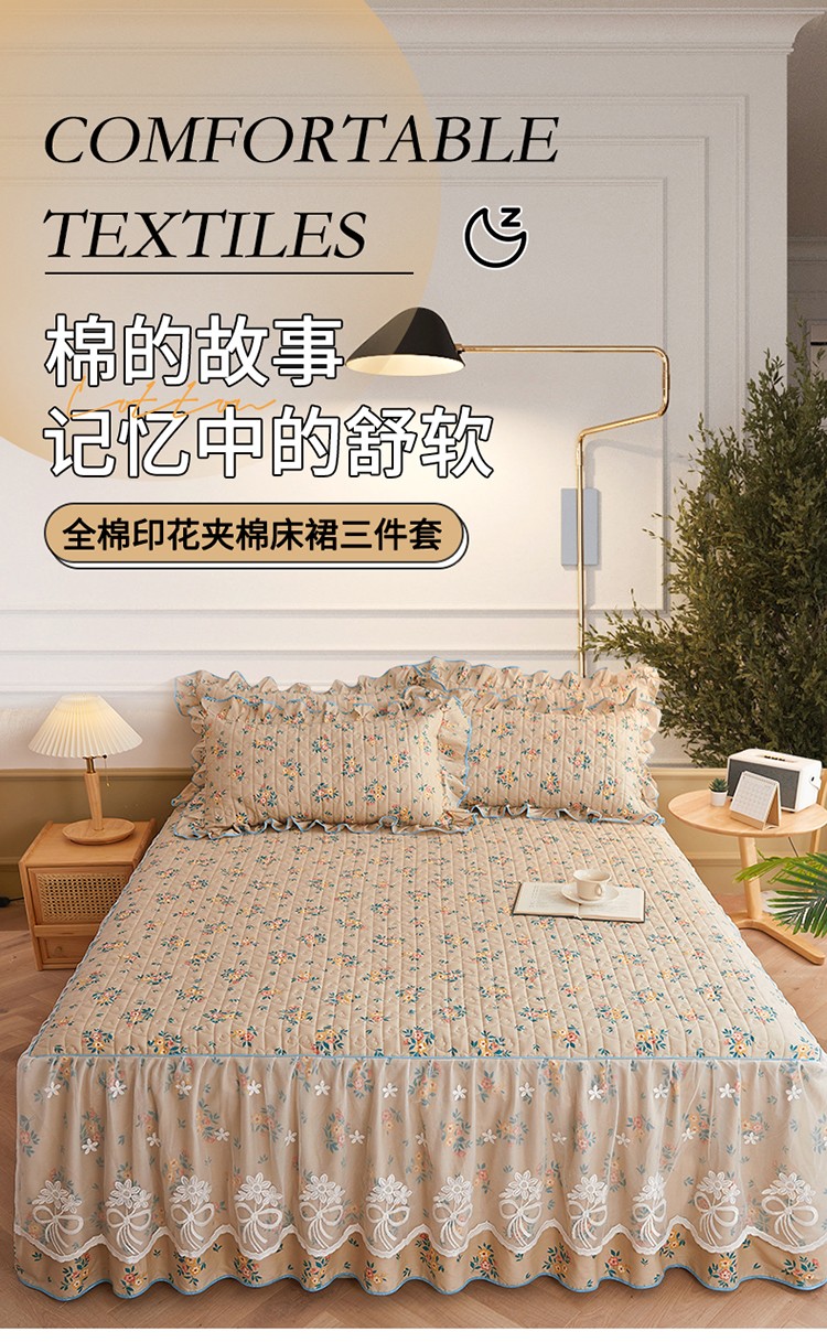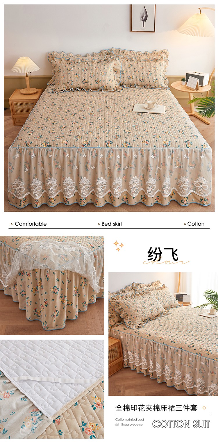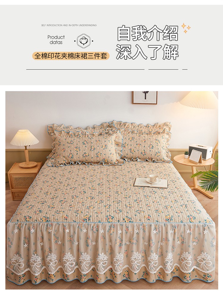 宜凡 2023新款四季款全棉夹棉床裙三件套 纷飞