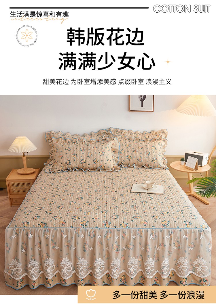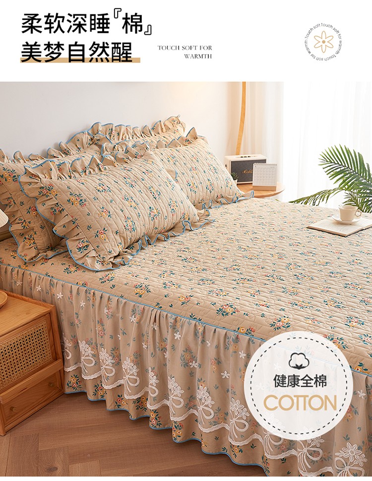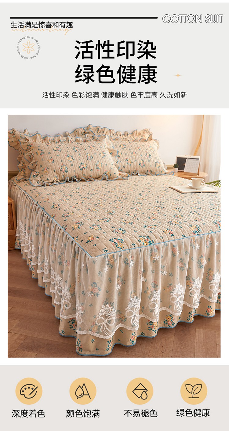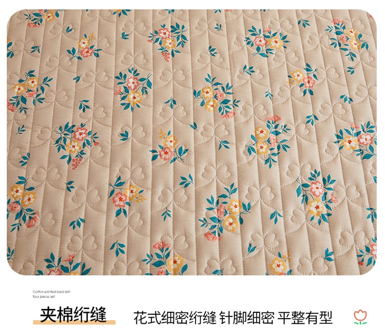 宜凡 2023新款四季款全棉夹棉床裙三件套 纷飞