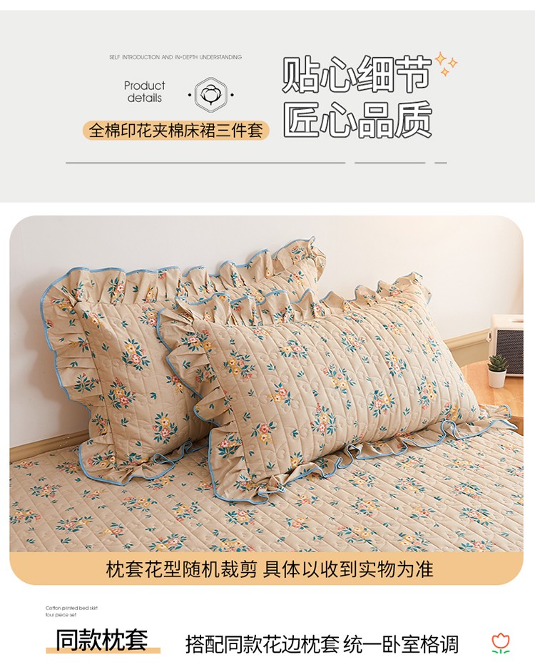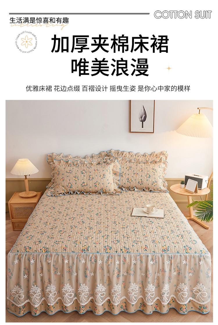 商品名称:宜凡 2023新款四季款全棉夹棉床裙三件套 纷飞