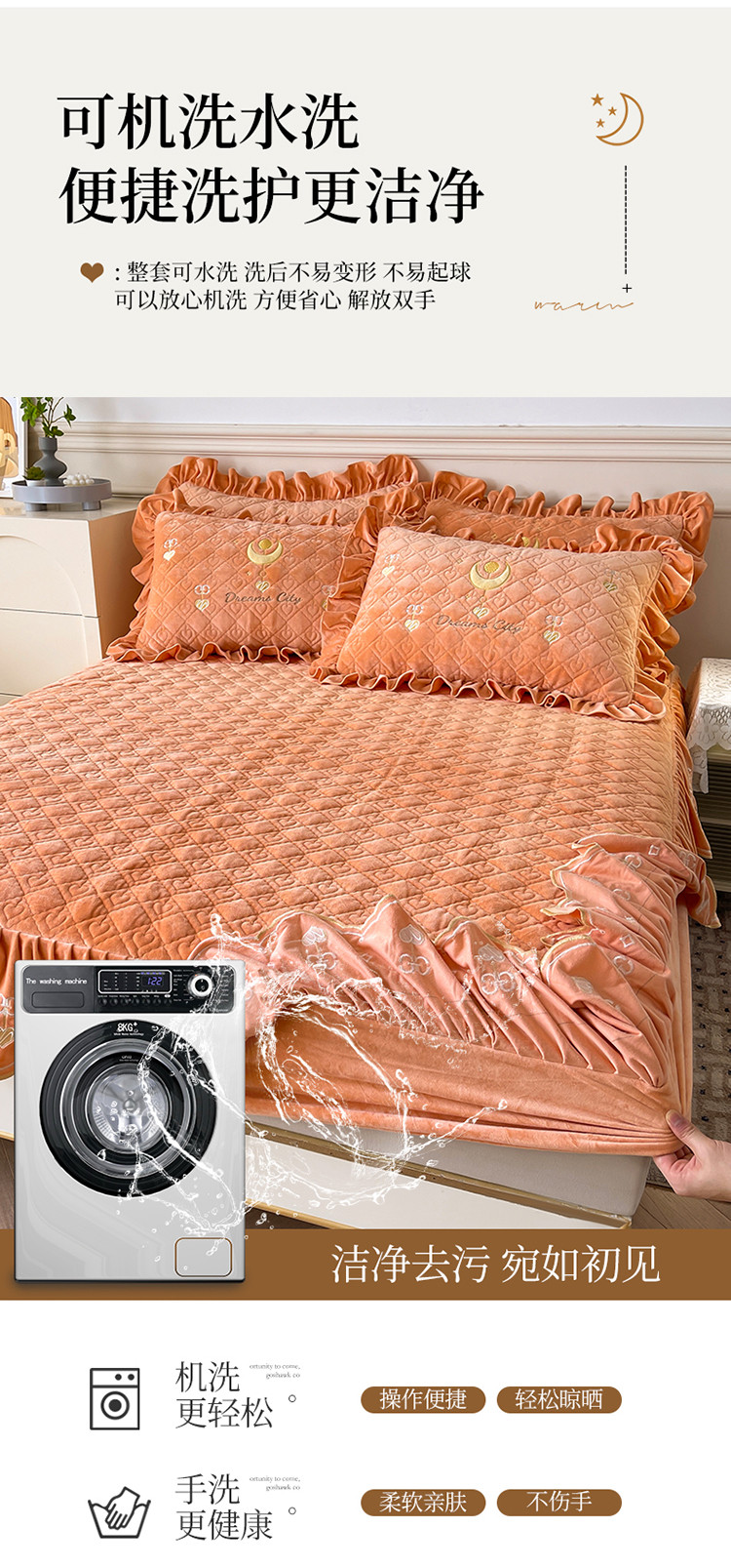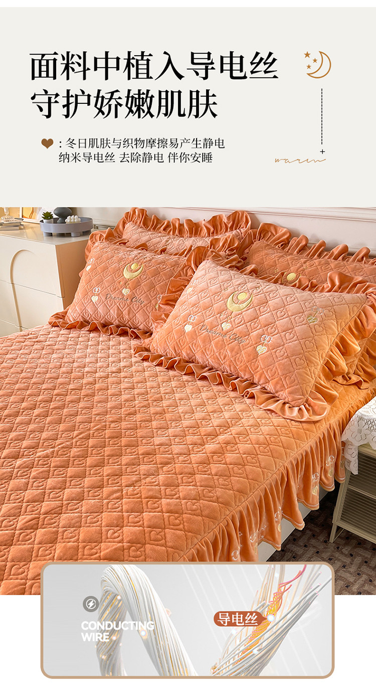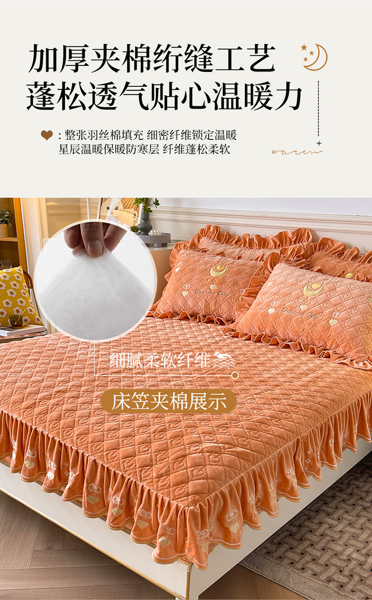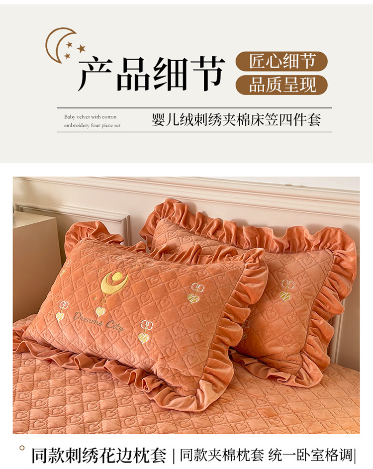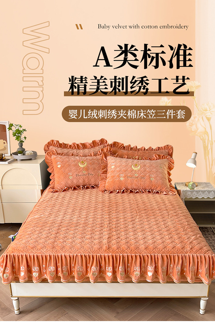 宜凡家纺 2022新款婴儿绒A类床笠三件套 星悅-杏黄