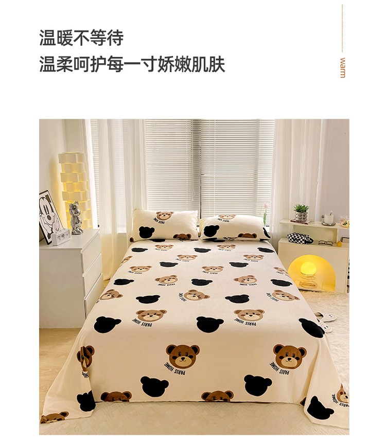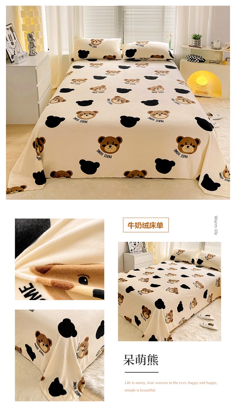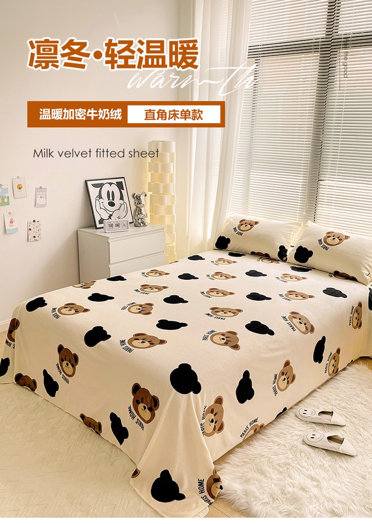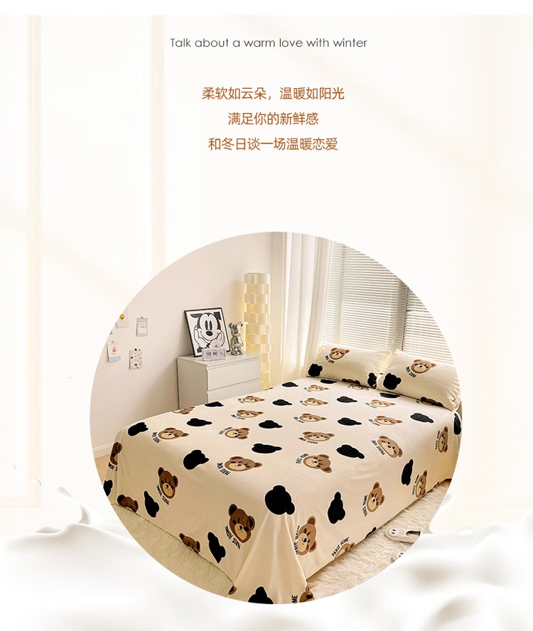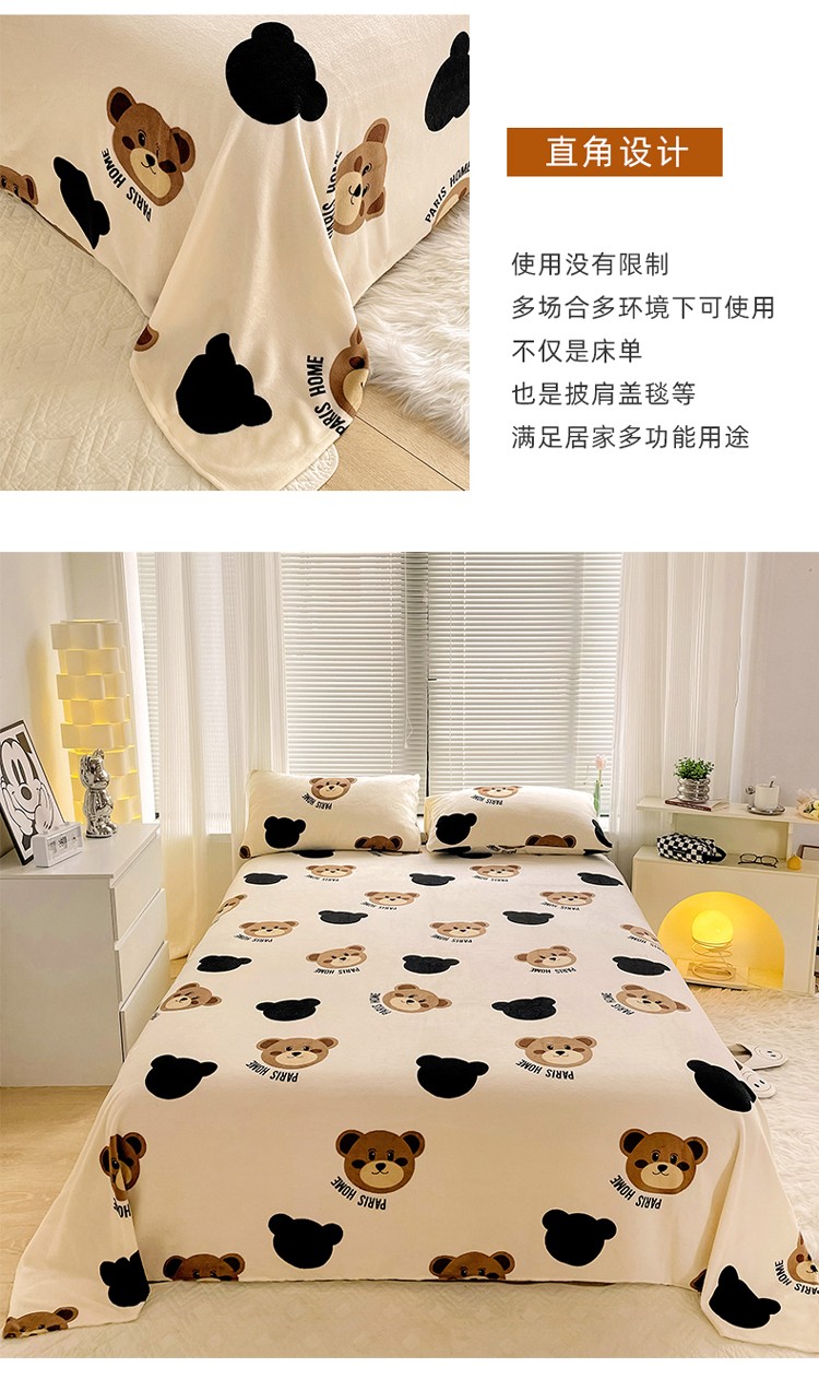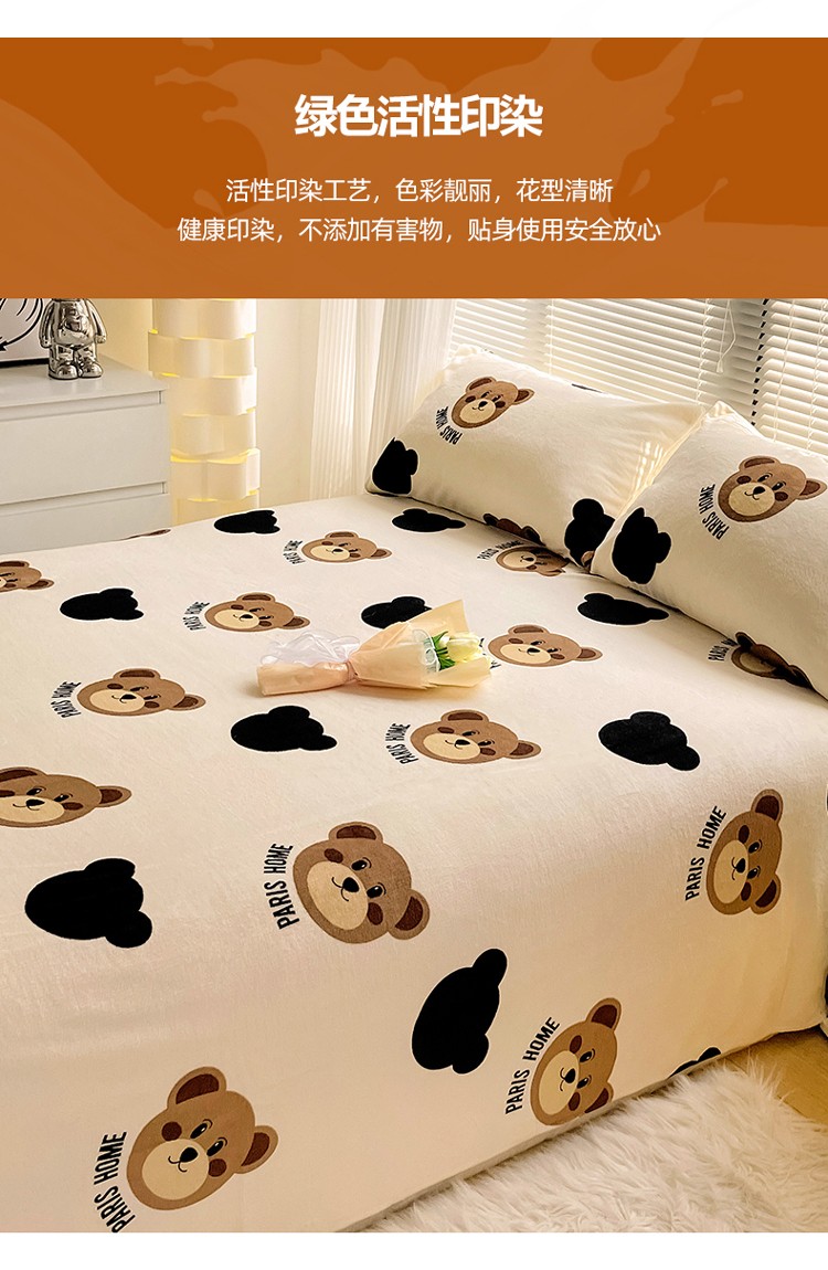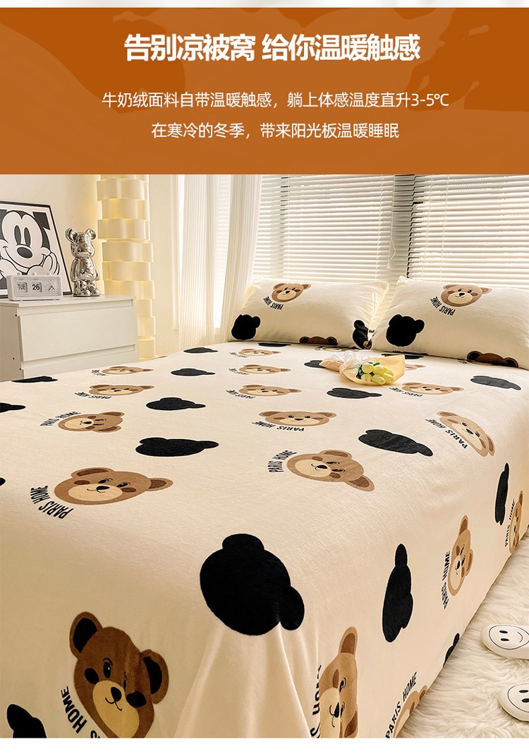 捌月 2024冬季新款印花牛奶绒-床单 呆萌熊