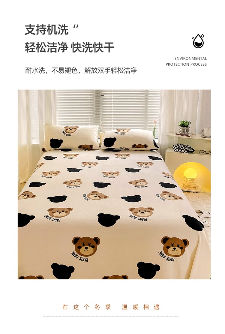 商品名称:捌月 2024冬季新款印花牛奶绒-床单 呆萌熊