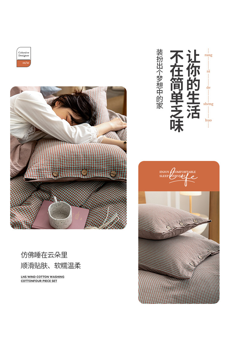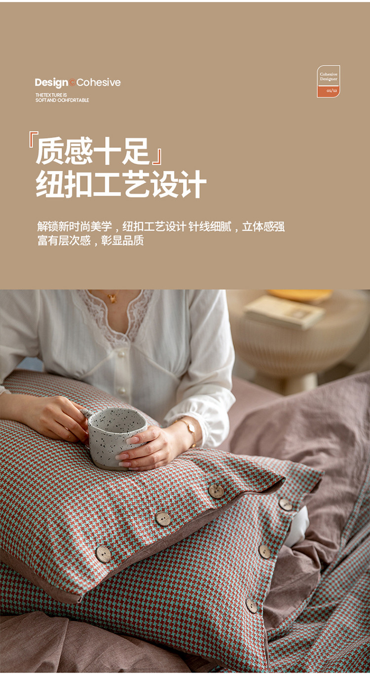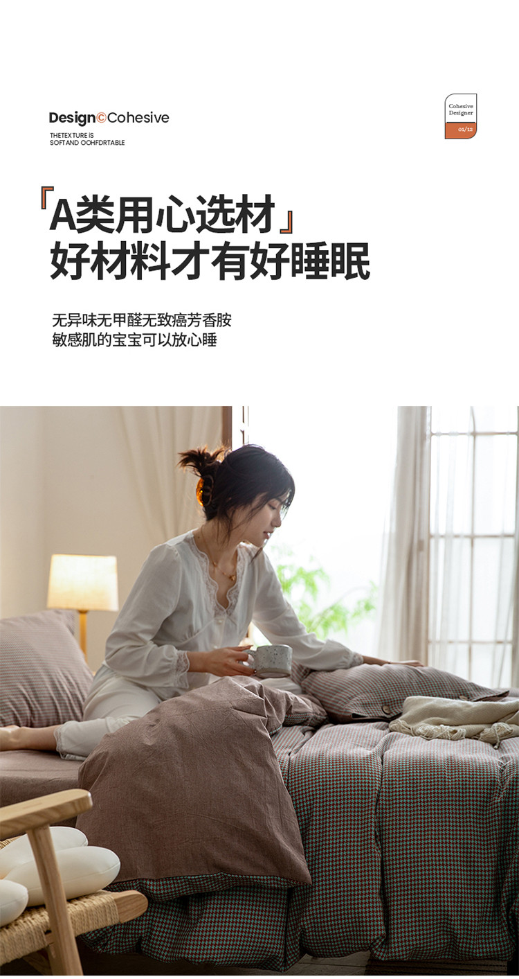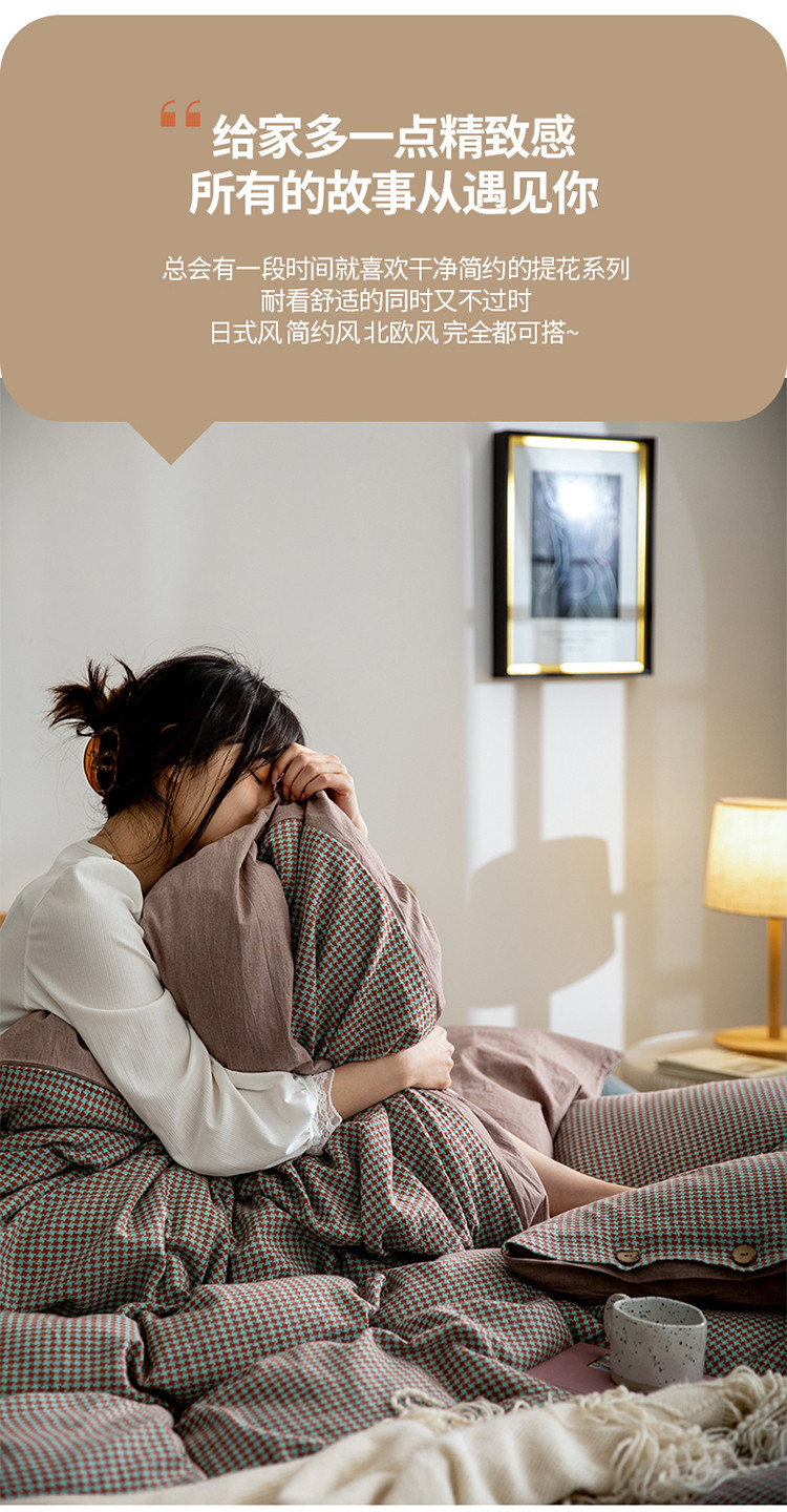 商品名称:寐眠 2022新款A类全棉水洗棉提花四件套 千鸟格咖