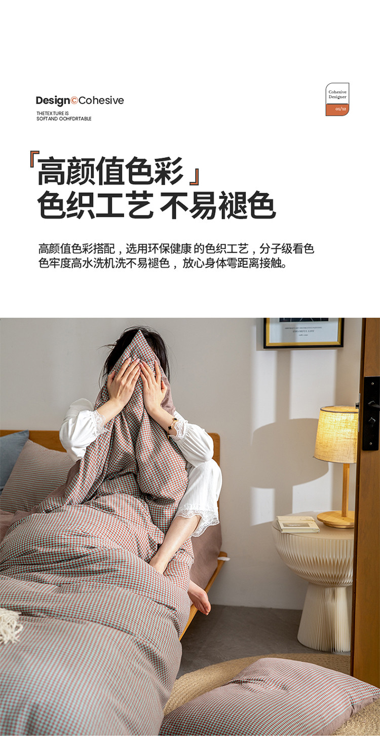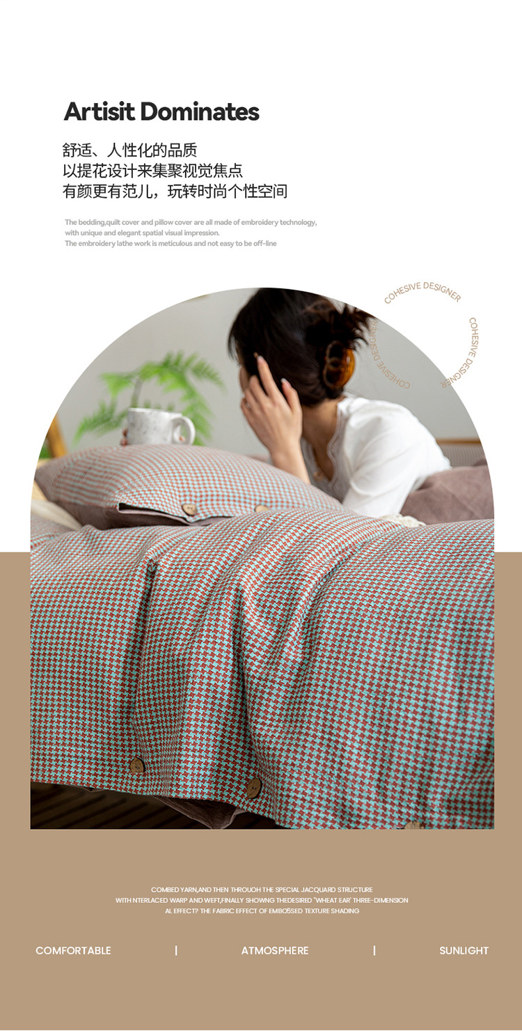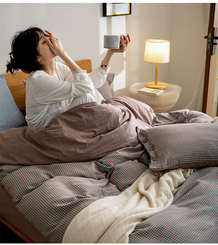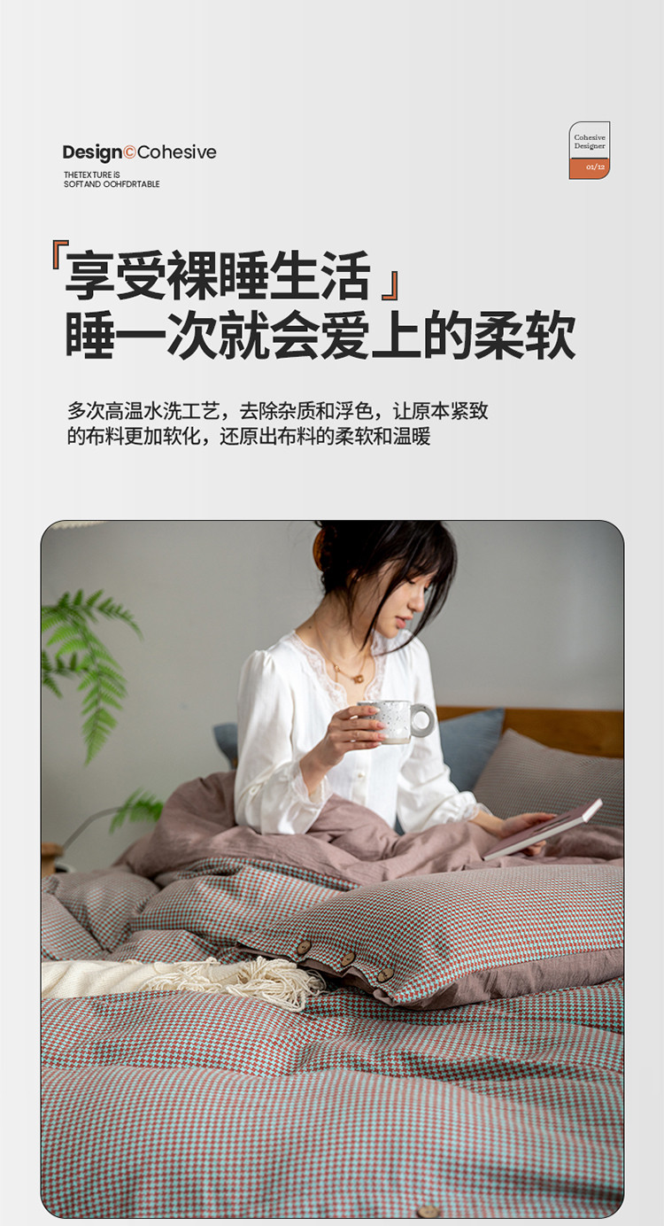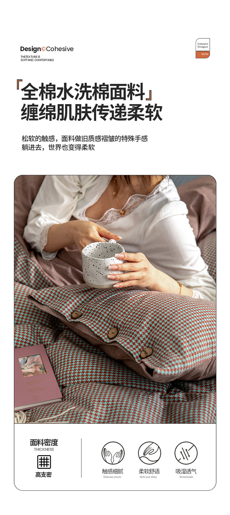商品名称:寐眠 2022新款A类全棉水洗棉提花四件套 千鸟格咖