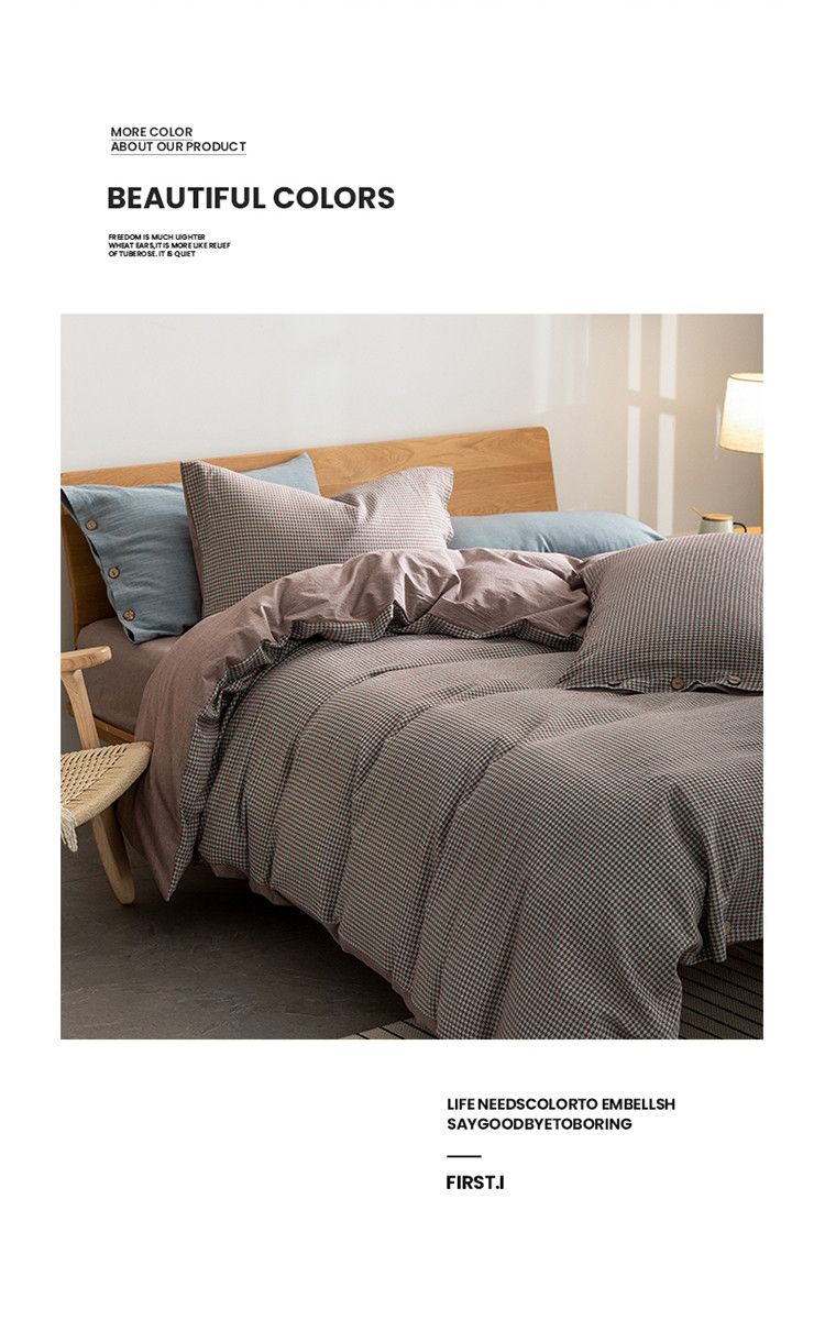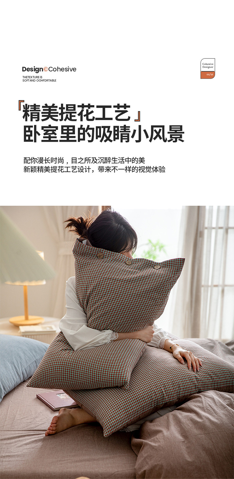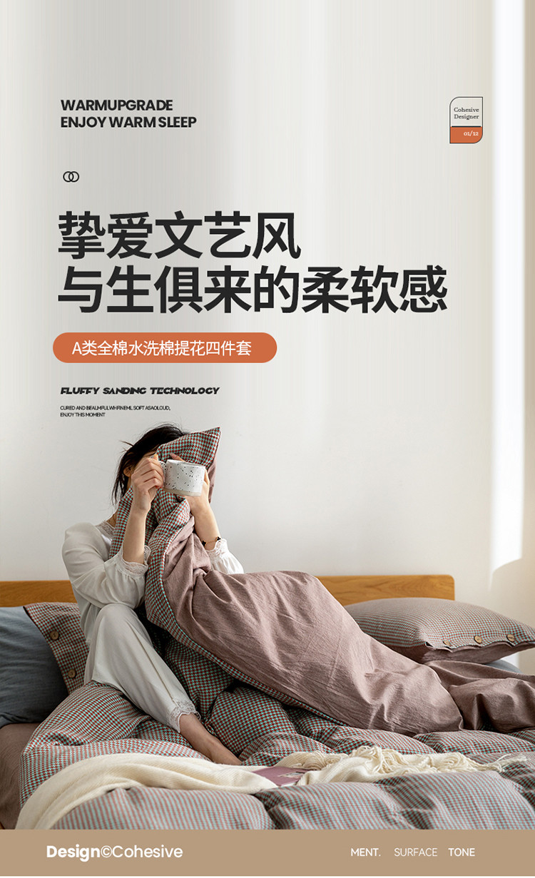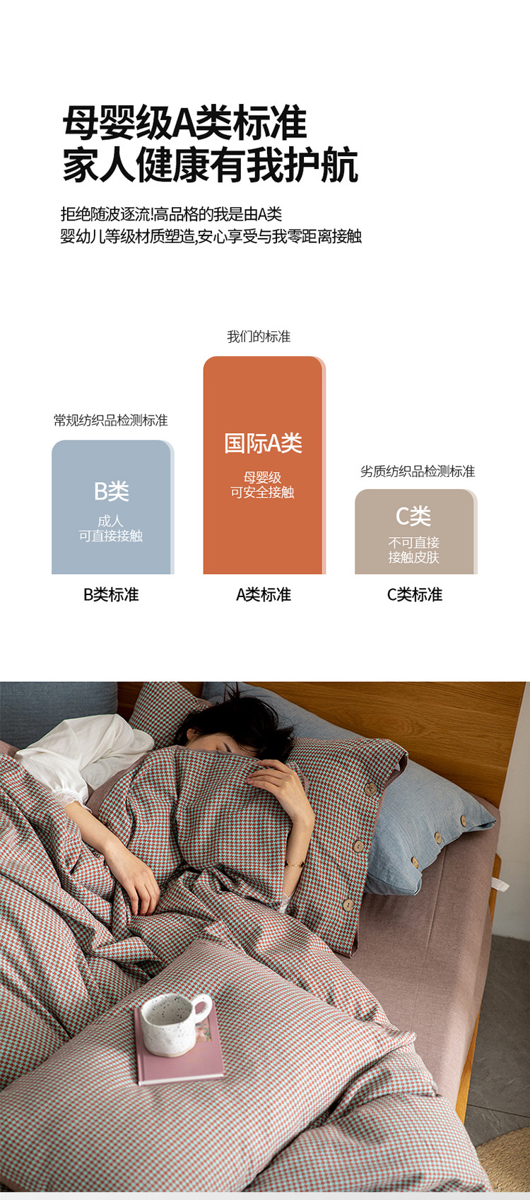 商品名称:寐眠 2022新款A类全棉水洗棉提花四件套 千鸟格咖