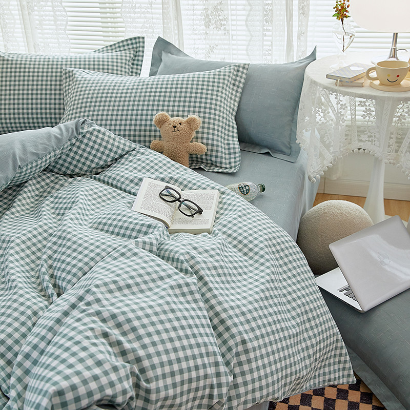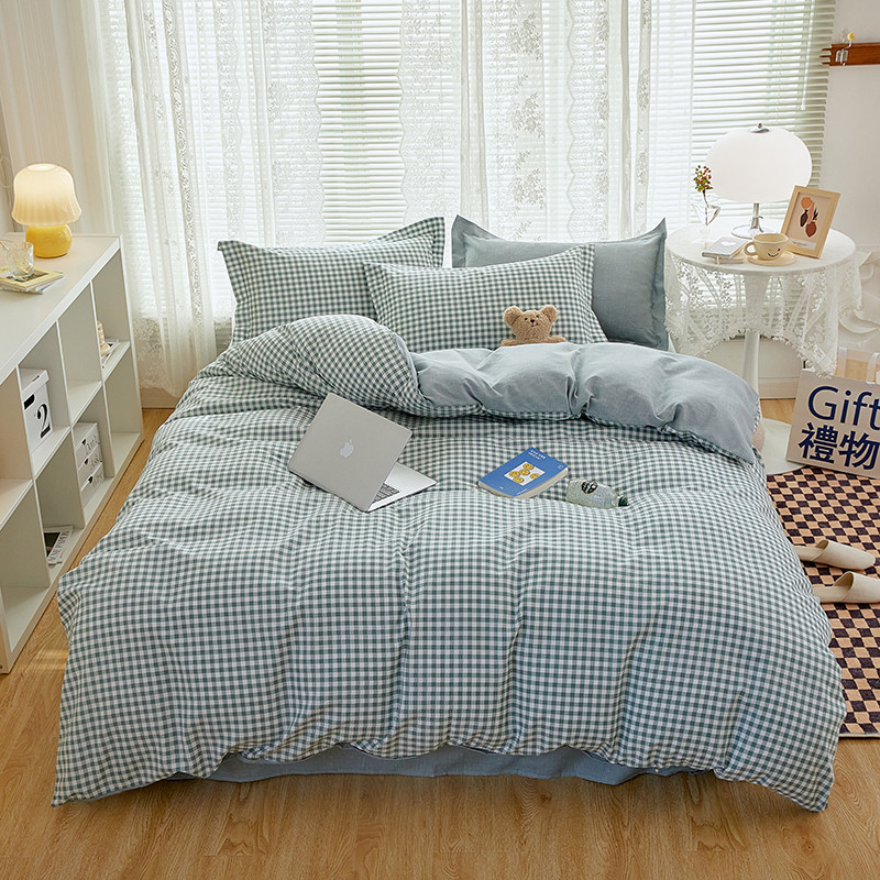 (总)世爵 2026新款10A抗菌亲肤水洗棉双拼四件套,卡其蓝,绿浅灰,墨松灰,暖驼,浅灰,深灰,深灰绿,深蓝灰,天空蓝浅灰,远山绿,远天蓝