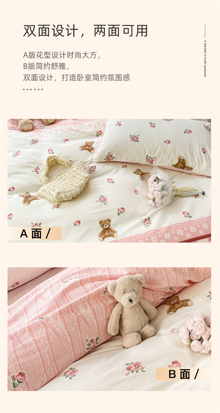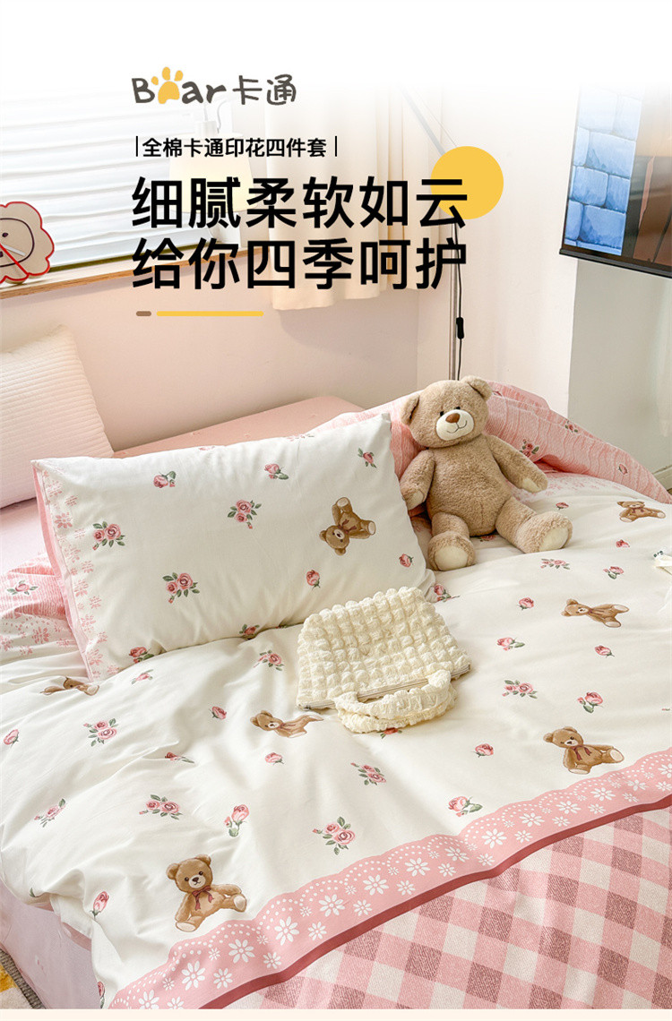 商品名称:优彩 2023新款13372全棉小清新卡通系列四件套 格子熊