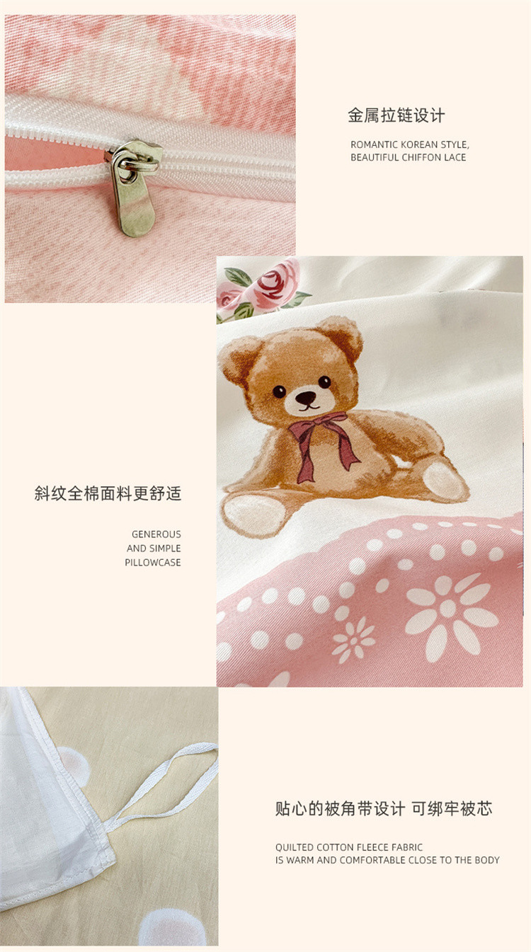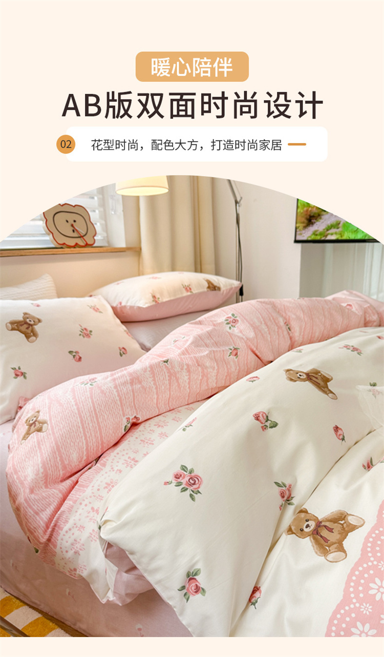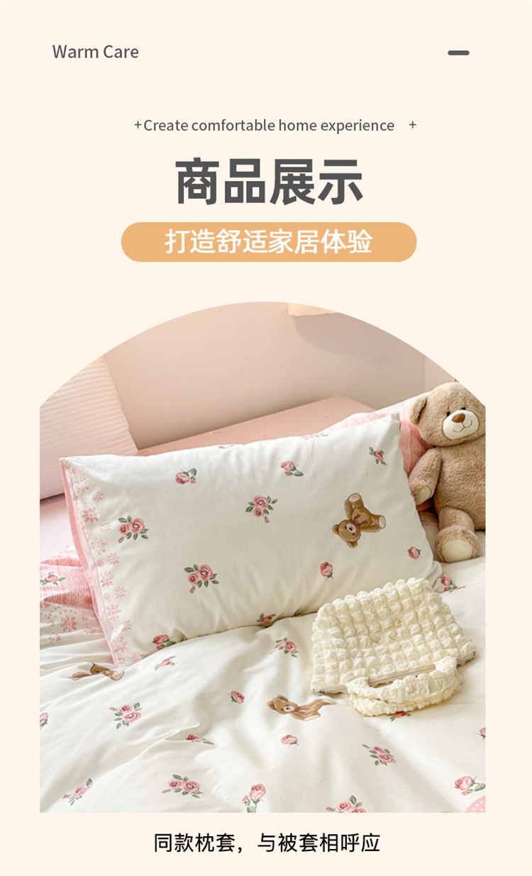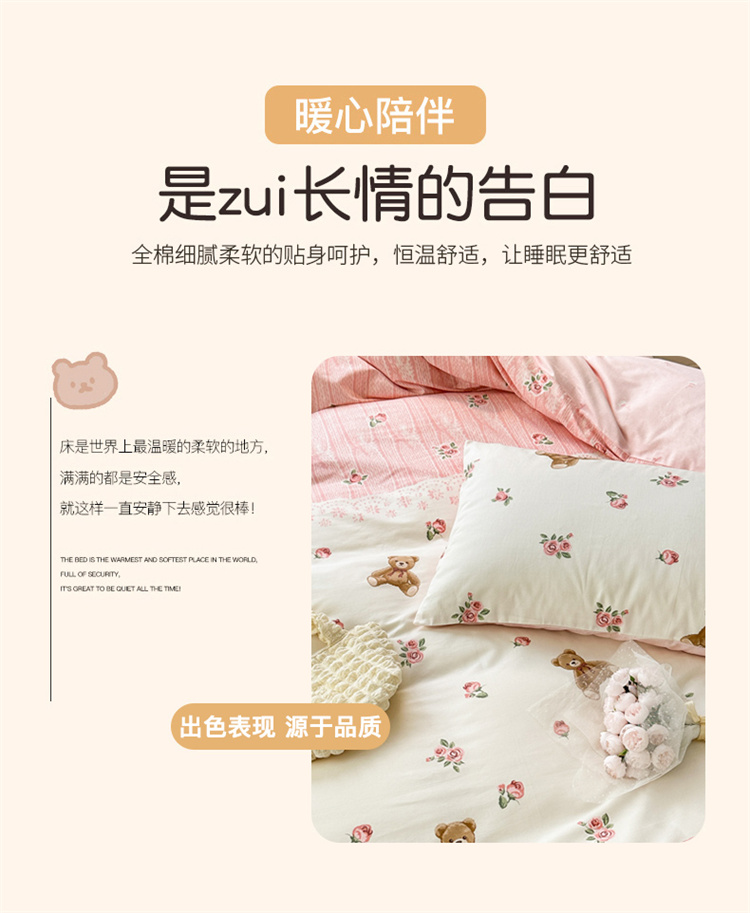 (总)优彩 2025新款数码印花贴布绣全棉四件套,春田小熊,温暖小窝,游乐园