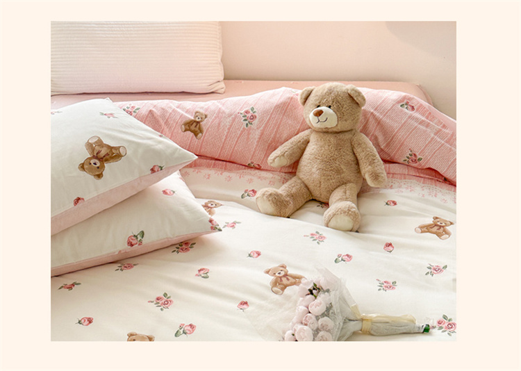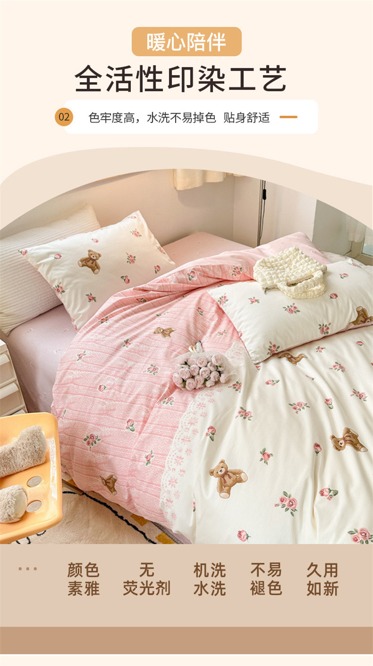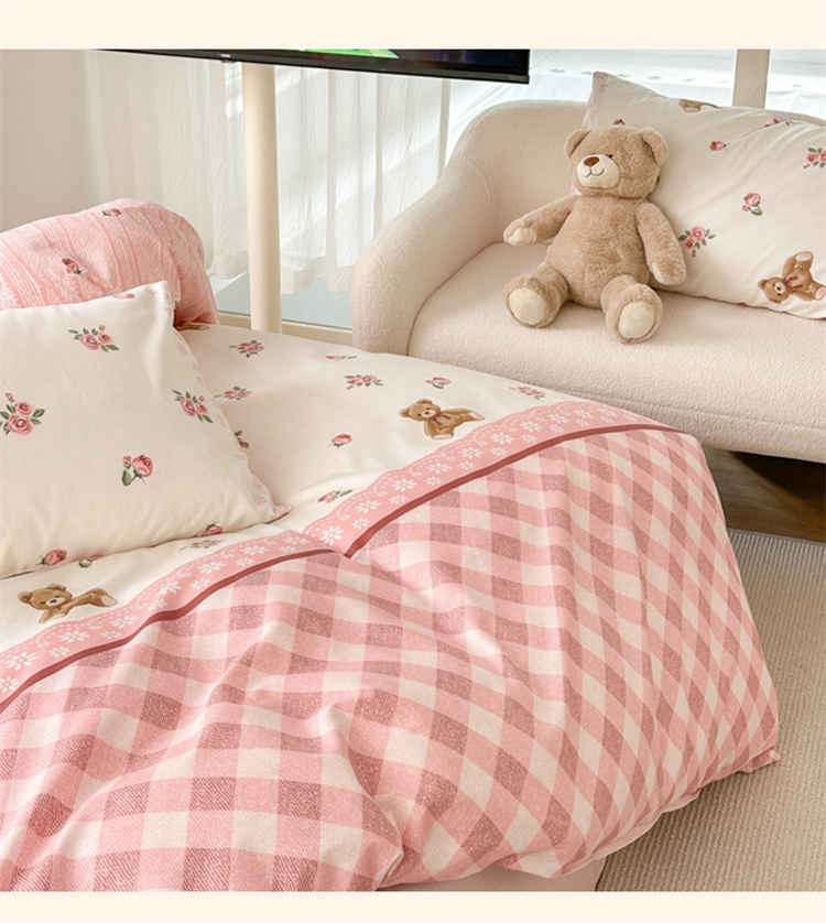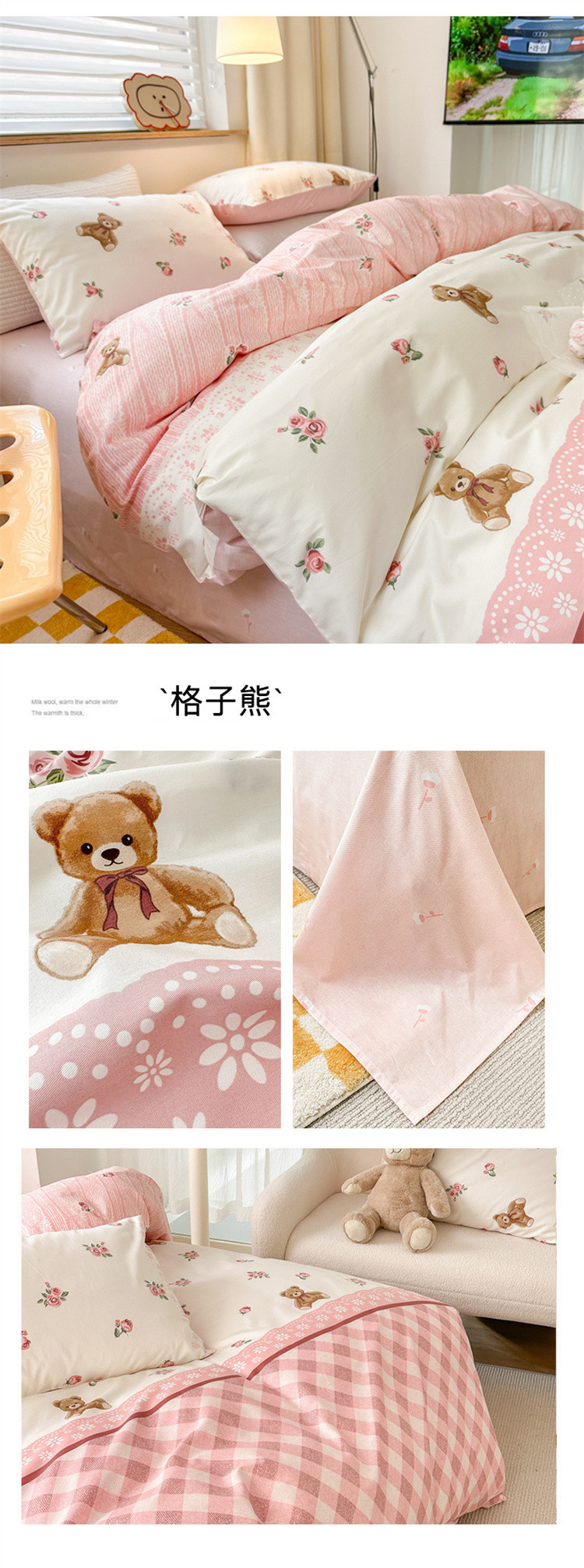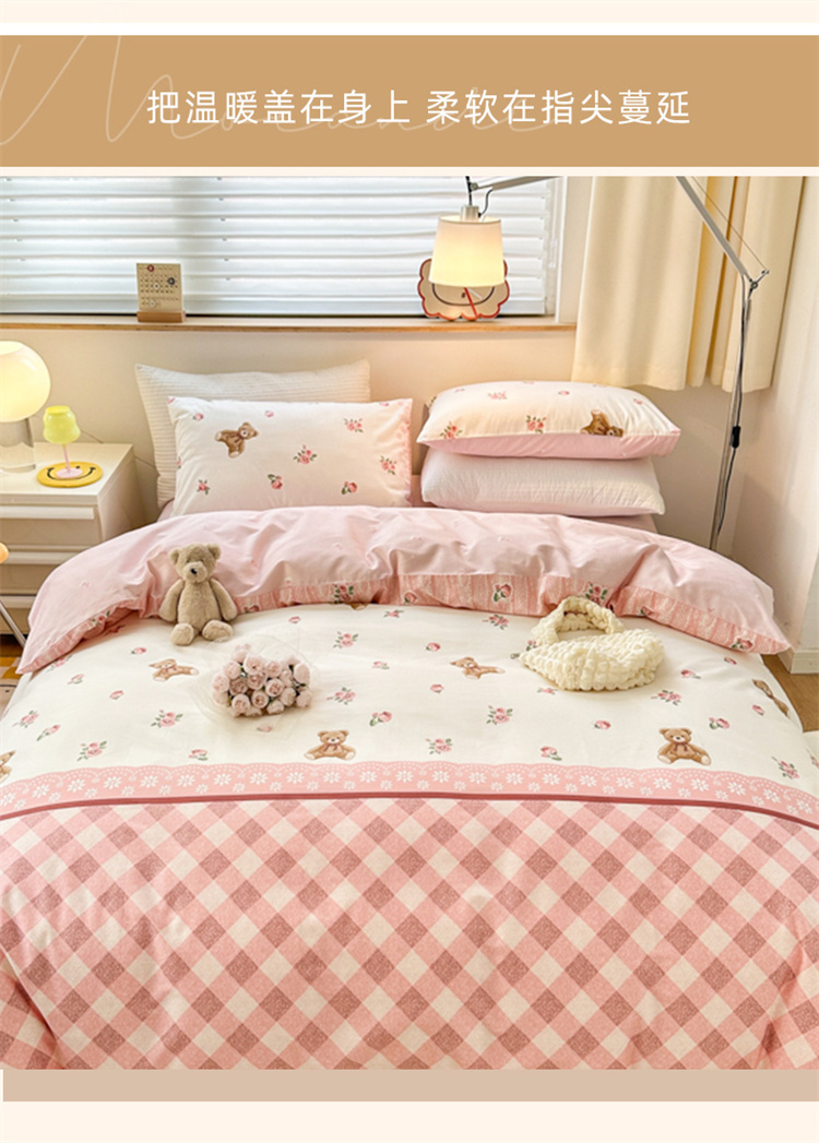 优彩 2023新款13372全棉小清新卡通系列四件套 格子熊