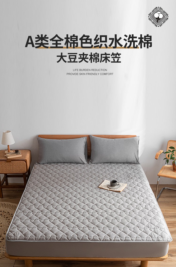 商品名称:蓝巢 2023新款全棉水洗棉大豆夹棉床笠 浅灰