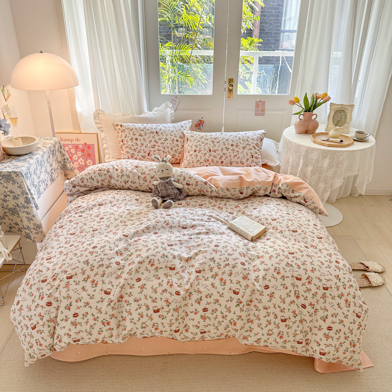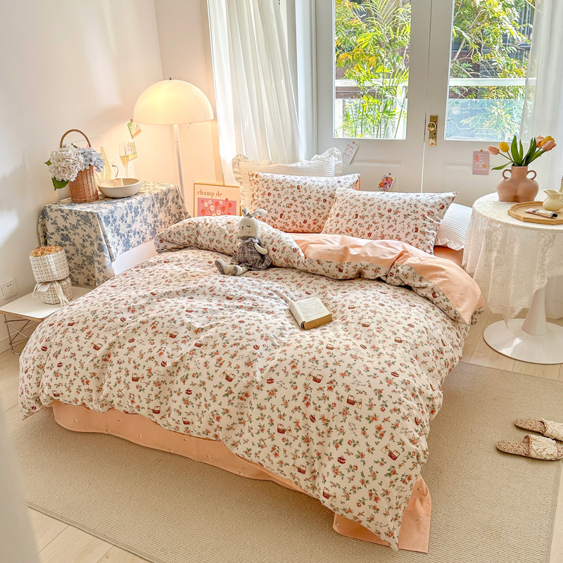 (总)优彩 2025新款全棉双层纱四件套,采花兔,彩蘑菇,初暖,粉小花,花栖,恋花小径,萝蔓,落山秋,南瓜派,清然,瑞莎,小熊派,紫葡萄,花栖-咖
