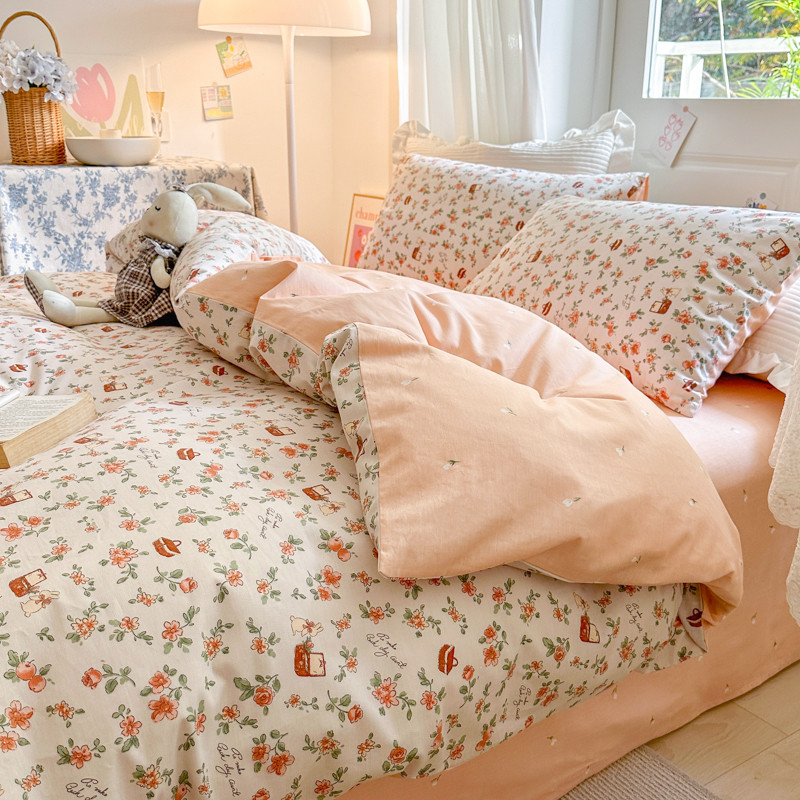 (总)优彩 2025新款全棉40支水洗棉水果刺绣系列四件套,蜜桃,葡萄