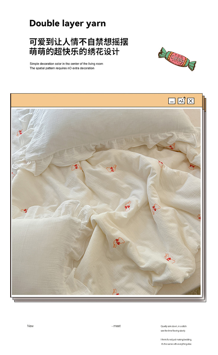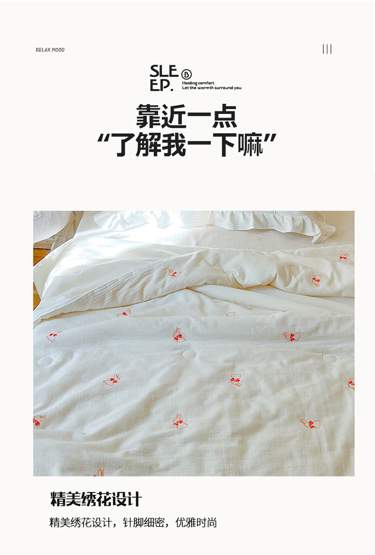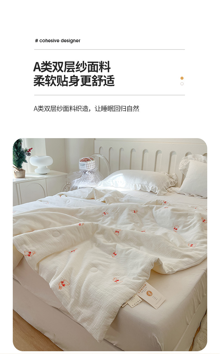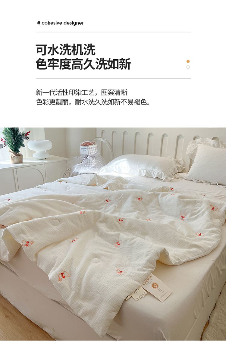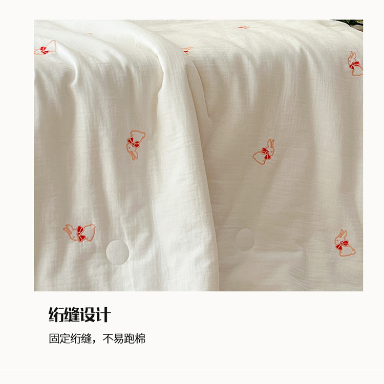 商品名称:木楌 2024新款双层皱皱纱刺绣款夏被 领结兔